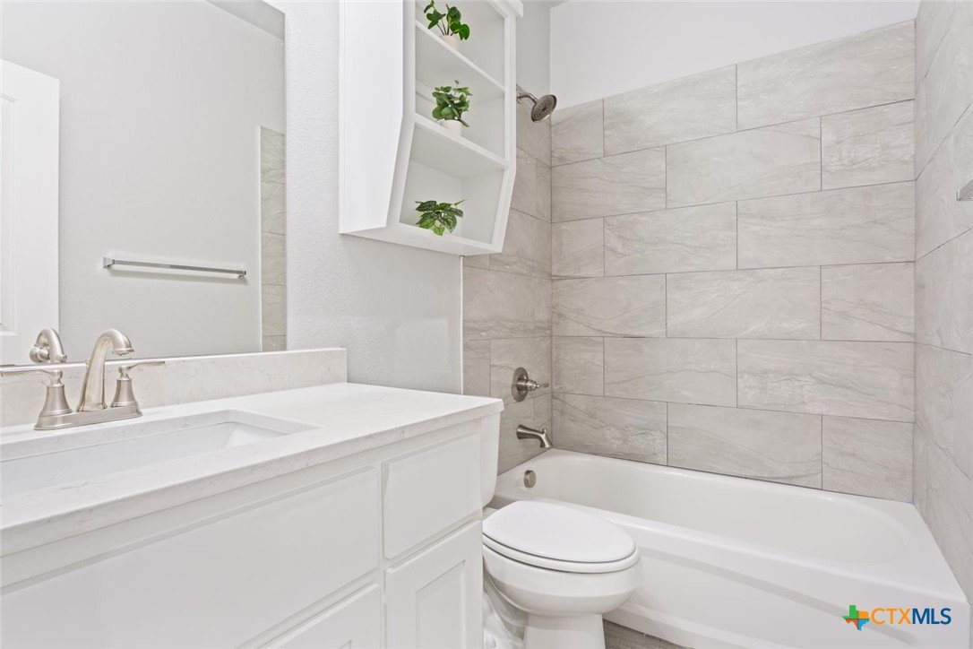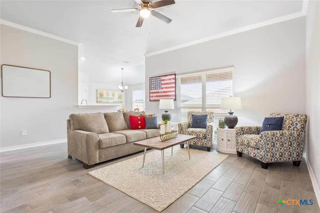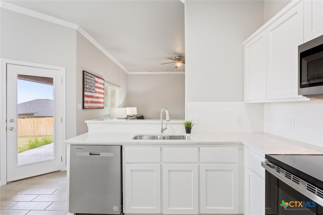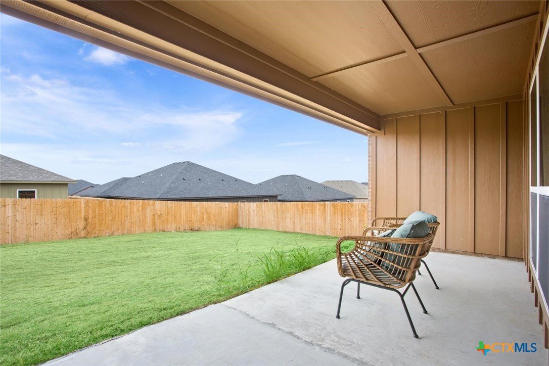 Builder will pay towards buyers closing costs. This traditional All American Beauty has all the upgrades included. Front and back sod, front and back sprinklers, privacy fence, garage openers and blinds. Ceramic tile floors throughout with ceiling fans in all the bedrooms. The kitchen has stainless steel appliances, granite counters, tile back splash and under mount sink plus a pantry. The open concept living provides views onto the back yard and the covered patio. The primary has 2 walk in closets and ceramic tile tub/shower. Nice tall ceilings. There is a laundry room off the garage. This neighborhood is centrally located to hospitals, Lake Belton, shopping and the Temple Industrial Area. Builder will pay compensation towards buyers closing costs.