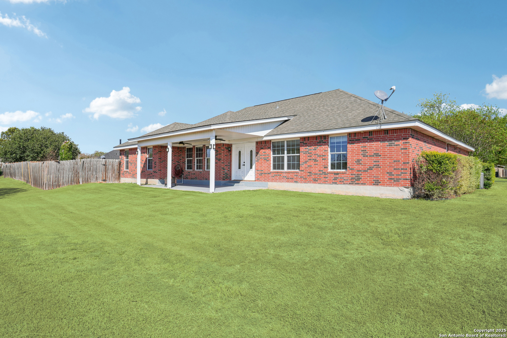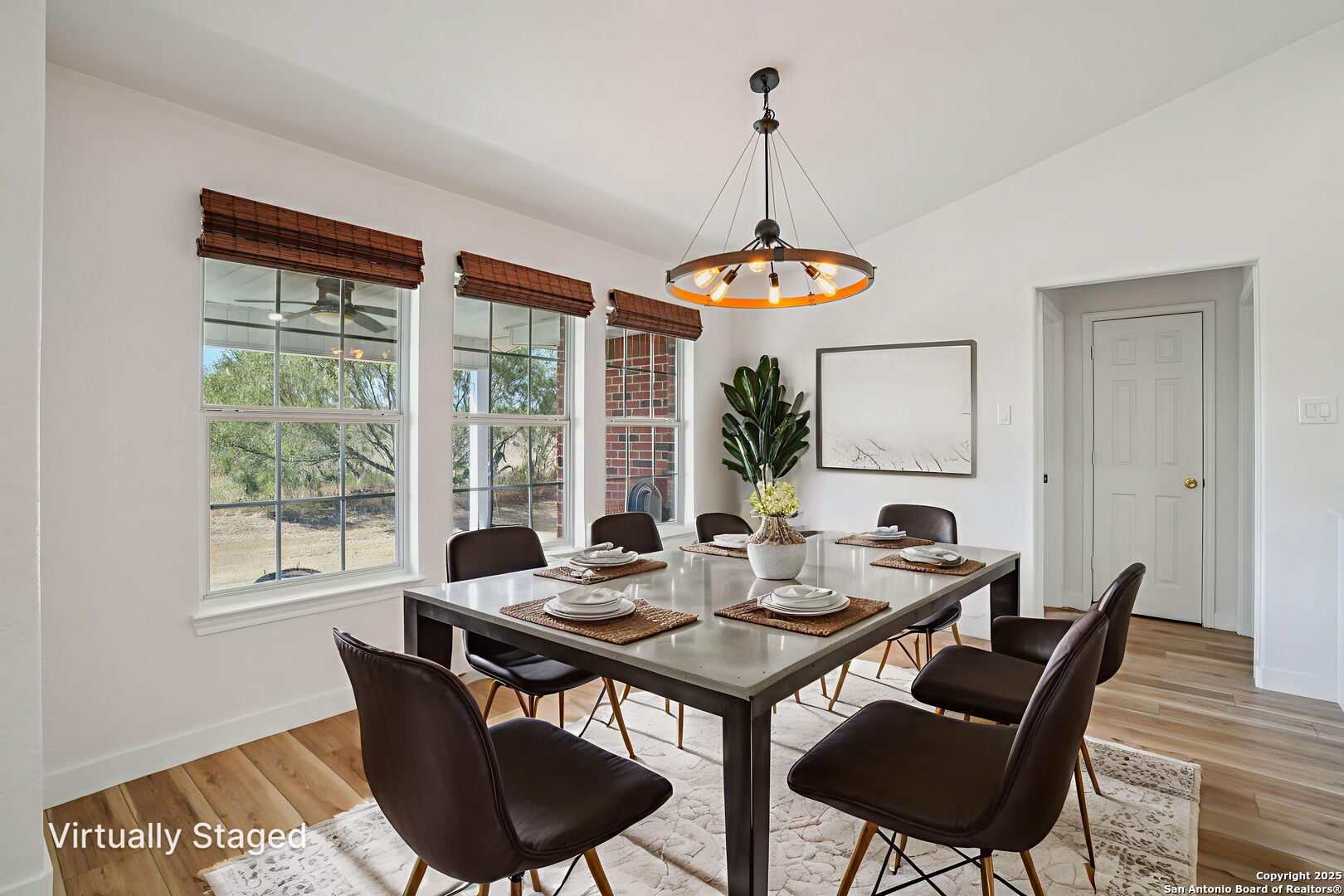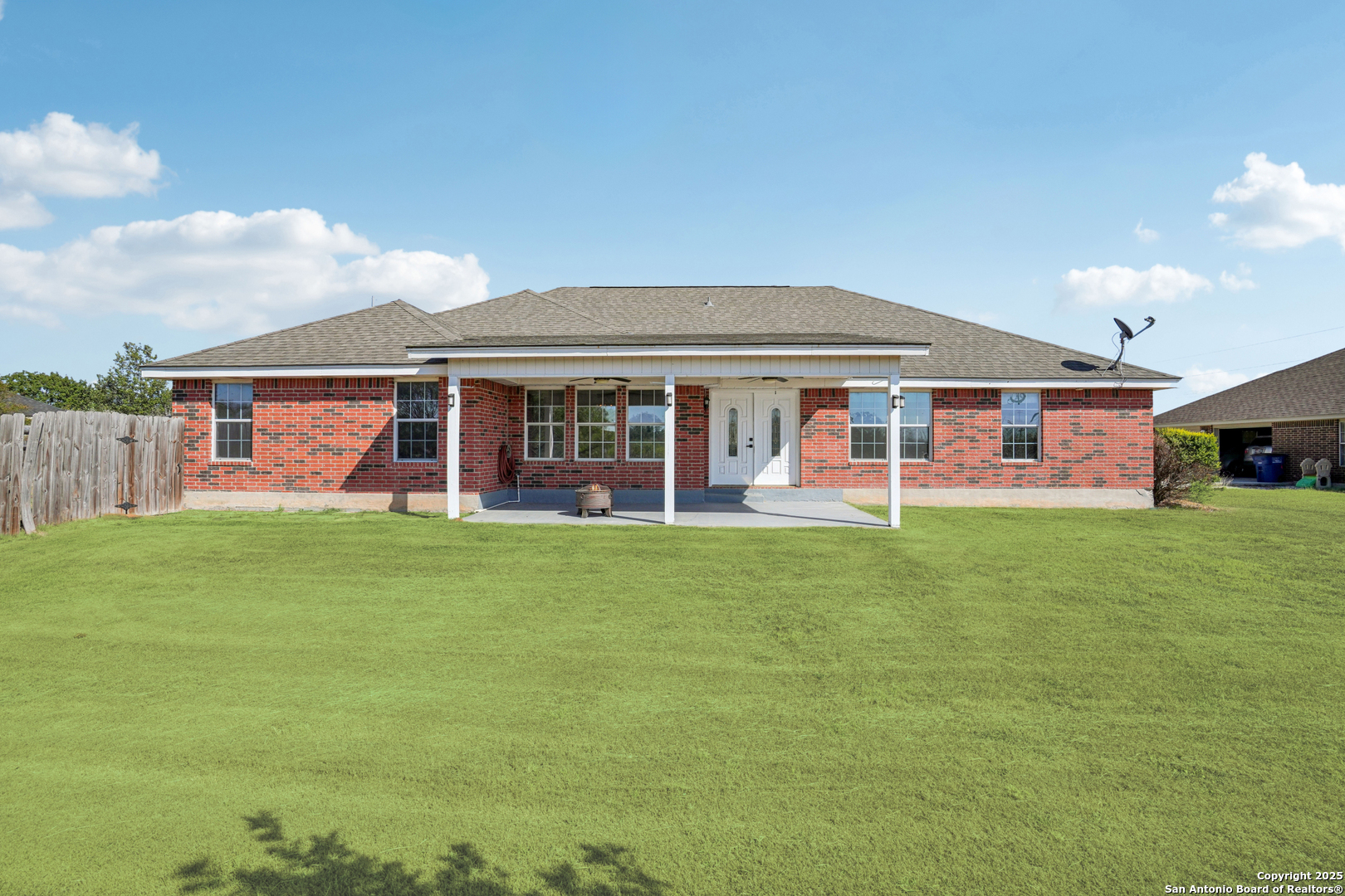 Welcome to your own slice of country paradise! Nestled on a Texas-sized half-acre lot, this beautifully crafted one-story brick home perfectly blends space, functionality, and charm. The open-concept living area is bathed in natural light and features soft neutral tones, vaulted ceilings, and on-trend flooring that adds warmth and character throughout. The magazine-worthy kitchen is the heart of the home, anchored by a large center island and enhanced by captivating lighting, custom cabinetry, white quartz countertops, and a spacious pantry. The adjoining dining area overlooks the backyard, creating a seamless flow for everyday living and entertaining. The split primary retreat, privately located at the back of the home, offers a relaxing escape complete with an ensuite bathroom and dual walk-in closets. On the other side of the home, you will find three generously sized bedrooms, a full bathroom, and a dedicated office-ideal for working or studying from home. Enjoy your own backyard oasis featuring a sparkling pool, perfect for hosting unforgettable summer gatherings. The oversized covered patio provides the ideal spot to enjoy outdoor meals or unwind in the shade.