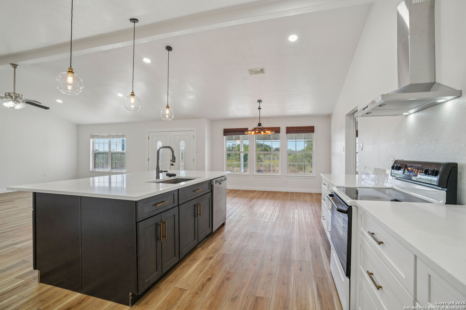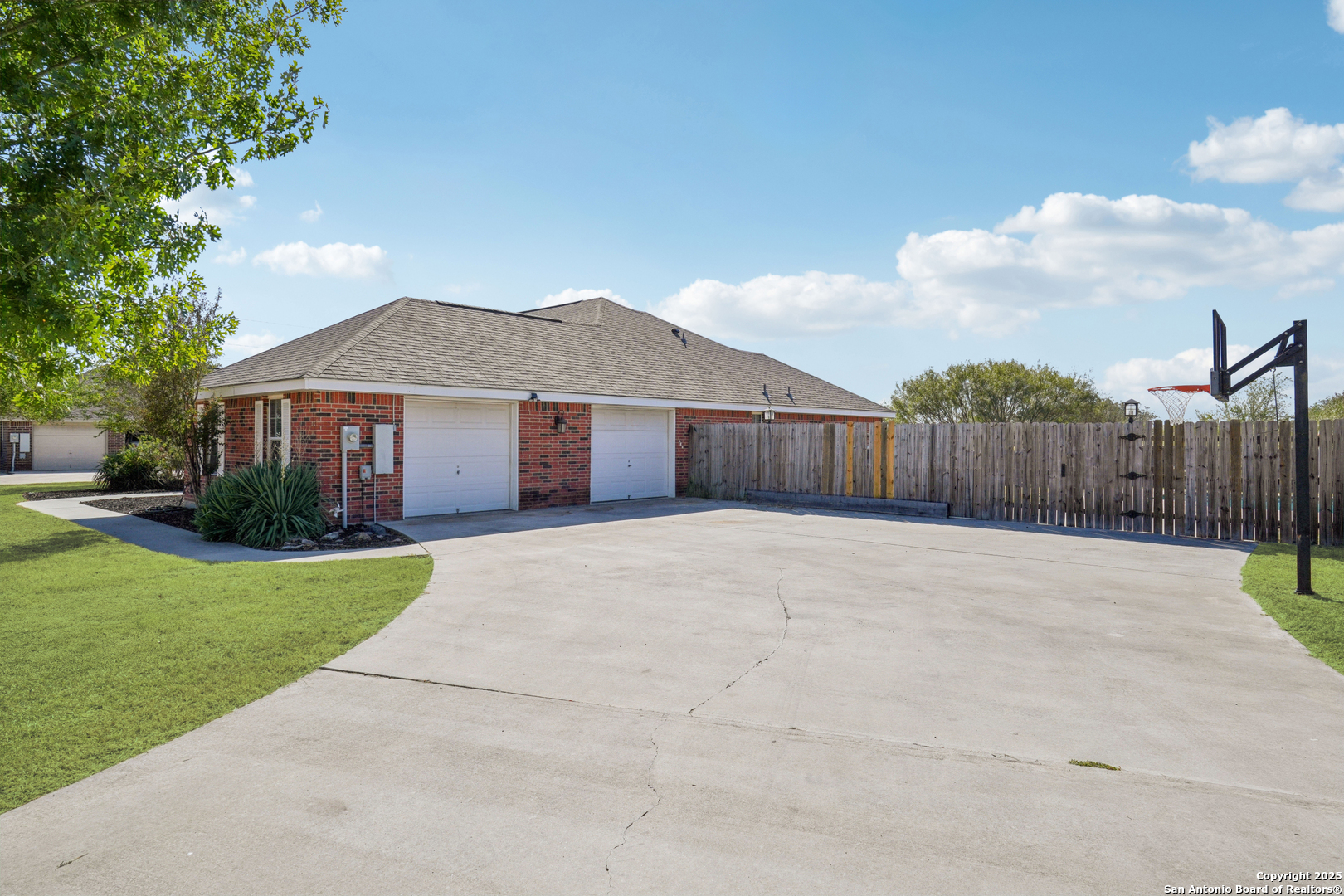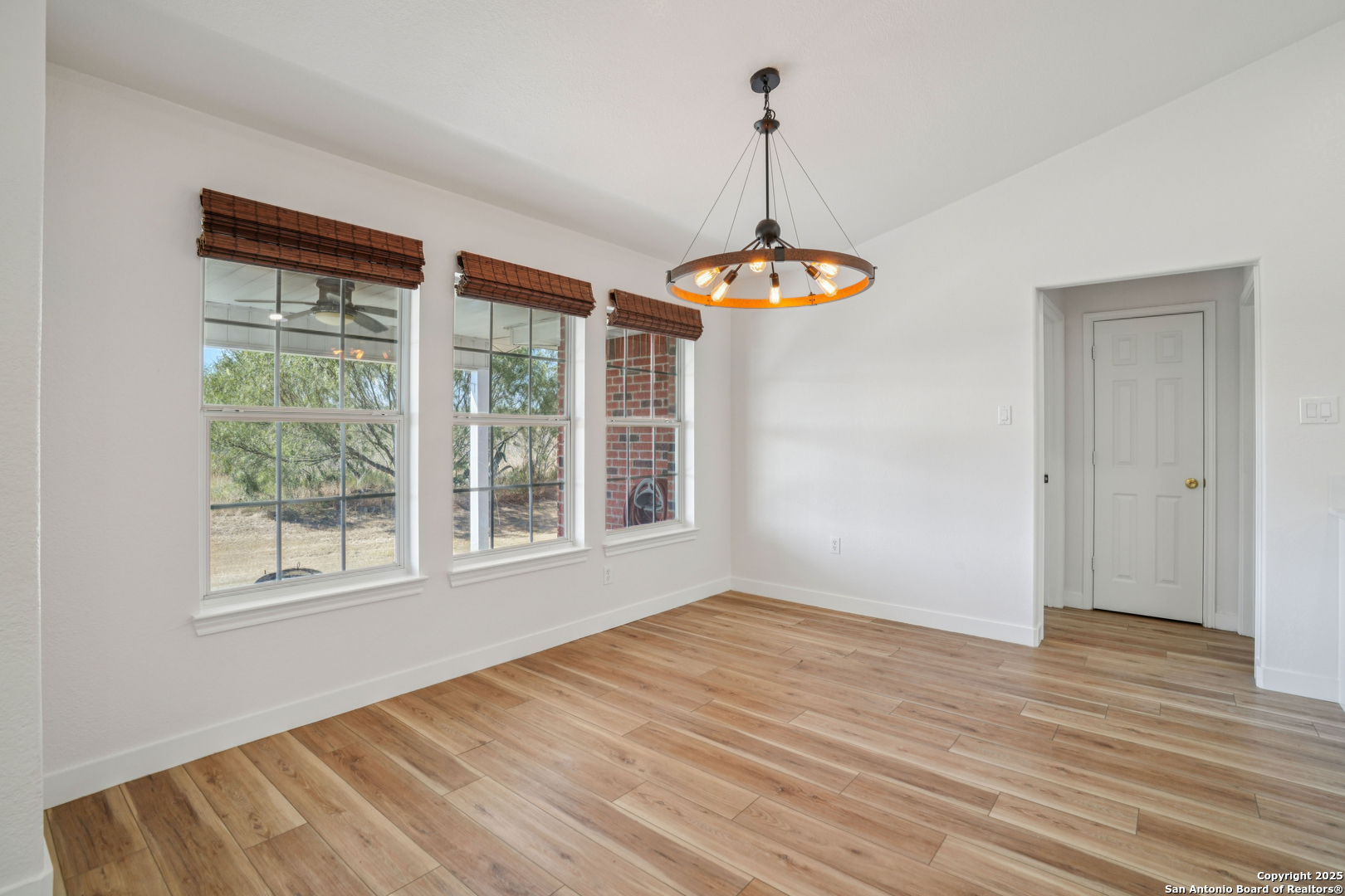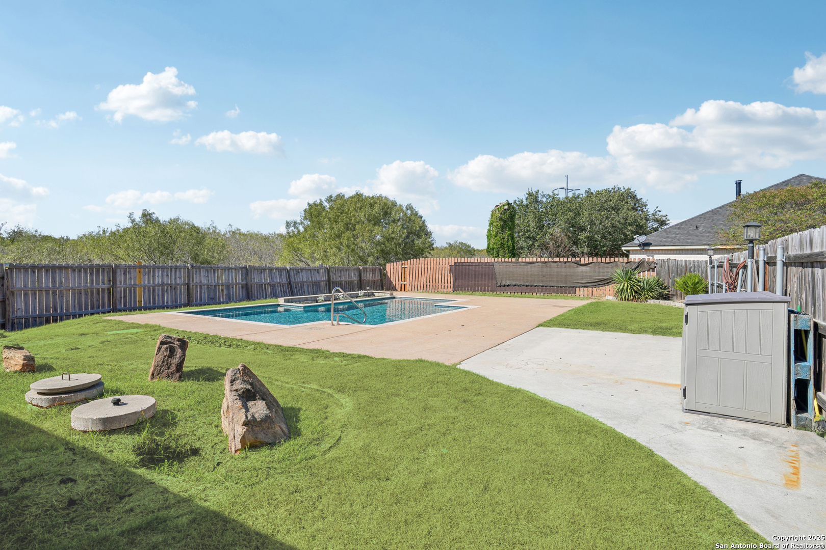 Welcome to your own slice of country paradise! Nestled on a Texas-sized half-acre lot, this beautifully crafted one-story brick home perfectly blends space, functionality, and charm. The open-concept living area is bathed in natural light and features soft neutral tones, vaulted ceilings, and on-trend flooring that adds warmth and character throughout. The magazine-worthy kitchen is the heart of the home, anchored by a large center island and enhanced by captivating lighting, custom cabinetry, white quartz countertops, and a spacious pantry. The adjoining dining area overlooks the backyard, creating a seamless flow for everyday living and entertaining. The split primary retreat, privately located at the back of the home, offers a relaxing escape complete with an ensuite bathroom and dual walk-in closets. On the other side of the home, you will find three generously sized bedrooms, a full bathroom, and a dedicated office-ideal for working or studying from home. Enjoy your own backyard oasis featuring a sparkling pool, perfect for hosting unforgettable summer gatherings. The oversized covered patio provides the ideal spot to enjoy outdoor meals or unwind in the shade.