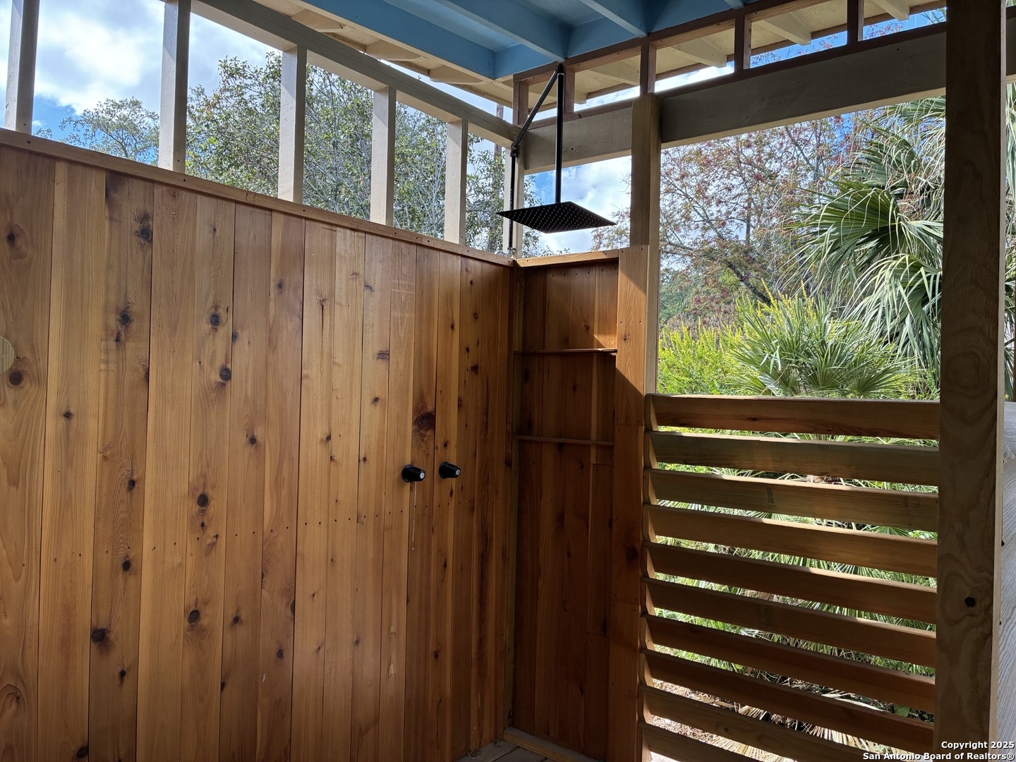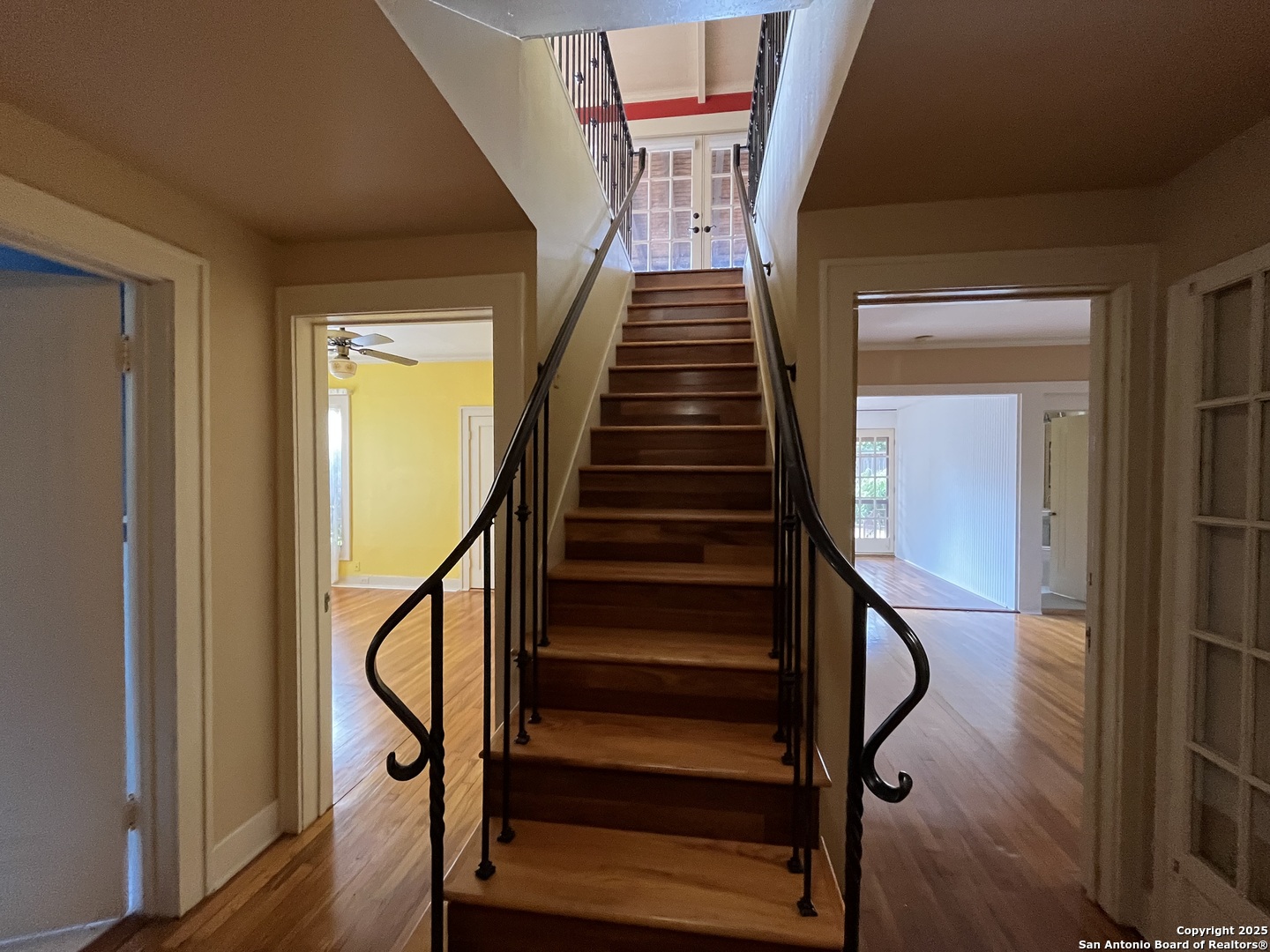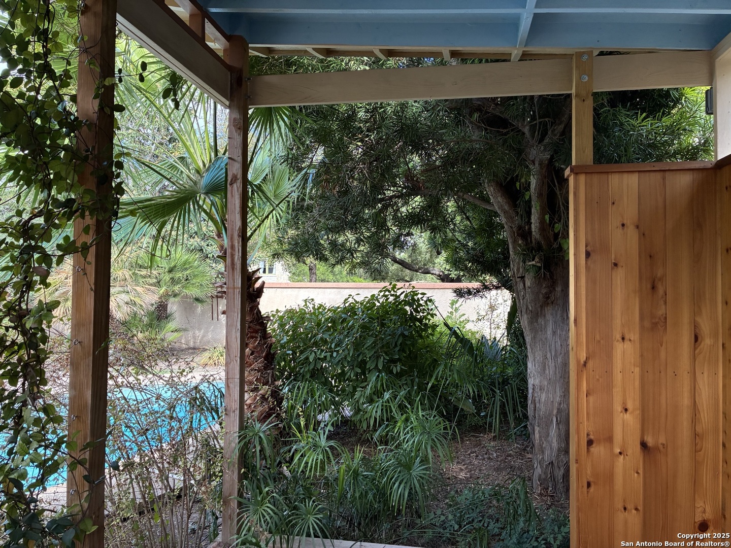 This beautiful home in Monte Vista is situated on a wonderfully landscaped lot with mature shrubbery, a pool, and guest quarters! The Spanish Revival style architecture is evident on both the interior and exterior. The home has 2 downstairs bedrooms and bathrooms, with an incredible primary suite and bath upstairs (Complete with a screened in porch/balcony). Downstairs, the plastered walls and wooden floors have been lovingly refinished and contains so many design features that are a nod to this one-of-a-kind home! In the side courtyard the pool, outside cabana and shower, potter's bench and lush landscaping are all within a secluded setting. The driveway has a passthrough gate and a stand-alone two car garage , which is adjacent to the guest quarters. Lots of hardwood floors, beautiful windows and stylish finishes. Convenient location in a fabulous neighborhood!