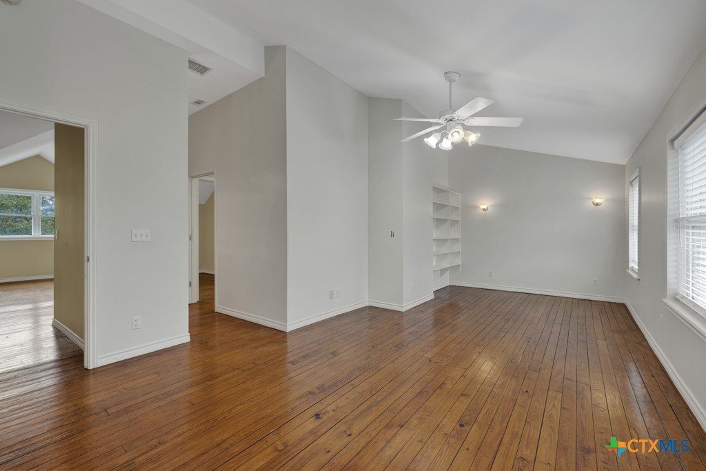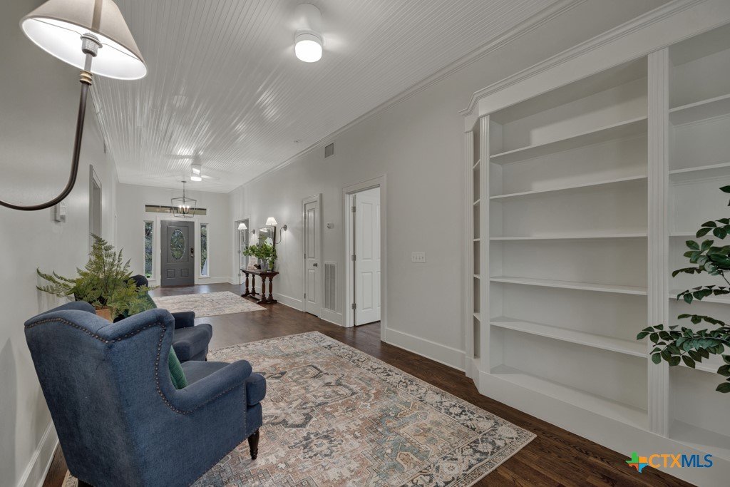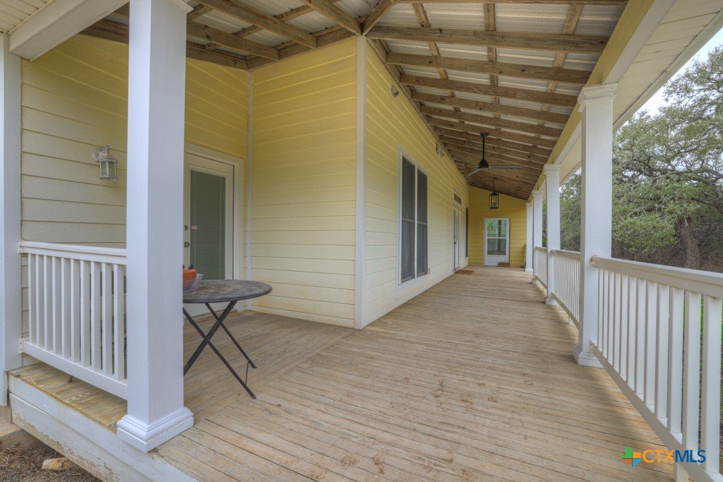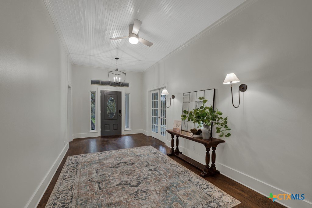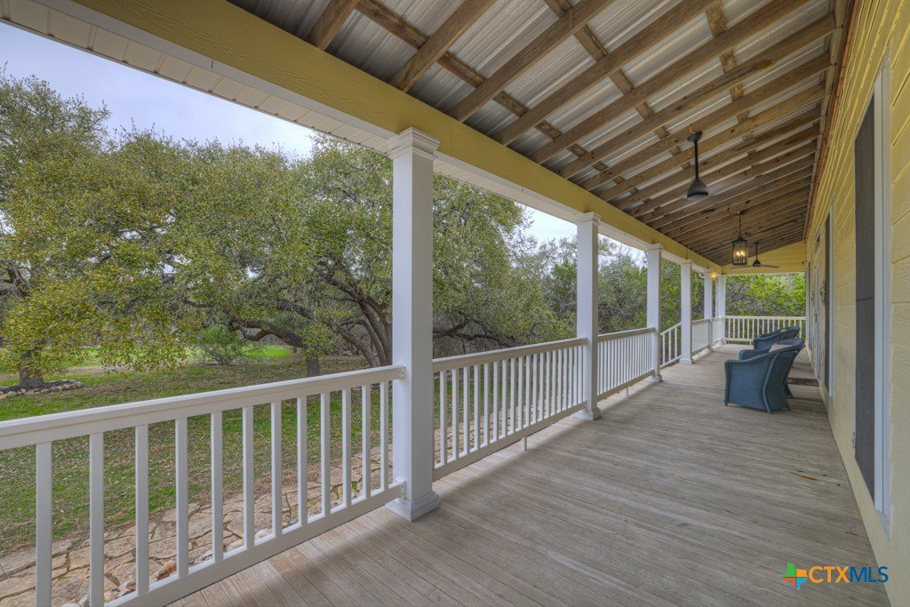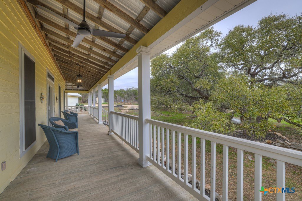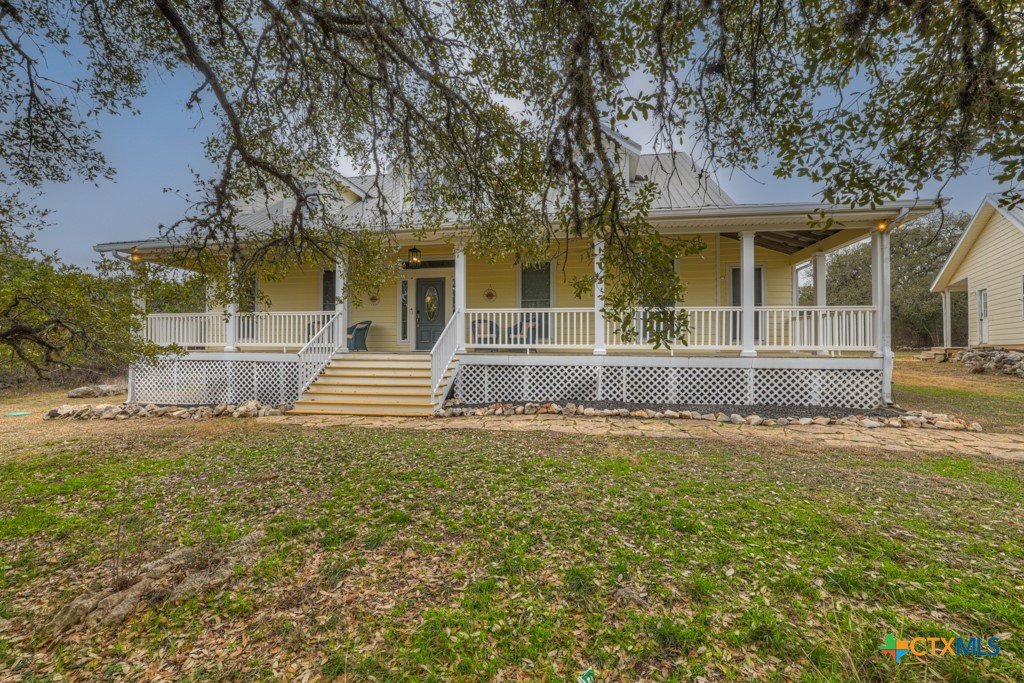 Surrounded by mature oak trees in the heart of the Hill Country, this beautifully updated home sits on 5 fully fenced acres, offering both privacy and convenience. Ideally located with easy access to San Marcos, Wimberley, and surrounding areas, this property is perfect for those seeking a peaceful retreat without sacrificing accessibility. Step inside through the grand foyer entrance, complete with built-in bookshelves, setting the tone for a home that blends elegance with warmth. The primary suite offers direct access to the wraparound front porch, creating a seamless indoor-outdoor living experience. A versatile adjoining room is ideal for a nursery, home office, or gym—perfect for today’s lifestyle needs. An ADA guest room ensures comfort and convenience for all, adding to the home’s thoughtful design. Upstairs, you'll find two spacious bedrooms connected by a cozy living area, along with BONUS SPACE walk-in floored attic access that presents endless possibilities—finish it out as additional bedrooms, a game room, man cave, or studio. Outside, this property is a homesteader’s dream, featuring a chicken coop and an enclosed garden with raised beds, perfect for growing fresh produce year-round. Recent updates include fresh paint, new fixtures, and refinished wood floors, enhancing the home's timeless charm. With its seclusion, natural beauty, and modern updates, this property is a rare Hill Country gem waiting for its next owner!