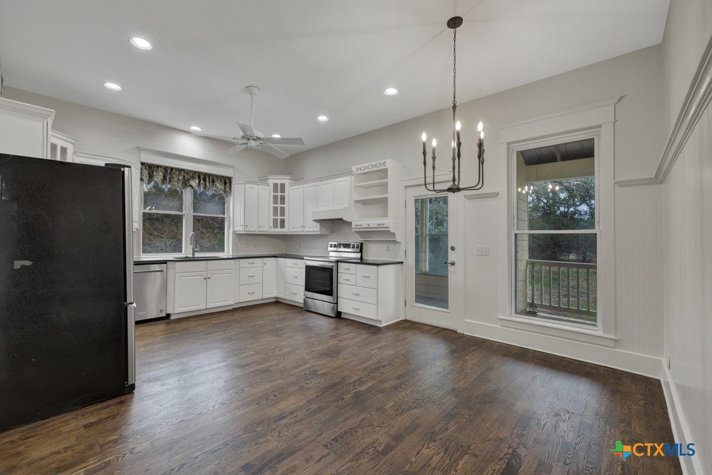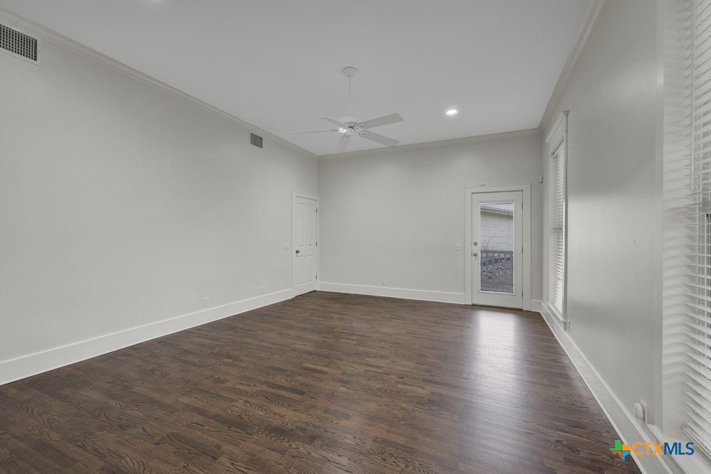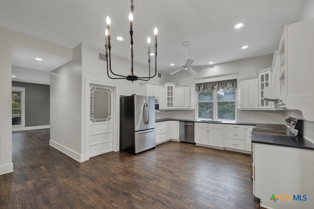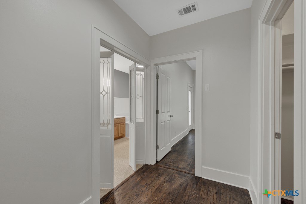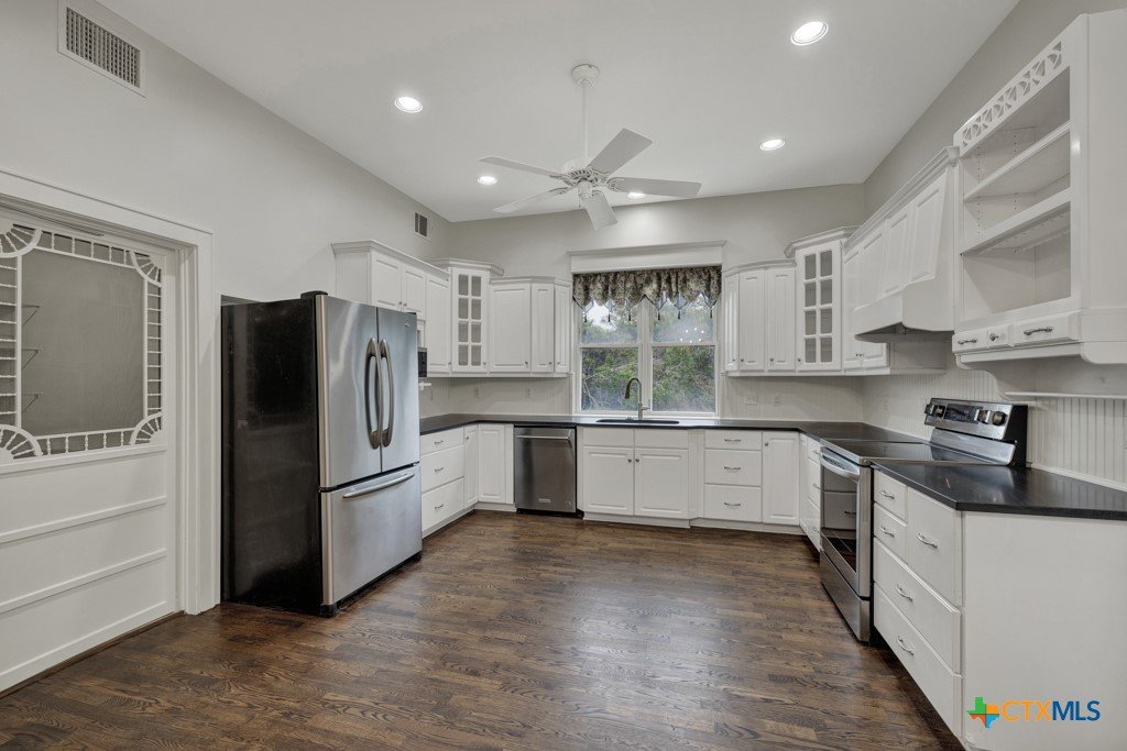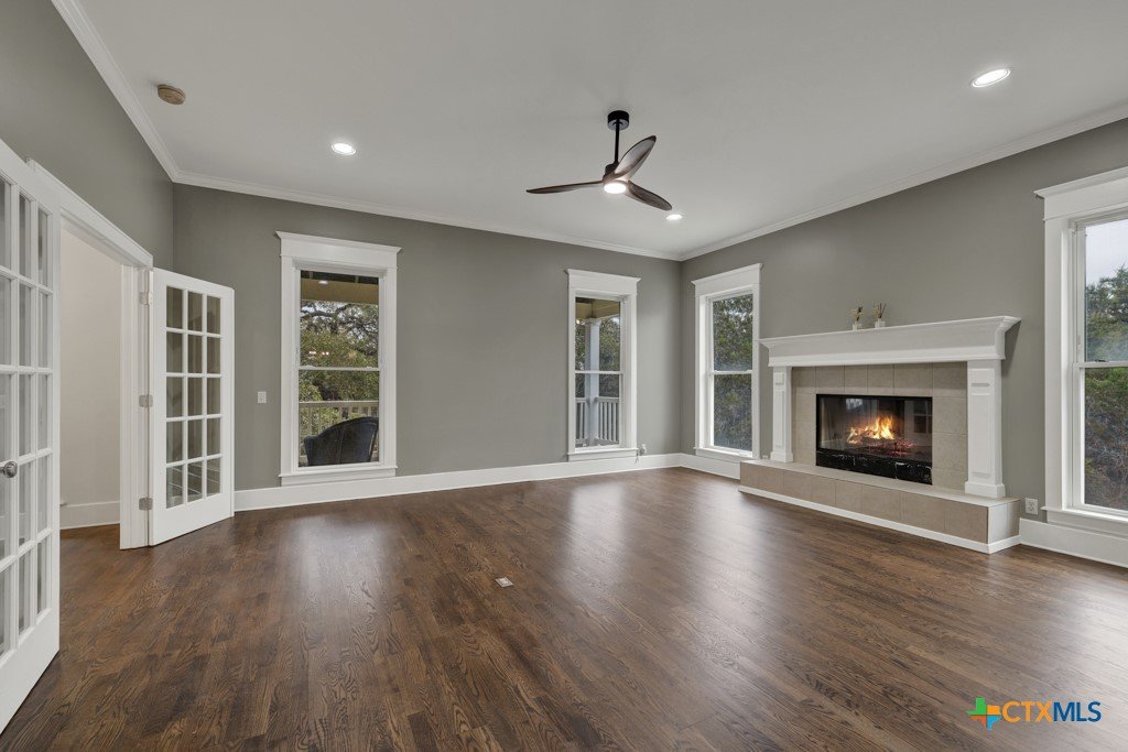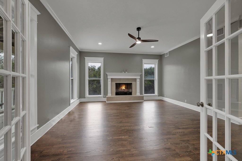Surrounded by mature oak trees in the heart of the Hill Country, this beautifully updated home sits on 5 fully fenced acres, offering both privacy and convenience. Ideally located with easy access to San Marcos, Wimberley, and surrounding areas, this property is perfect for those seeking a peaceful retreat without sacrificing accessibility. Step inside through the grand foyer entrance, complete with built-in bookshelves, setting the tone for a home that blends elegance with warmth. The primary suite offers direct access to the wraparound front porch, creating a seamless indoor-outdoor living experience. A versatile adjoining room is ideal for a nursery, home office, or gym—perfect for today’s lifestyle needs. An ADA guest room ensures comfort and convenience for all, adding to the home’s thoughtful design. Upstairs, you'll find two spacious bedrooms connected by a cozy living area, along with BONUS SPACE walk-in floored attic access that presents endless possibilities—finish it out as additional bedrooms, a game room, man cave, or studio. Outside, this property is a homesteader’s dream, featuring a chicken coop and an enclosed garden with raised beds, perfect for growing fresh produce year-round. Recent updates include fresh paint, new fixtures, and refinished wood floors, enhancing the home's timeless charm. With its seclusion, natural beauty, and modern updates, this property is a rare Hill Country gem waiting for its next owner!