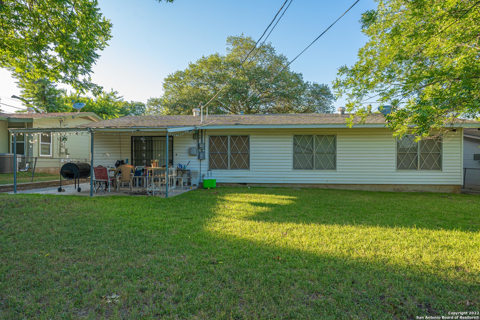 Your searching stops here !! Its all about LOCATION LOCATION LOCATION !! This home is centrally located making easy commutes to 410 , IH-10 and nearby downtown. Nestled in a well established neighborhood with many mature trees for shading. Inside home boast a open concept living and kitchen area, with a gourmet kitchen area a must see. All three bedrooms are nicely sized. Don't forget the large backyard with a covered patio , perfect for entertaining and the kids playing area. This is a must see!!