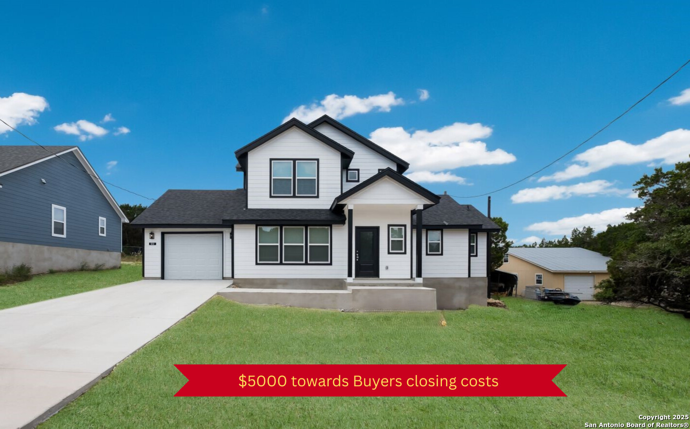 NEW HOME CONSTRUCTION-** Seller offering up to $5000 towards buyers closing costs or buy down rate** Home Eligible for NO DOWN PAYMENT ASSISTANCE program. Good size lot to work on your dream backyard, add a gazebo, garden, pool, there's plenty of room. Open concept kitchen and living room create a spacious and airy feel - perfect for family and friends to gather. Stainless steel appliances Included. GORGEOUS Walk in Shower in Primary Bathroom Primary BDRM down and 2 upstairs, with a loft! Home can be available with all furnishings and TVs. One car garage. Covered back patio. Situated in the Pebble Beach community in Lakehills. 1 block to Medina Lake.