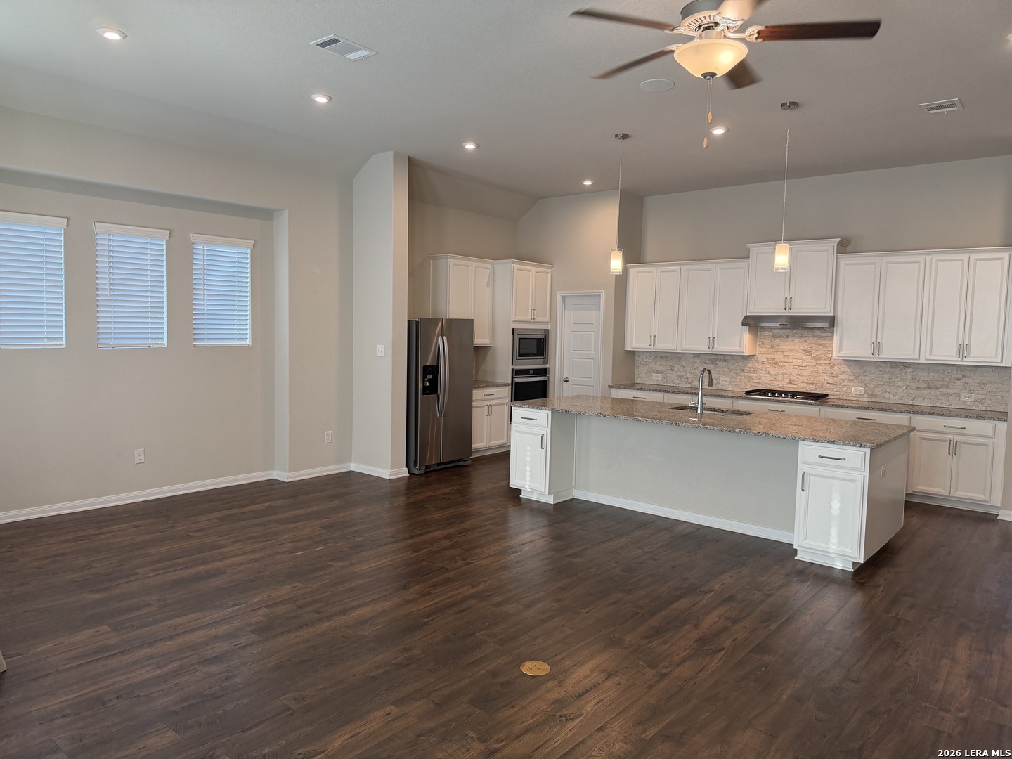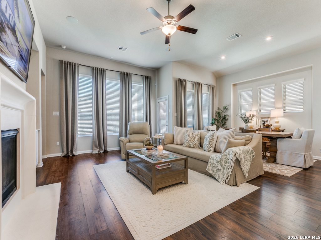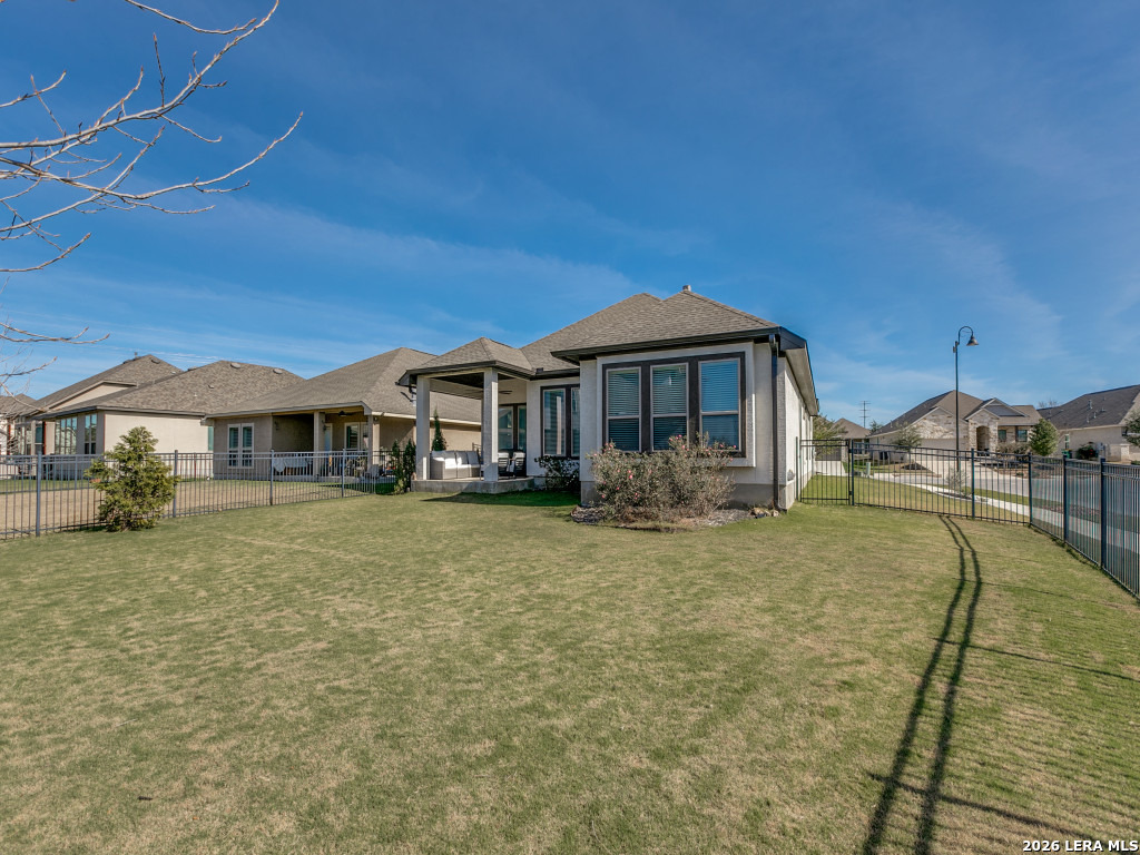 This beautiful one-story rental home is move-in ready! Located in one of Boerne's most sought-after communities - Esperanza has a vibrant lifestyle, scenic hill country surroundings, and an unbeatable location within the BISD school district. This home offers 3 bedrooms, 2.5 bathrooms plus a versatile bonus room that can be used as a home office, gym, or nursery. The open-concept layout creates a seamless connection between the living, dining, and kitchen area - perfect for both everyday living and entertaining. The kitchen is well-appointed with abundant cabinetry, a large island, gas cooking, stainless steel appliances, bar seating, an undermount sink and a dedicated coffee bar. The living room features a gas fireplace with built-in cabinetry, surround sound, and plenty of natural light. Tenants will enjoy savings on appliances and window treatments as the washer, dryer, refrigerator and water softener all stay, allowing for a simple and stress-free move in! Step outside to the covered patio, fully fenced backyard and a sprinkler system - ideal for enjoying time outdoors and grill nights. Situated on a landscaped corner lot, the home offers added privacy and curb appeal. Residents of Esperanza enjoy access to resort-style amenities including pools, a lazy river, walking and biking trails, pickleball courts, parks, a dog park, and a community events center. This well-maintained home offers comfort, convenience, and a thriving community lifestyle! Home is waiting for you!