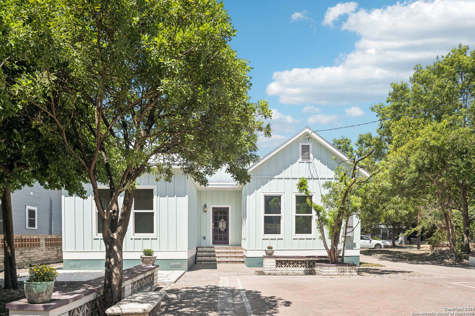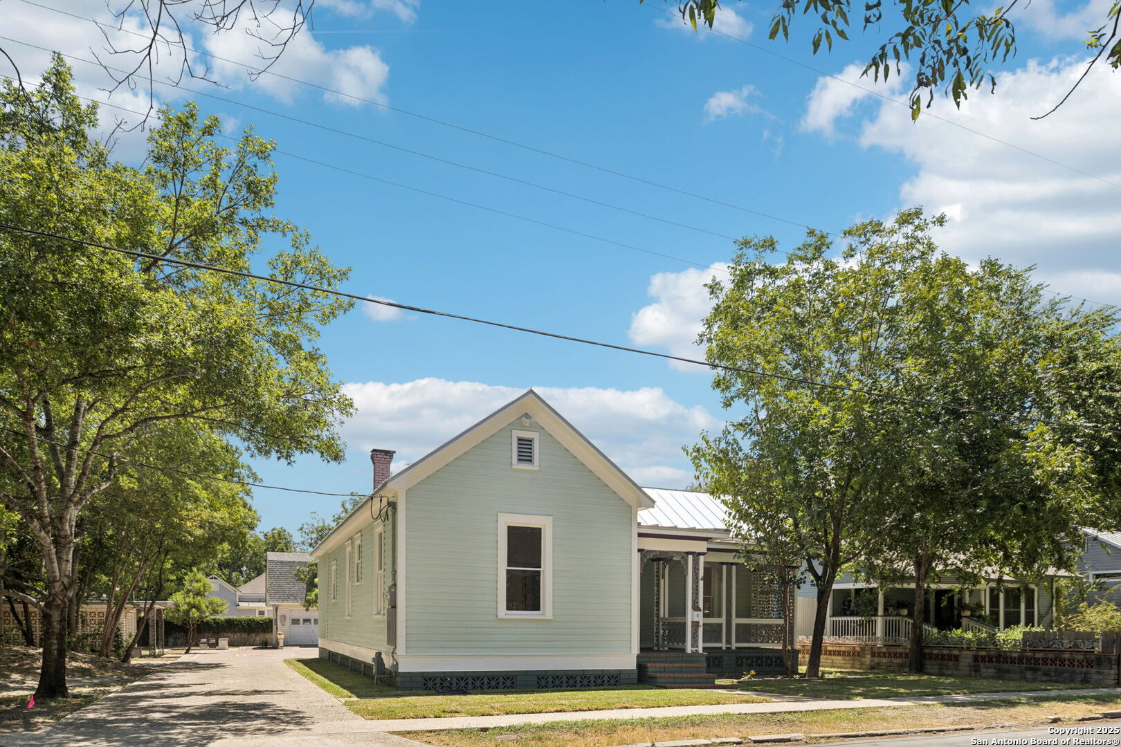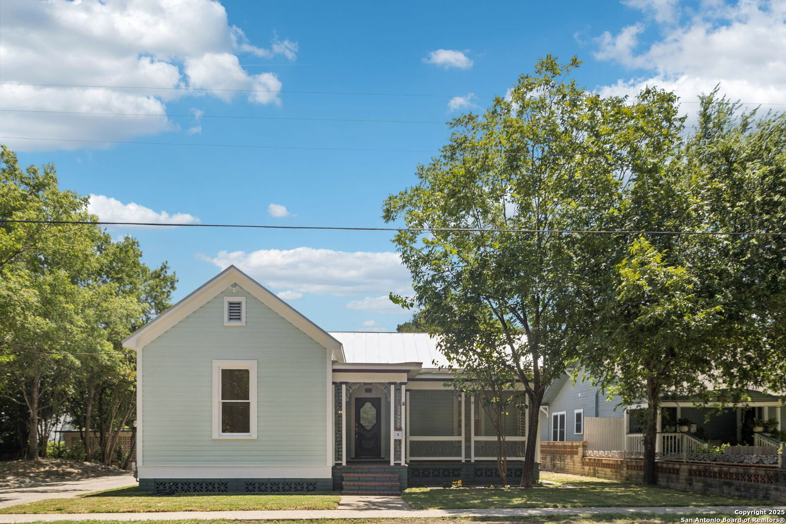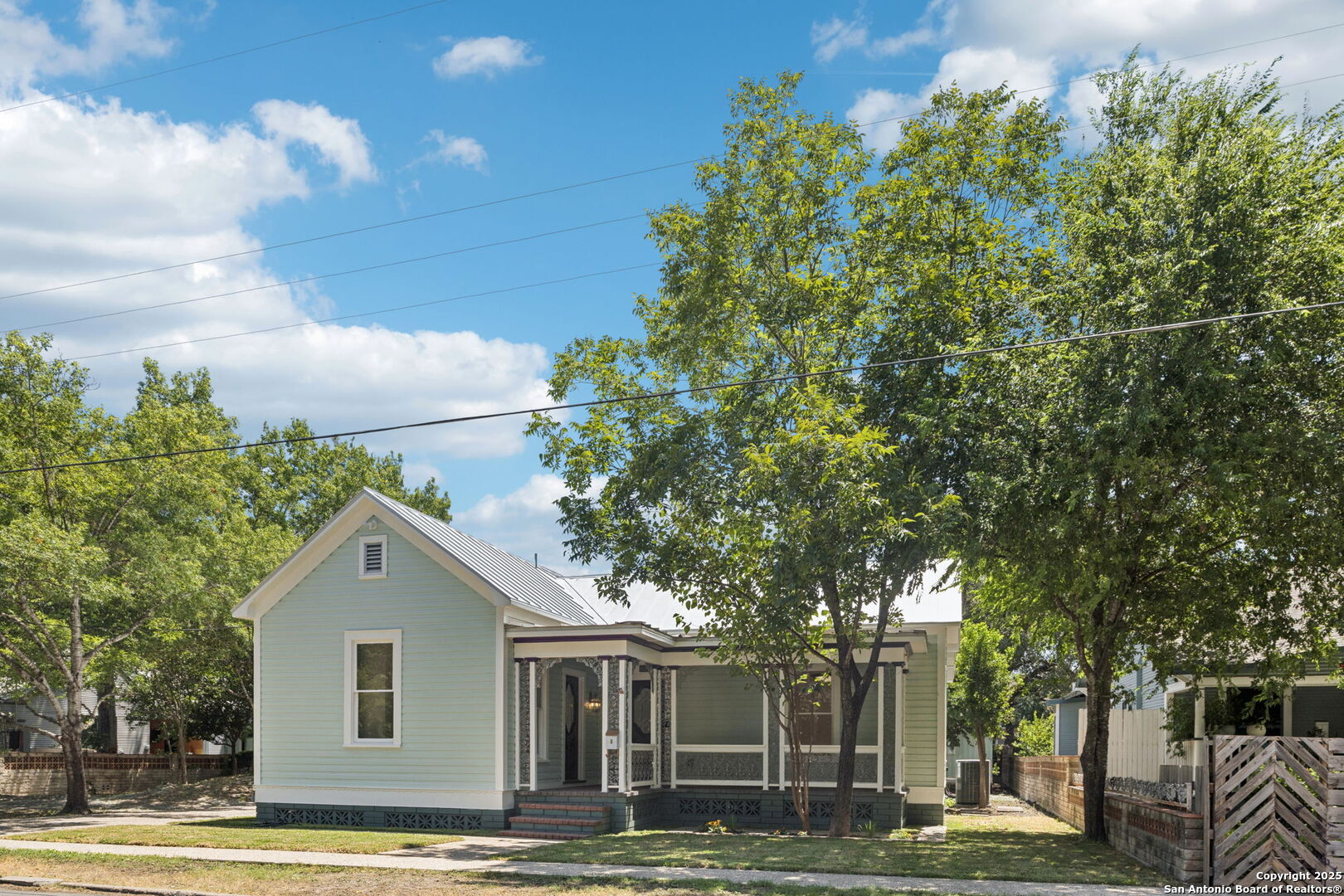 A must see, very unique property in Baja Lavaca, the coolest niche neighborhood! Huge lot, with outbuildings, surrounded by great historic homes & friendly neighbors! Welcome to 122 Leopold, a completely restored 1912 historic home in the Roosevelt/Lavaca neighborhood-just blocks from Southtown's restaurants, nightlife, Bliss Restaurant and Rosario's. This 3 bedroom, 2 bathroom home combines timeless character with a top-to-bottom renovation and thoughtful addition, offering modern comfort and historic charm. Inside, refinished white oak floors run throughout the home, complemented by shell limestone tile in the kitchen and all-new tile in the bathrooms. The kitchen boasts custom cabinetry, quartz countertops, and a new gas stove. Both bathrooms are entirely new, with a stunning primary suite and a carefully refurbished original clawfoot tub preserved in the secondary. One of the front secondary bedrooms even features a private entrance from outside, offering flexibility for guests, a home office, or rental potential. Additional features include new custom closets, restored historic windows with reglazing, and high-end restoration hardware throughout. The list of upgrades is extensive: new sewer and water lines, new plumbing and fixtures, tankless water heater, new gas lines, new HVAC, all new insulation, new drywall and wood trim, all new interior doors, new paint inside and out, and a brand-new standing seam metal roof on the home with a new composition roof on the garage. The detached garage includes a loft and previously roughed-in bathroom space, offering buyers a blank canvas for future guest quarters, a studio, rental potential, or a workshop. The large .22-acre lot provides a rare sense of space in the city, with a private courtyard-style backyard perfect for entertaining or relaxing. This property offers the best of Southtown living-historic charm, extensive updates, and income potential-all in one of San Antonio's most walkable and vibrant neighborhoods.