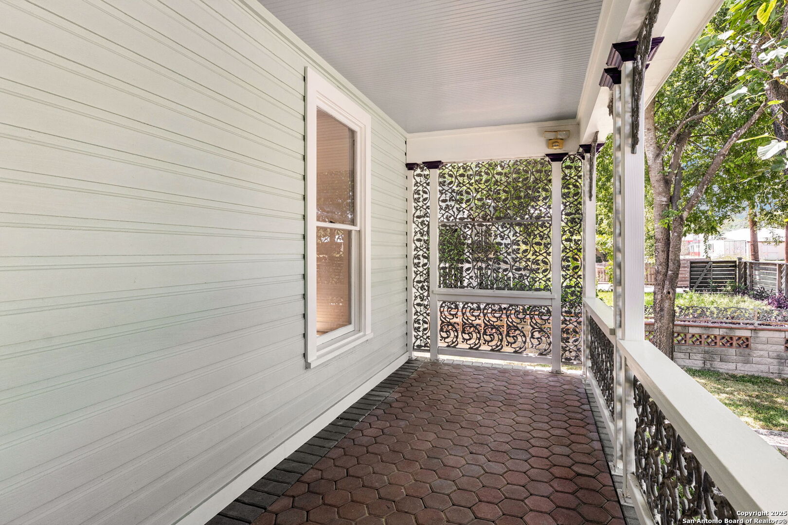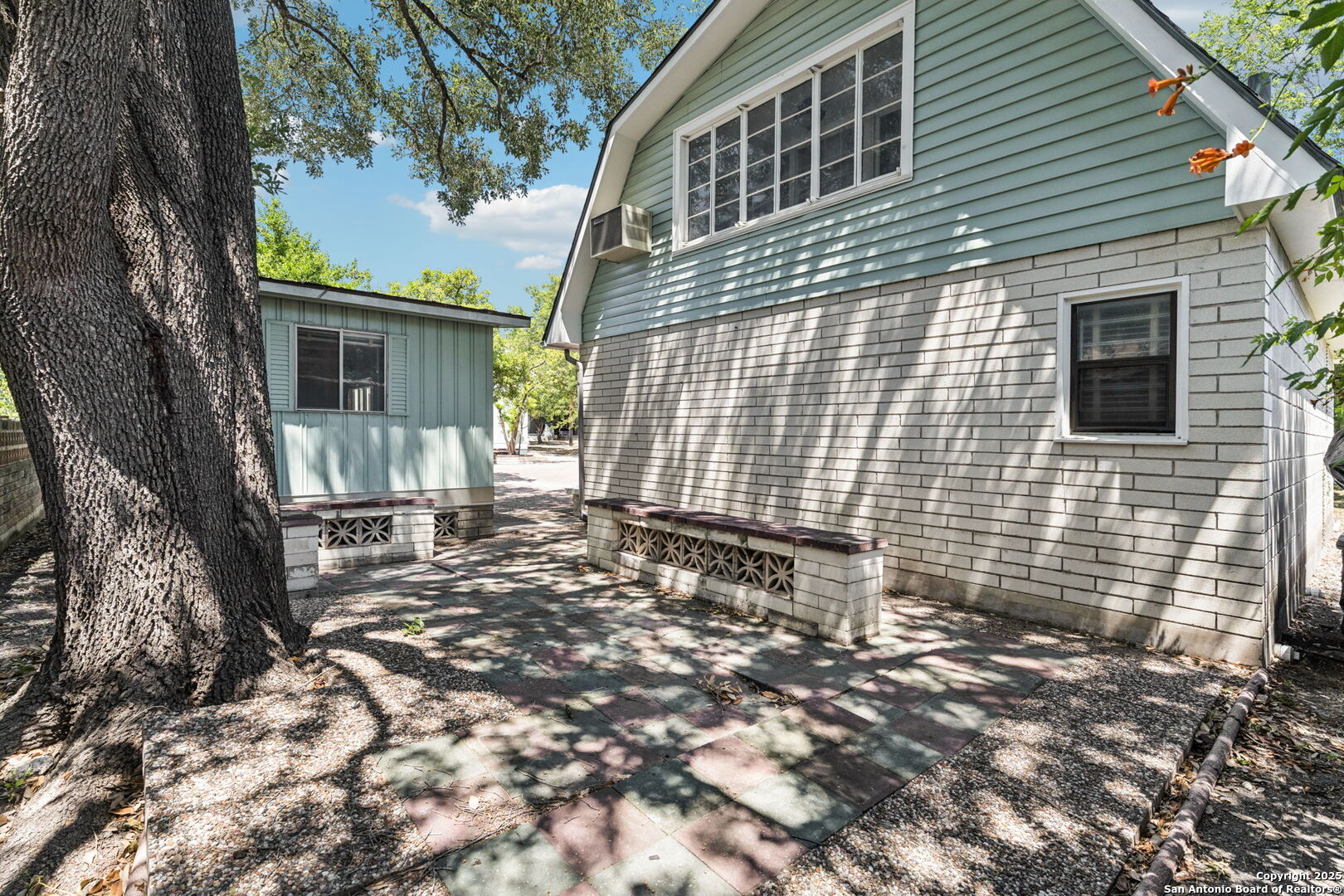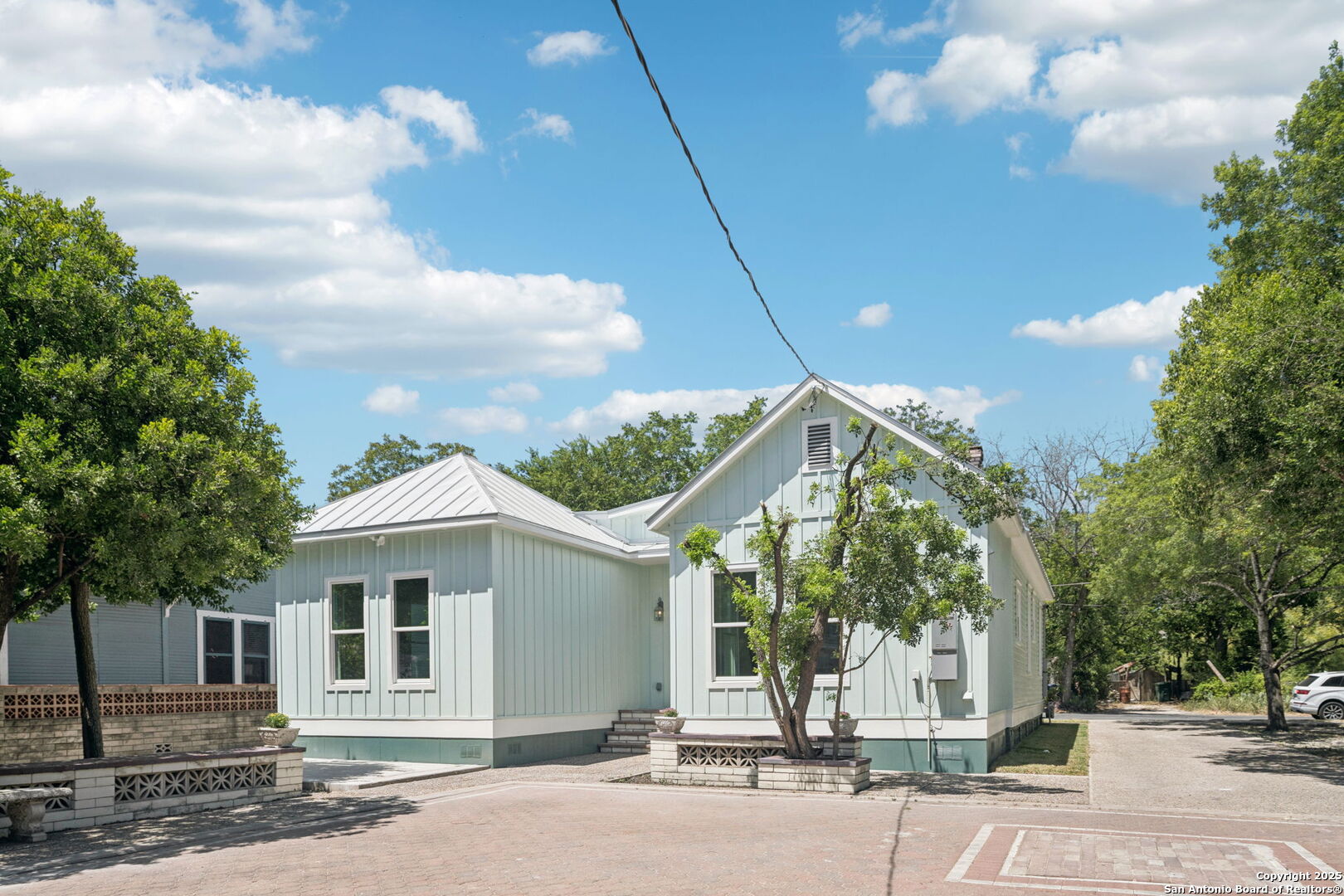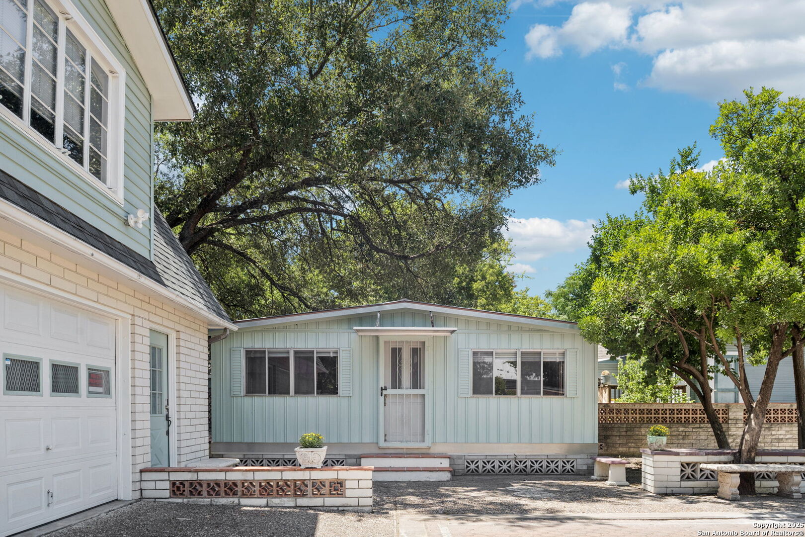 A must see, very unique property in Baja Lavaca, the coolest niche neighborhood! Huge lot, with outbuildings, surrounded by great historic homes & friendly neighbors! Welcome to 122 Leopold, a completely restored 1912 historic home in the Roosevelt/Lavaca neighborhood-just blocks from Southtown's restaurants, nightlife, Bliss Restaurant and Rosario's. This 3 bedroom, 2 bathroom home combines timeless character with a top-to-bottom renovation and thoughtful addition, offering modern comfort and historic charm. Inside, refinished white oak floors run throughout the home, complemented by shell limestone tile in the kitchen and all-new tile in the bathrooms. The kitchen boasts custom cabinetry, quartz countertops, and a new gas stove. Both bathrooms are entirely new, with a stunning primary suite and a carefully refurbished original clawfoot tub preserved in the secondary. One of the front secondary bedrooms even features a private entrance from outside, offering flexibility for guests, a home office, or rental potential. Additional features include new custom closets, restored historic windows with reglazing, and high-end restoration hardware throughout. The list of upgrades is extensive: new sewer and water lines, new plumbing and fixtures, tankless water heater, new gas lines, new HVAC, all new insulation, new drywall and wood trim, all new interior doors, new paint inside and out, and a brand-new standing seam metal roof on the home with a new composition roof on the garage. The detached garage includes a loft and previously roughed-in bathroom space, offering buyers a blank canvas for future guest quarters, a studio, rental potential, or a workshop. The large .22-acre lot provides a rare sense of space in the city, with a private courtyard-style backyard perfect for entertaining or relaxing. This property offers the best of Southtown living-historic charm, extensive updates, and income potential-all in one of San Antonio's most walkable and vibrant neighborhoods.