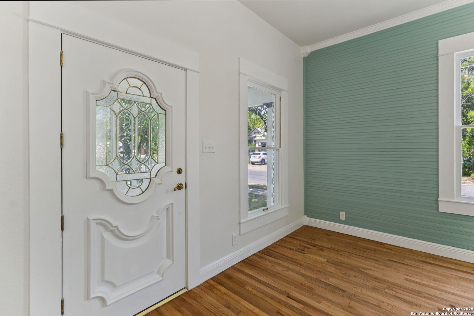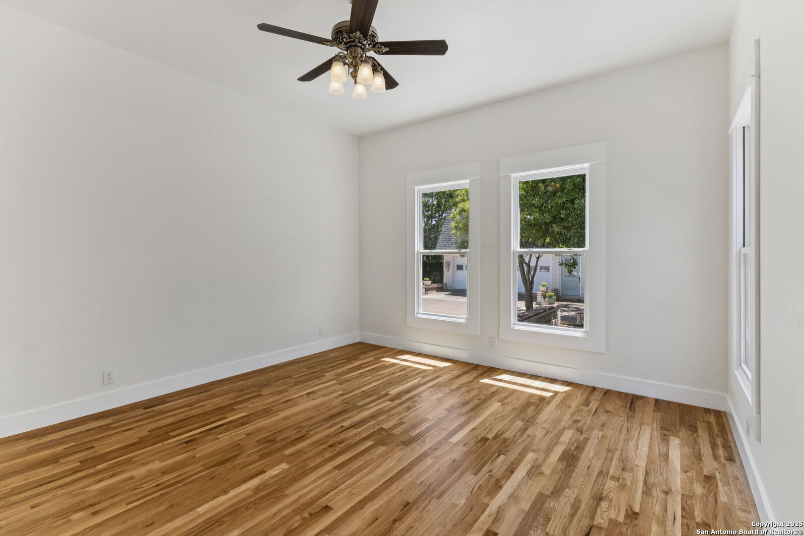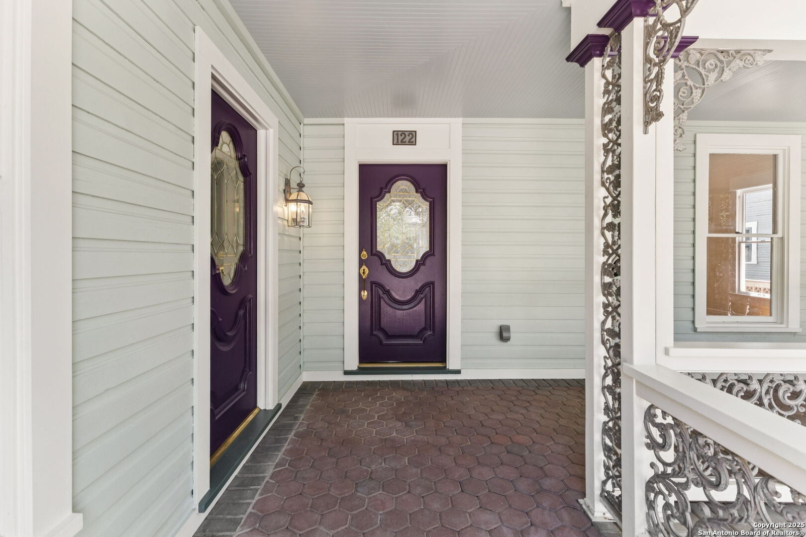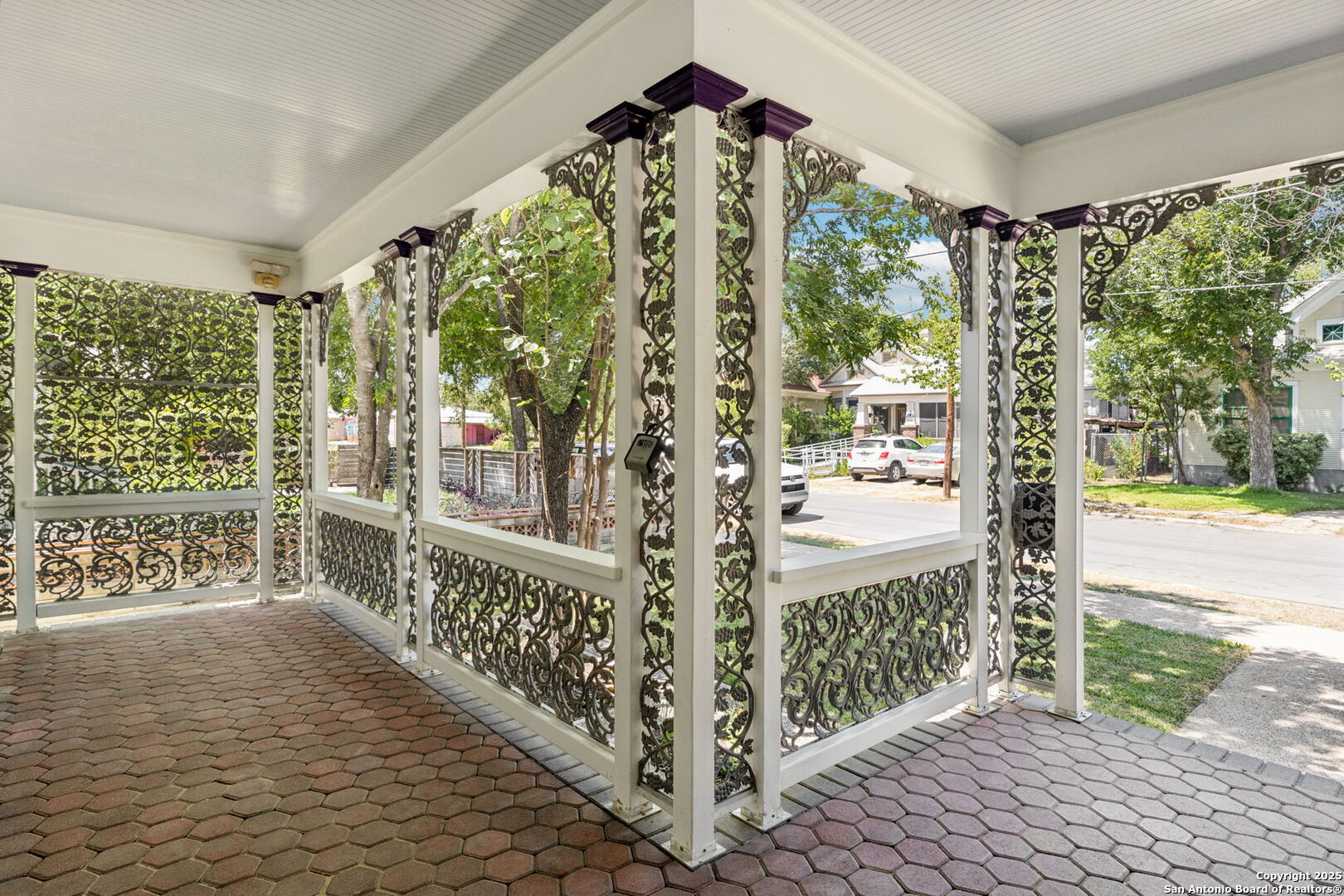 A must see, very unique property in Baja Lavaca, the coolest niche neighborhood! Huge lot, with outbuildings, surrounded by great historic homes & friendly neighbors! Welcome to 122 Leopold, a completely restored 1912 historic home in the Roosevelt/Lavaca neighborhood-just blocks from Southtown's restaurants, nightlife, Bliss Restaurant and Rosario's. This 3 bedroom, 2 bathroom home combines timeless character with a top-to-bottom renovation and thoughtful addition, offering modern comfort and historic charm. Inside, refinished white oak floors run throughout the home, complemented by shell limestone tile in the kitchen and all-new tile in the bathrooms. The kitchen boasts custom cabinetry, quartz countertops, and a new gas stove. Both bathrooms are entirely new, with a stunning primary suite and a carefully refurbished original clawfoot tub preserved in the secondary. One of the front secondary bedrooms even features a private entrance from outside, offering flexibility for guests, a home office, or rental potential. Additional features include new custom closets, restored historic windows with reglazing, and high-end restoration hardware throughout. The list of upgrades is extensive: new sewer and water lines, new plumbing and fixtures, tankless water heater, new gas lines, new HVAC, all new insulation, new drywall and wood trim, all new interior doors, new paint inside and out, and a brand-new standing seam metal roof on the home with a new composition roof on the garage. The detached garage includes a loft and previously roughed-in bathroom space, offering buyers a blank canvas for future guest quarters, a studio, rental potential, or a workshop. The large .22-acre lot provides a rare sense of space in the city, with a private courtyard-style backyard perfect for entertaining or relaxing. This property offers the best of Southtown living-historic charm, extensive updates, and income potential-all in one of San Antonio's most walkable and vibrant neighborhoods.