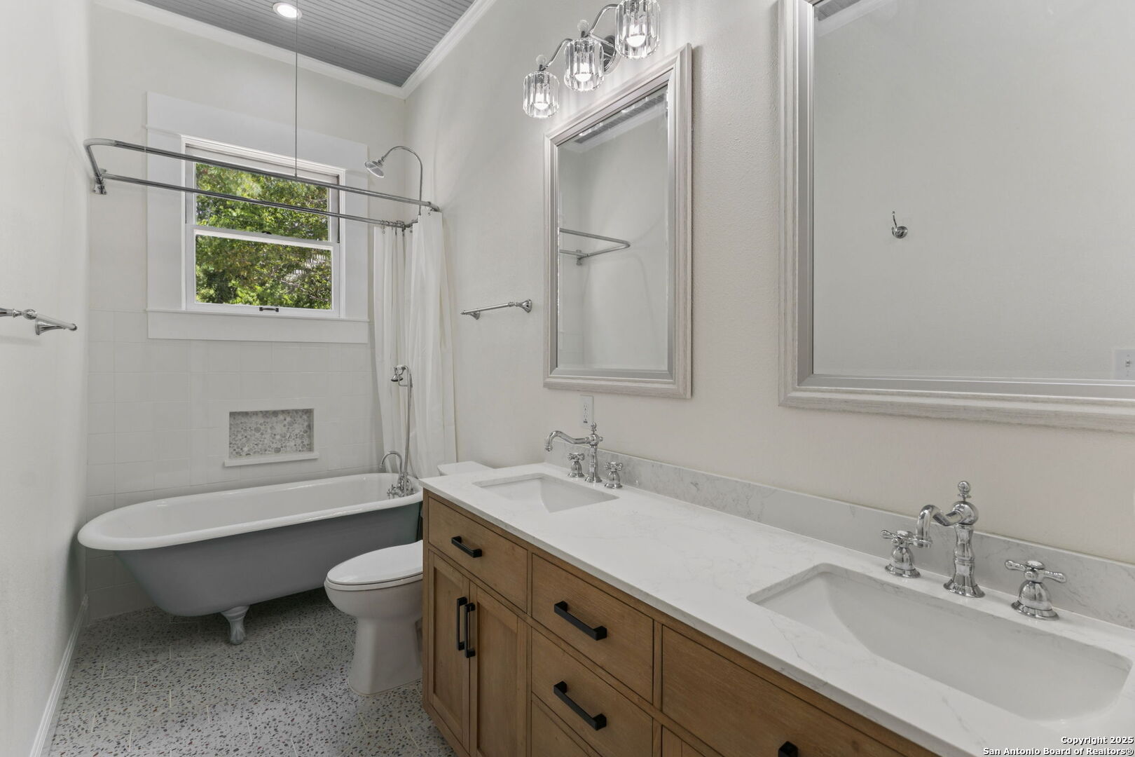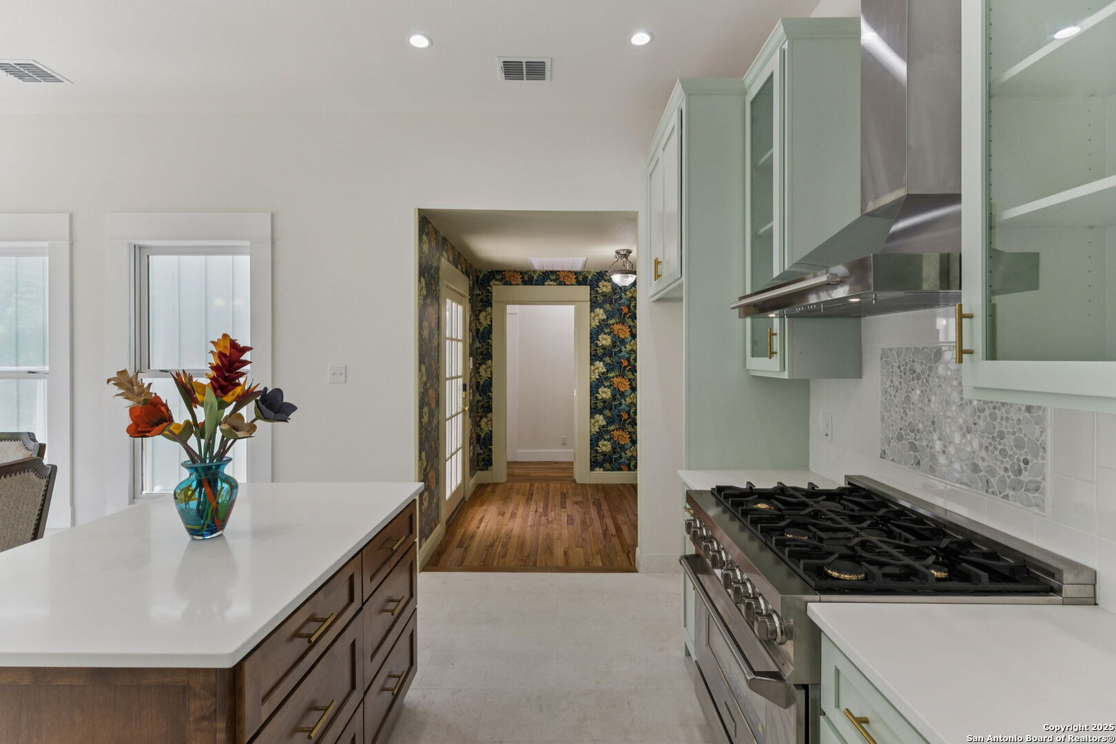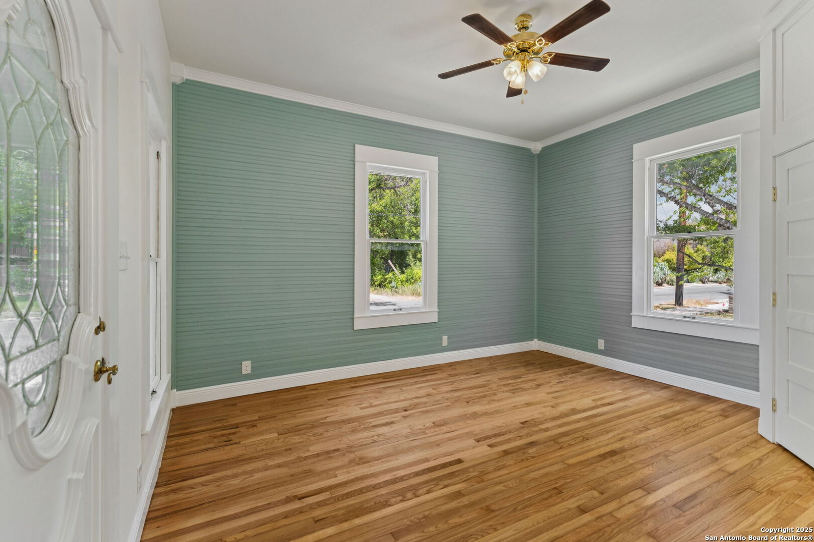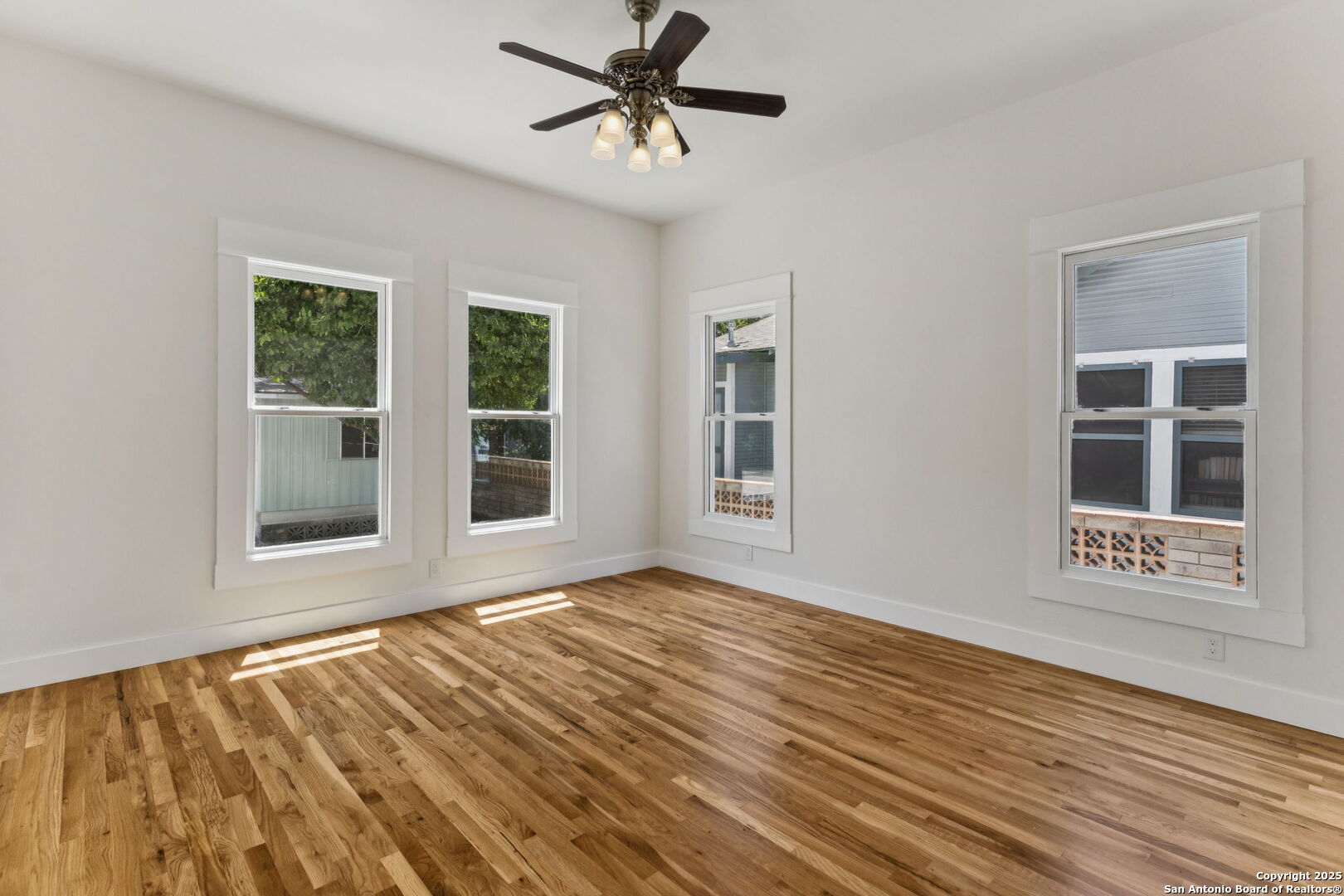 A must see, very unique property in Baja Lavaca, the coolest niche neighborhood! Huge lot, with outbuildings, surrounded by great historic homes & friendly neighbors! Welcome to 122 Leopold, a completely restored 1912 historic home in the Roosevelt/Lavaca neighborhood-just blocks from Southtown's restaurants, nightlife, Bliss Restaurant and Rosario's. This 3 bedroom, 2 bathroom home combines timeless character with a top-to-bottom renovation and thoughtful addition, offering modern comfort and historic charm. Inside, refinished white oak floors run throughout the home, complemented by shell limestone tile in the kitchen and all-new tile in the bathrooms. The kitchen boasts custom cabinetry, quartz countertops, and a new gas stove. Both bathrooms are entirely new, with a stunning primary suite and a carefully refurbished original clawfoot tub preserved in the secondary. One of the front secondary bedrooms even features a private entrance from outside, offering flexibility for guests, a home office, or rental potential. Additional features include new custom closets, restored historic windows with reglazing, and high-end restoration hardware throughout. The list of upgrades is extensive: new sewer and water lines, new plumbing and fixtures, tankless water heater, new gas lines, new HVAC, all new insulation, new drywall and wood trim, all new interior doors, new paint inside and out, and a brand-new standing seam metal roof on the home with a new composition roof on the garage. The detached garage includes a loft and previously roughed-in bathroom space, offering buyers a blank canvas for future guest quarters, a studio, rental potential, or a workshop. The large .22-acre lot provides a rare sense of space in the city, with a private courtyard-style backyard perfect for entertaining or relaxing. This property offers the best of Southtown living-historic charm, extensive updates, and income potential-all in one of San Antonio's most walkable and vibrant neighborhoods.