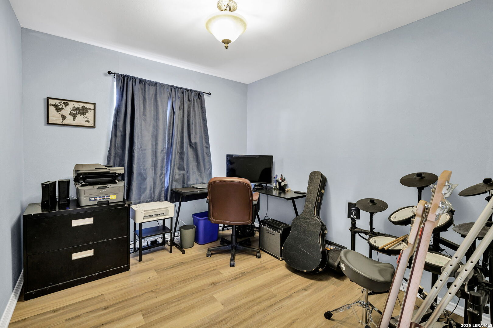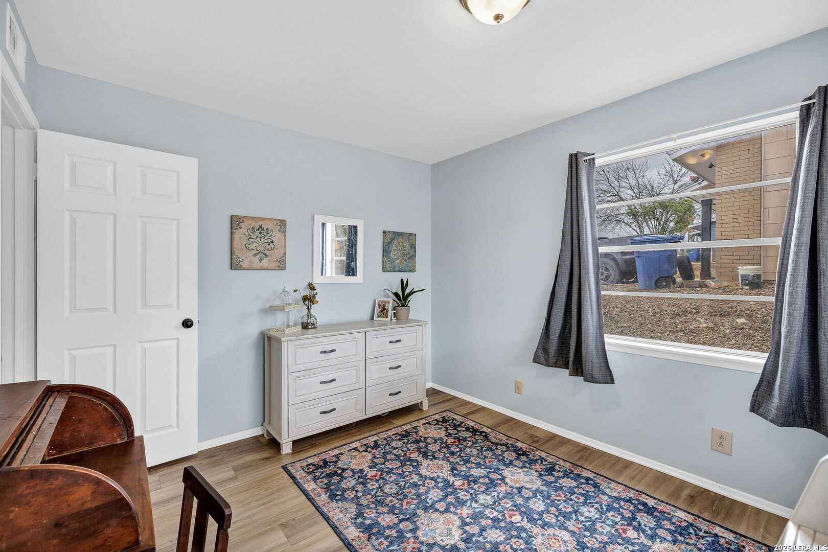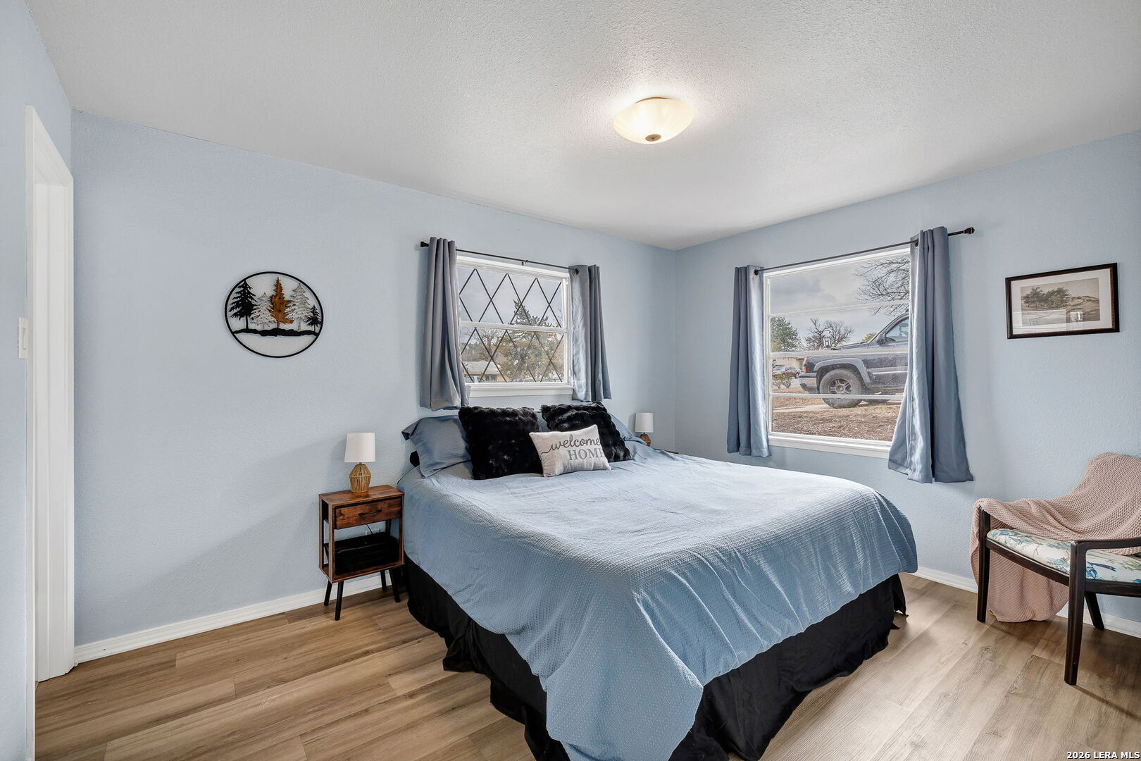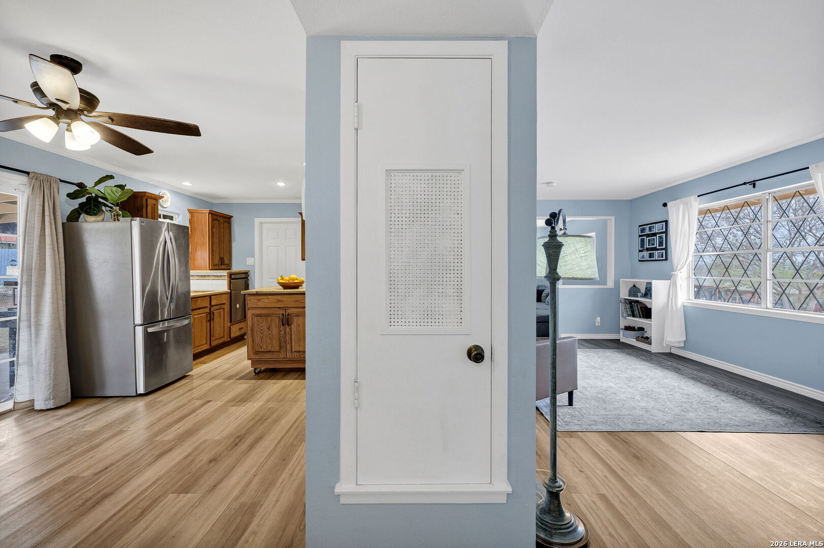 This beautifully renovated three-bedroom, two-bath home with a converted garage is perfectly situated near Lackland AFB. Inside, stylish luxury wood-look vinyl floors lead into a modern kitchen featuring tile backsplash, ceramic sink, and sleek Euro-style wall-mounted range hood. The bathrooms are tastefully updated, and fresh paint throughout creates a bright, welcoming vibe. A spacious family room with a cozy fireplace, plus a large, covered patio and backyard shed, make this move-in ready home a complete package.