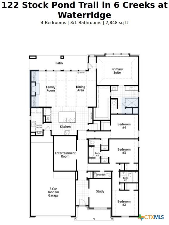 Welcome to 122 Stock Pond Trail, located in the highly sought-after 6 Creeks at Waterridge community in Kyle, Texas. This stunning Highland Homes Birchwood plan sits on a 60-foot homesite and offers approximately 2,848 square feet of thoughtfully designed living space. With 4 spacious bedrooms, 3.5 bathrooms, and a 3-car garage, this home provides the perfect balance of comfort and functionality for today’s modern lifestyle. Inside, you’ll find an open-concept layout highlighted by a gourmet kitchen, expansive family room with a cozy fireplace, and a seamless flow that makes entertaining effortless. The primary suite features a spa-inspired shower upgrade for a true retreat, while the additional bedrooms and bathrooms offer ample space for family and guests. Thoughtful enhancements such as utility room cabinetry with a sink, extra storage in the family room, and a rear brick exterior elevate both style and convenience. Outdoor living is equally inviting with a gas drop on the patio, ideal for grilling or cozy evenings by the fire. Beyond the home, 6 Creeks at Waterridge offers a lifestyle like no other. Residents enjoy scenic greenbelt trails, a resort-style amenity center with pool and playgrounds, a serene fishing pond, and brand-new pickleball courts. The community is also close to top-rated Hays ISD schools as well as shopping, dining, and everyday conveniences. With its blend of upscale finishes, generous spaces, and a location in one of Kyle’s premier master-planned communities, 122 Stock Pond Trail is the perfect place to call home.