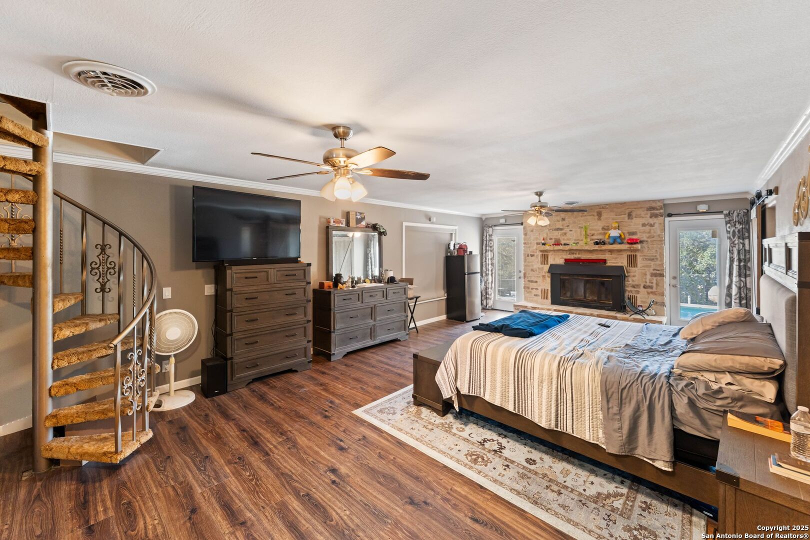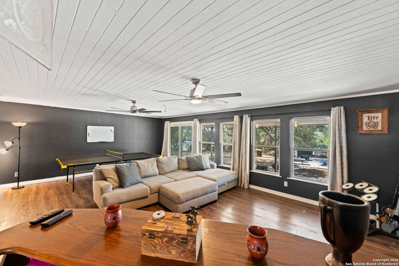 One-of-a-kind property in Canyon Lake, TX! Sitting on a spacious piece of land, this beautiful home offers an open-concept floor plan. Featuring 4 bedrooms, 4 bathrooms, a game room, and a private upstairs office within the primary bedroom-complete with its own bath and balcony overlooking stunning Hill Country views! There's also a workout room (could be a second office), a 2-car garage plus 3-car carport, and a pool with hot tub surrounded by peaceful outdoor space. Enjoy the mother-in-law suite, workshop with additional 2-car garage and 1-car carport, and owned water softener. The pool and equipment were recently installed (approx. 2 years ago) for added peace of mind. No HOA and perfectly located near schools, community events, lake access, boat ramps, the marina, and local restaurants. This home truly has it all-space, character, and Hill Country living at its finest! Don't miss out, there is so much more to this home!