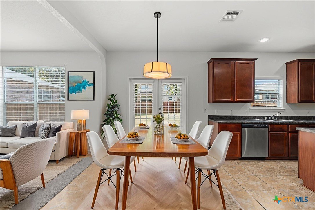 ** 1% LENDER CONCESSIONS USING OUR PREFERRED LENDER** Beautifully Updated & Move-In Ready! Set beneath a mature shade tree with a charming red-brick facade, this 4-bedroom, 2.5-bathroom home offers 2,485 sq. ft. of stylish, comfortable living in a highly desirable location. Fresh interior and exterior paint, new carpet, and updated fans and light fixtures give the home a bright, modern feel from the moment you step inside. The main level showcases an open-concept design where the living and dining areas flow seamlessly together, perfect for everyday living or entertaining. The dining area is enhanced by a modern fixture, while the kitchen shines with new hardware and handles, stainless steel appliances, a center island, walk-in pantry, and a window overlooking the backyard. A cozy breakfast nook completes this inviting space. Upstairs, a spacious loft provides flexible living options for a game room, media area, or home office. The large primary suite offers a true retreat with an en-suite bathroom featuring dual vanities, a soaking tub, separate walk-in shower, and generous closet space. Three additional bedrooms provide room for guests, hobbies, or a growing family. Enjoy peace of mind with HVAC recently serviced, sheetrock repairs completed, and new window screens installed throughout. Outside, the yard has been refreshed with new mulch and a covered patio perfect for relaxing or entertaining, along with privacy fencing and a storage shed. Ideally located near shopping, dining, and major highways, this beautifully updated home combines space, convenience, and comfort, ready for its next chapter!