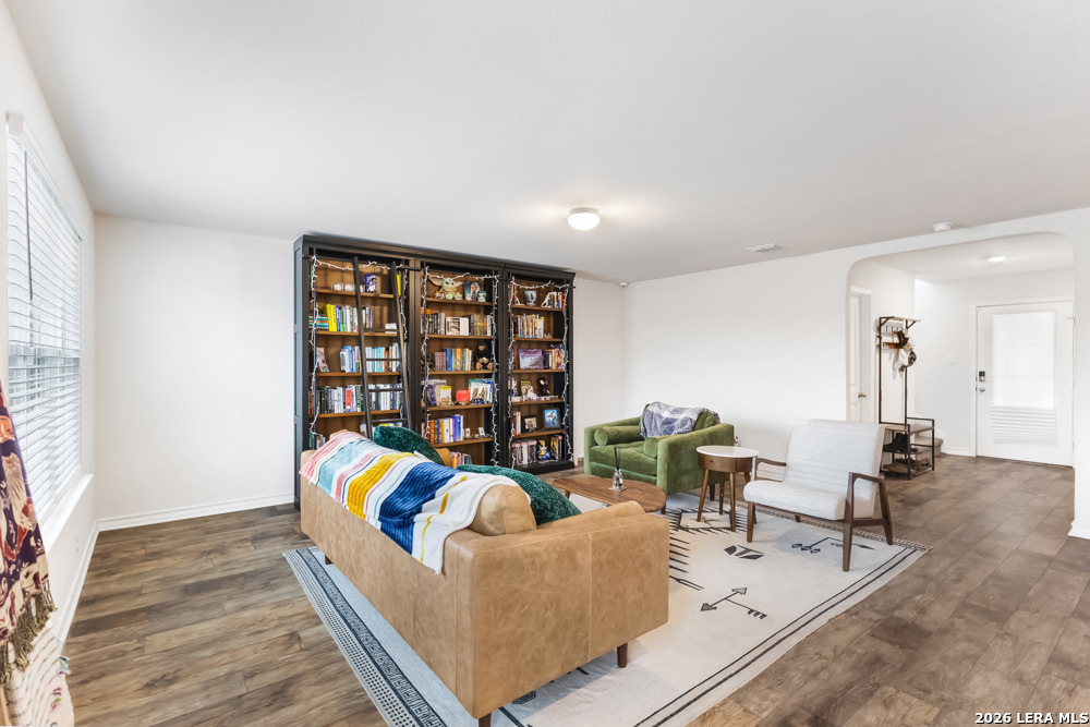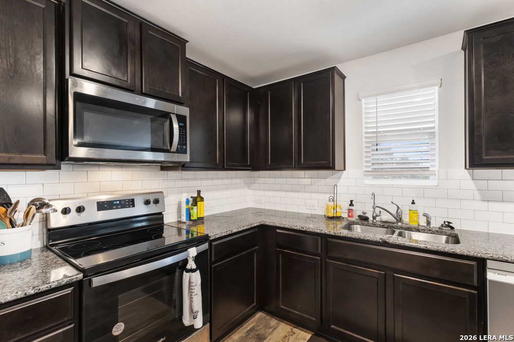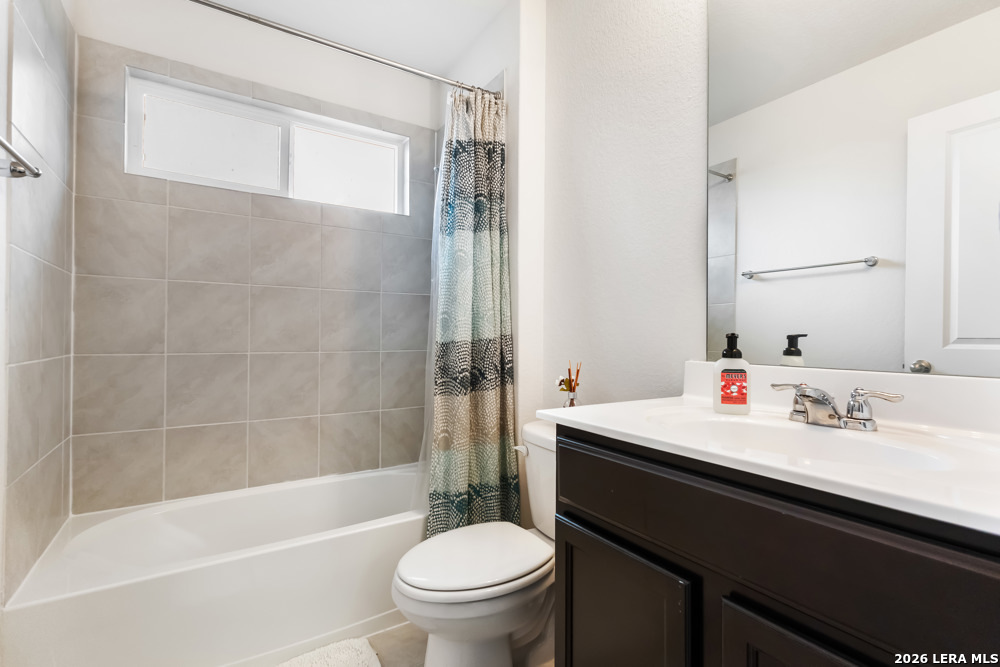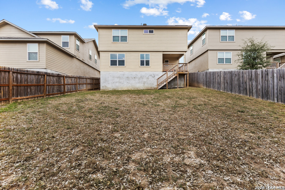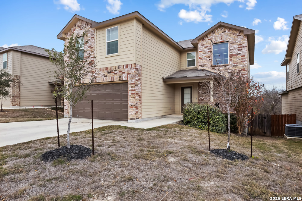 Beautiful two-story 3-bedroom, 2.5-bath home located in the Grosenbacher Ranch subdivision. As you enter from the covered front porch, you are welcomed by a spacious open floor plan featuring laminate flooring throughout the downstairs and a combined living and dining area-perfect for everyday living and entertaining. The spacious kitchen offers an abundance of cabinet and countertop space, classic white subway tile backsplash, recessed lighting, granite countertops, a center island, refrigerator, and stainless steel appliances. Upstairs, you'll find a generous family room/game room along with all three bedrooms. The primary bedroom features a full bath with double vanity, walk-in shower, and separate garden tub. Bedrooms two and three are nicely sized and share a hall bathroom with a tub/shower combo and single vanity. Step outside to the covered back porch with steps leading down to a great-sized backyard-ideal for outdoor enjoyment with no backyard neighbors. Conveniently situated near Loop 1604 and Potranco Road with easy access to shopping, dining, schools, and major highways. Washer, dryer, and water softener included.