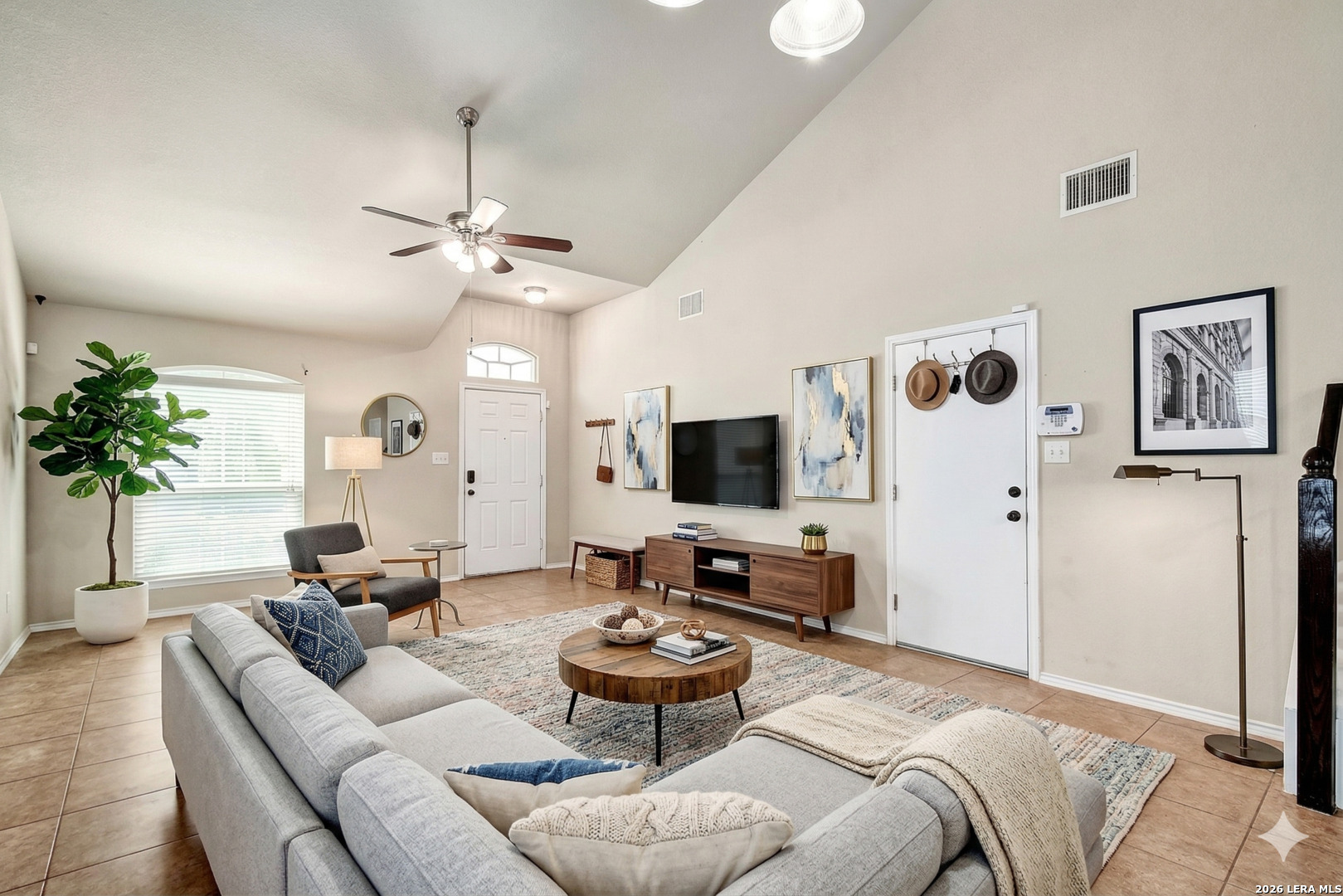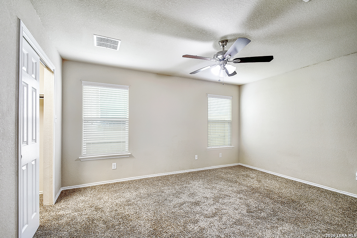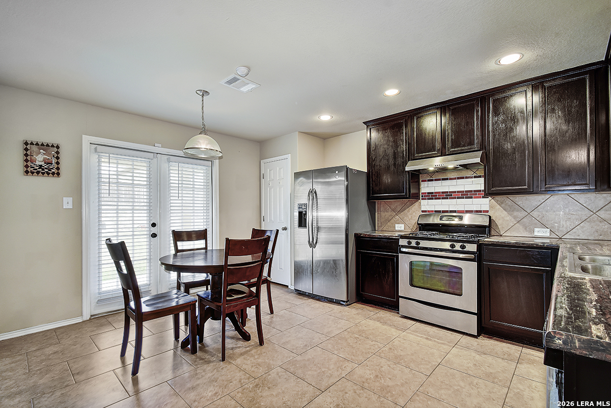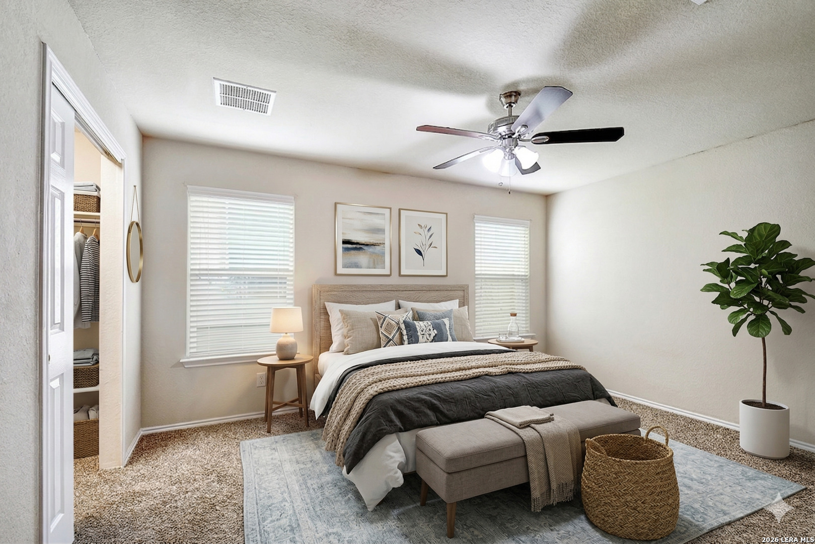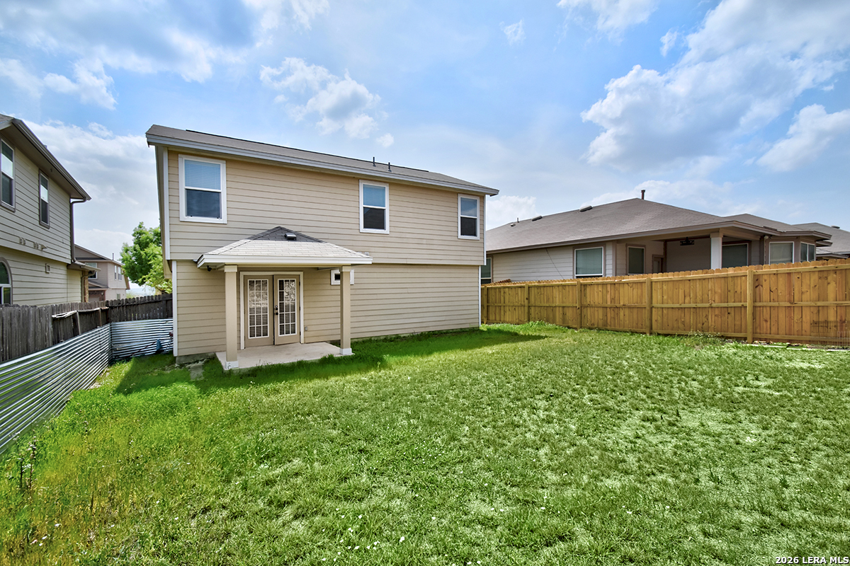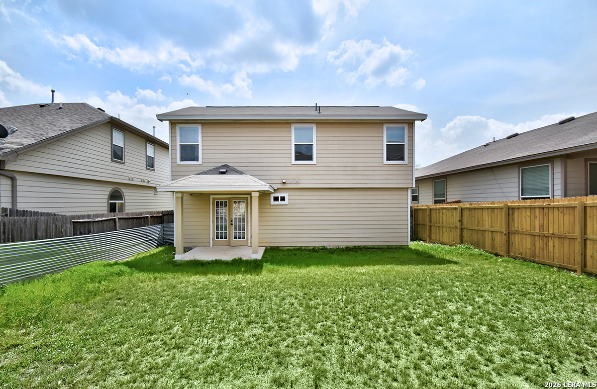 Welcome to 12207 Hamlin Creek, a charming two-story home in the gated community of Laura Heights offering the perfect blend of comfort, convenience, and value. With 1,595 square feet of living space on a .1149-acre lot, this 3-bedroom, 2.5-bath property is move-in ready and priced below BCAD assessed value. Step inside to discover an open floor plan with high ceilings and abundant natural light. The spacious kitchen features gas cooking, rich cabinetry, and ample counter space-complete with a refrigerator, washer, and dryer included. The living and dining area flow seamlessly together, creating a warm and inviting space for gatherings. The primary suite is conveniently located downstairs and includes a garden tub/shower combo, double vanity, and walk-in closet. Upstairs you'll find a versatile loft and secondary bedrooms offering privacy and comfort. Outdoors, enjoy a covered patio perfect for weekend barbecues and an enclosed aluminum fence for added privacy. Additional highlights include ceiling fans throughout, a two-car garage, and a stone facade for timeless curb appeal. Located outside city limits with no city taxes, residents enjoy community amenities such as a swimming pool, park, and playground. With nearby retail, dining, and the scenic Government Canyon State Park just minutes away, this home offers exceptional value and lifestyle in a prime location.