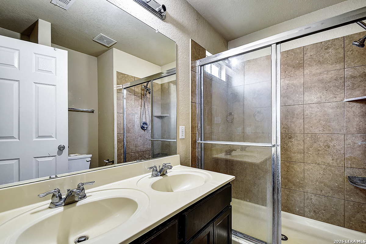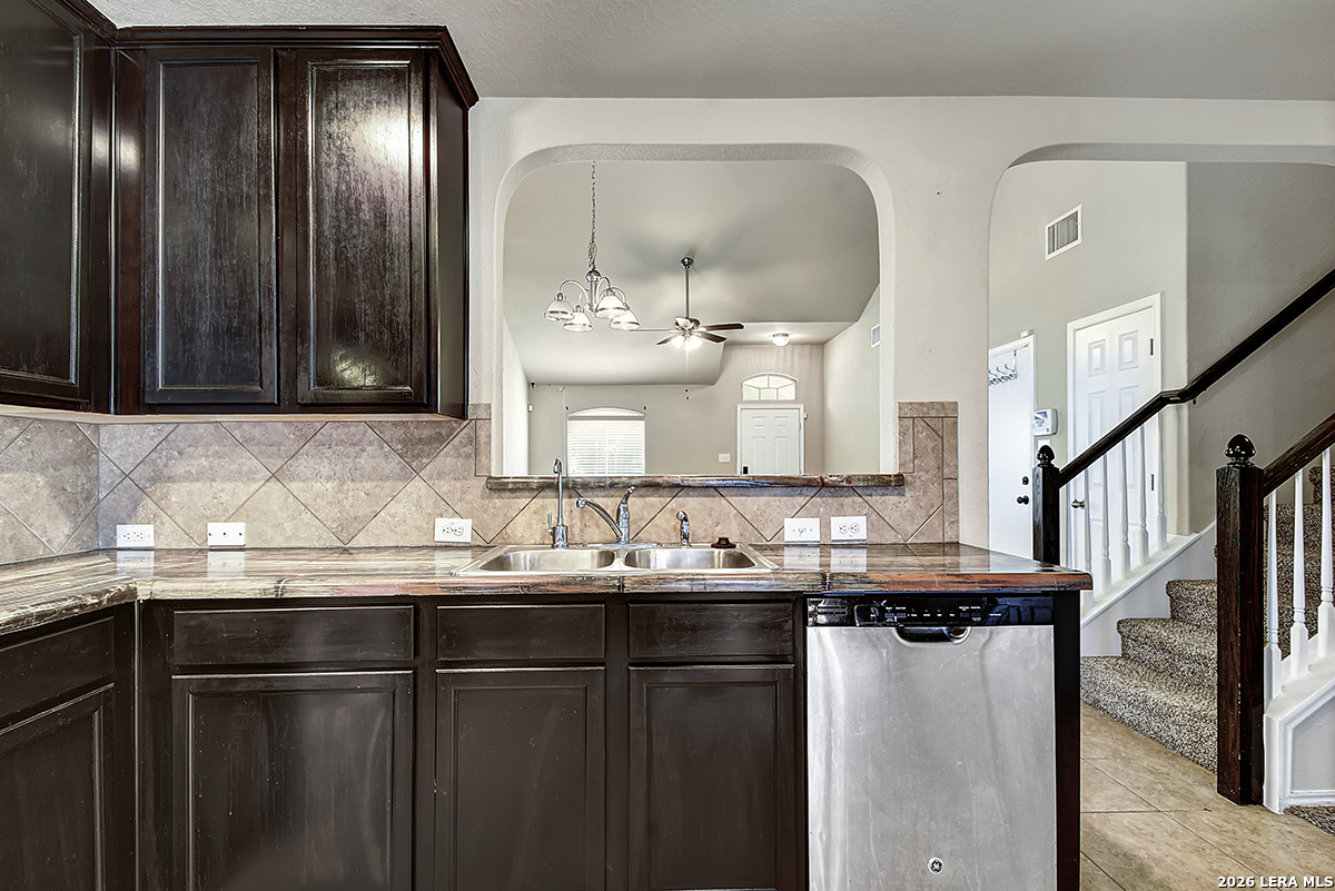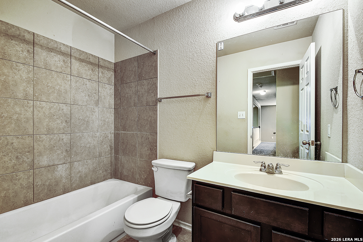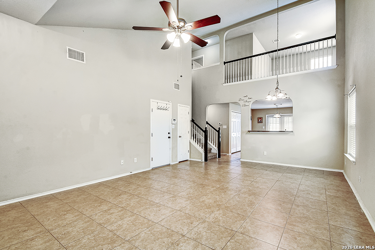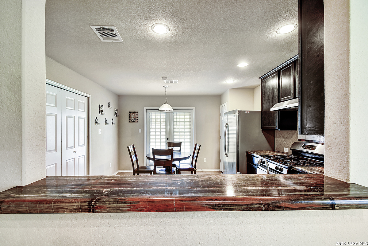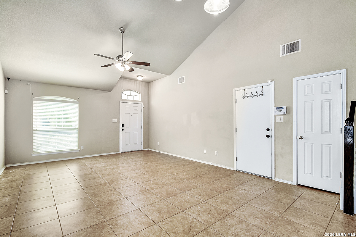 Welcome to 12207 Hamlin Creek, a charming two-story home in the gated community of Laura Heights offering the perfect blend of comfort, convenience, and value. With 1,595 square feet of living space on a .1149-acre lot, this 3-bedroom, 2.5-bath property is move-in ready and priced below BCAD assessed value. Step inside to discover an open floor plan with high ceilings and abundant natural light. The spacious kitchen features gas cooking, rich cabinetry, and ample counter space-complete with a refrigerator, washer, and dryer included. The living and dining area flow seamlessly together, creating a warm and inviting space for gatherings. The primary suite is conveniently located downstairs and includes a garden tub/shower combo, double vanity, and walk-in closet. Upstairs you'll find a versatile loft and secondary bedrooms offering privacy and comfort. Outdoors, enjoy a covered patio perfect for weekend barbecues and an enclosed aluminum fence for added privacy. Additional highlights include ceiling fans throughout, a two-car garage, and a stone facade for timeless curb appeal. Located outside city limits with no city taxes, residents enjoy community amenities such as a swimming pool, park, and playground. With nearby retail, dining, and the scenic Government Canyon State Park just minutes away, this home offers exceptional value and lifestyle in a prime location.