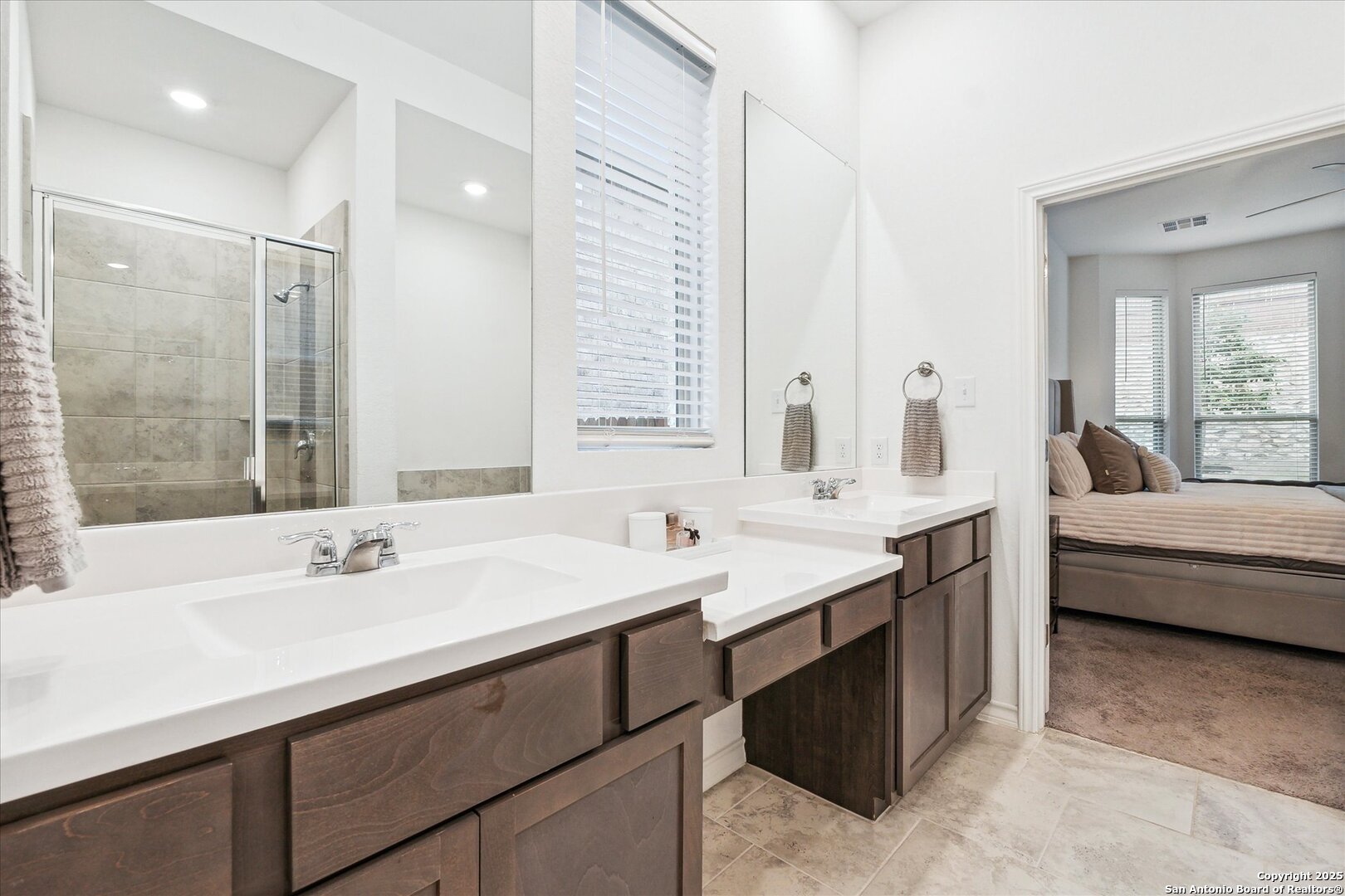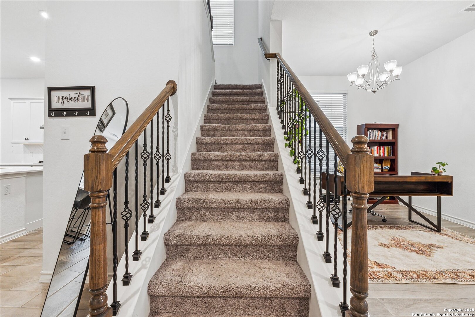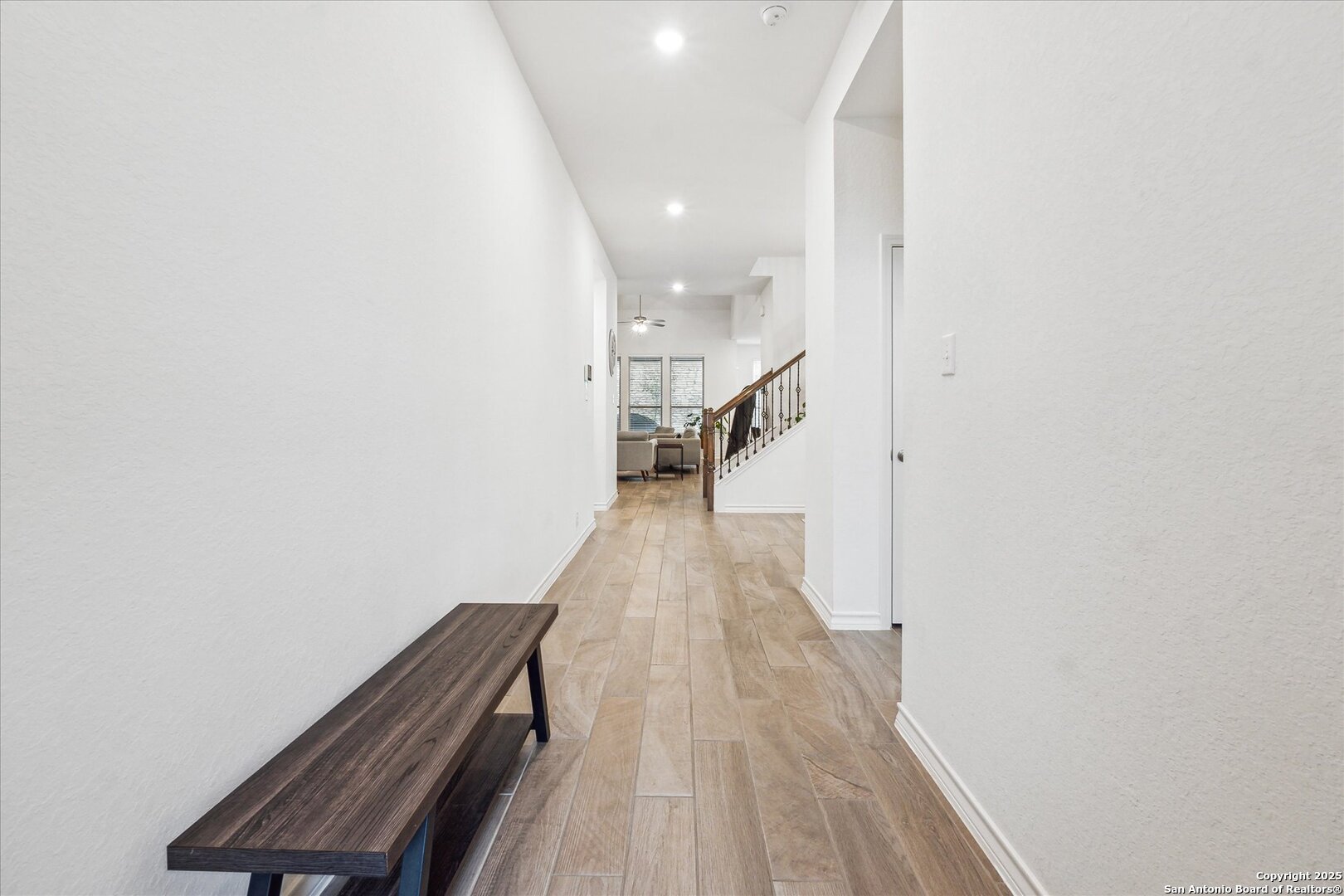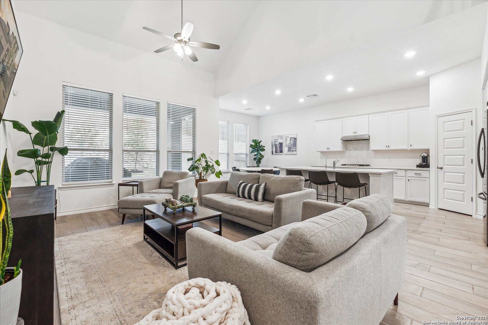 Welcome to this meticulously maintained Highland Home built in 2021! Move-in ready with fridge, washer, and dryer. Plus 2 tankless hot water heaters, 2 water softeners, and a reverse osmosis. This home's spacious floorplan has 5 bedrooms, and 4 full bathrooms. The main floor showcases soaring ceilings in the open-concept kitchen and living area with a separate formal dining room or flex office space. The expansive owner's suite boasts a peaceful retreat with a spa-like bathroom with a garden tub, separate walk-in shower, dual vanities, and a large walk-in closet. You'll also find a secondary bedroom and full bathroom on the first floor, perfect for a mother-in-law suite or guests. The covered back porch faces a beautiful stone wall, backing to an easement with no direct back neighbors! Venturing upstairs notice the elegant wrought iron railings overlooking the downstairs main living area. The second floor features 3 additional bedrooms, 2 full bathrooms, and a loft. One of the rooms being a mini-master suite with it's own on-suite bathroom and desk nook. Situated less than 1 mile from Loop 1604, this home offers easy access to shopping, dining, and multiple routes out of the neighborhood. Centrally located, get to Lackland AFB in 15 minutes, the La Cantera area in 20 minutes, and airport in 25 minutes. Don't miss out on this exceptional opportunity to own a luxury Highland Home at an amazing price!