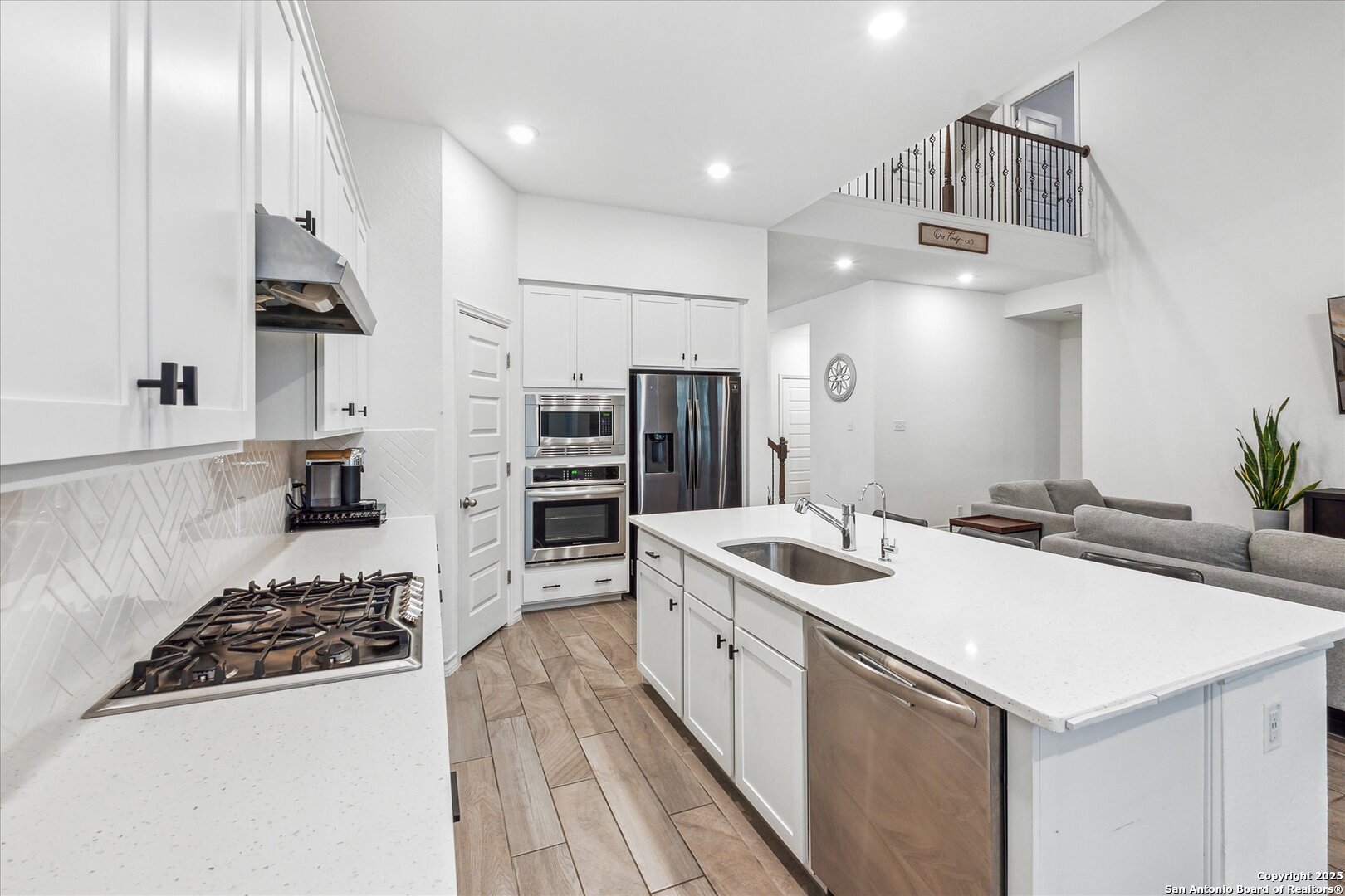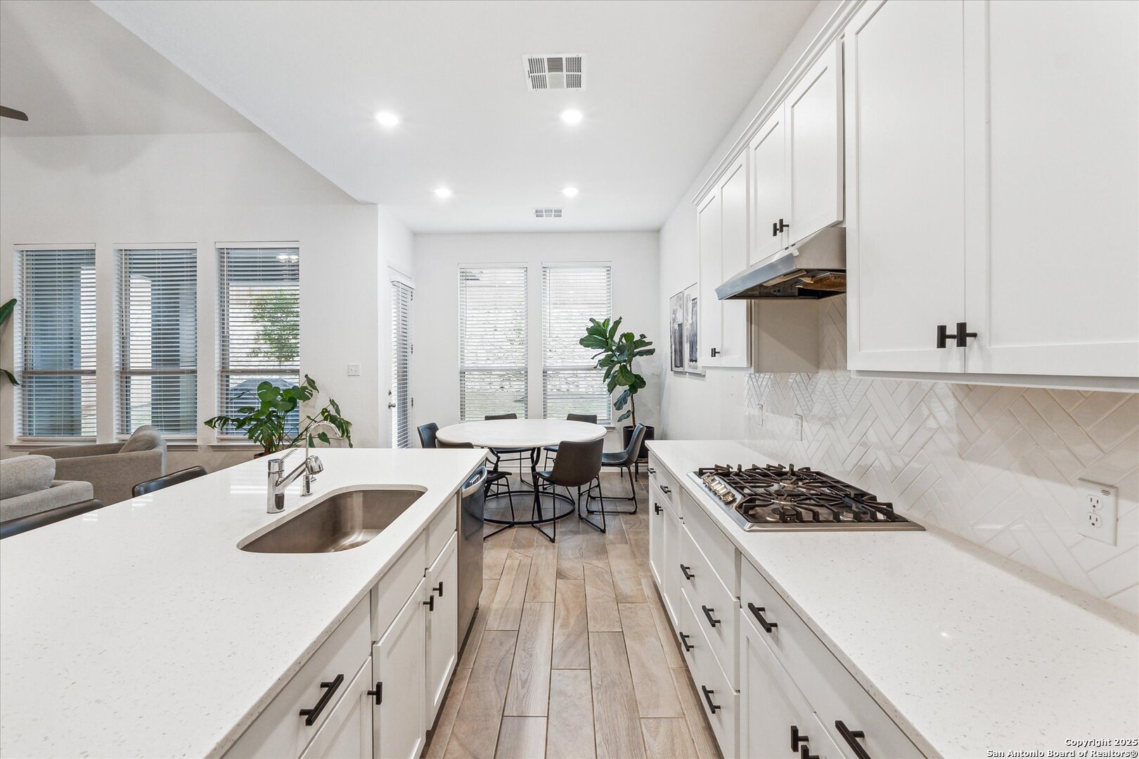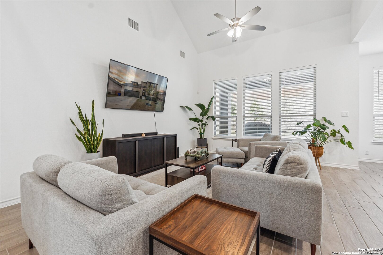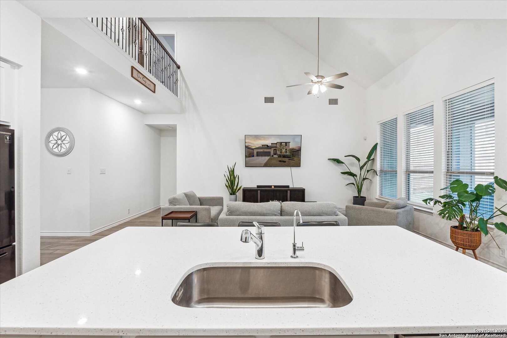 Welcome to this meticulously maintained Highland Home built in 2021! Move-in ready with fridge, washer, and dryer. Plus 2 tankless hot water heaters, 2 water softeners, and a reverse osmosis. This home's spacious floorplan has 5 bedrooms, and 4 full bathrooms. The main floor showcases soaring ceilings in the open-concept kitchen and living area with a separate formal dining room or flex office space. The expansive owner's suite boasts a peaceful retreat with a spa-like bathroom with a garden tub, separate walk-in shower, dual vanities, and a large walk-in closet. You'll also find a secondary bedroom and full bathroom on the first floor, perfect for a mother-in-law suite or guests. The covered back porch faces a beautiful stone wall, backing to an easement with no direct back neighbors! Venturing upstairs notice the elegant wrought iron railings overlooking the downstairs main living area. The second floor features 3 additional bedrooms, 2 full bathrooms, and a loft. One of the rooms being a mini-master suite with it's own on-suite bathroom and desk nook. Situated less than 1 mile from Loop 1604, this home offers easy access to shopping, dining, and multiple routes out of the neighborhood. Centrally located, get to Lackland AFB in 15 minutes, the La Cantera area in 20 minutes, and airport in 25 minutes. Don't miss out on this exceptional opportunity to own a luxury Highland Home at an amazing price!