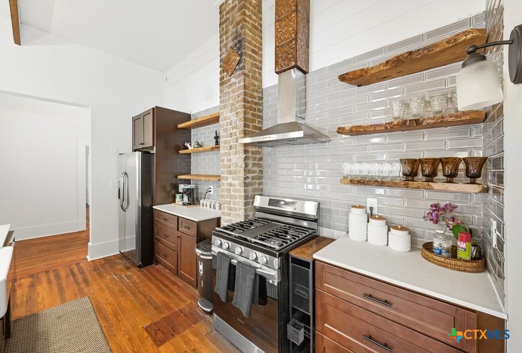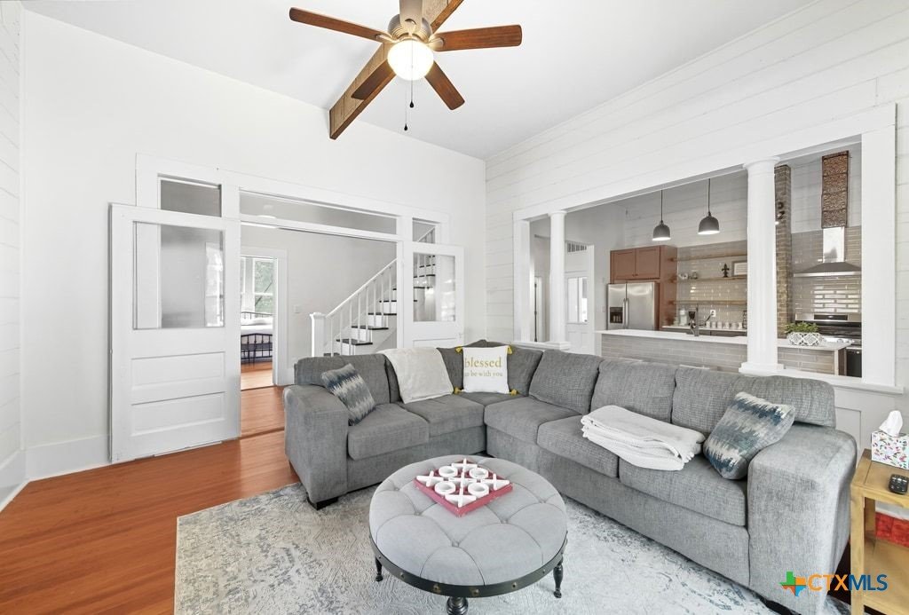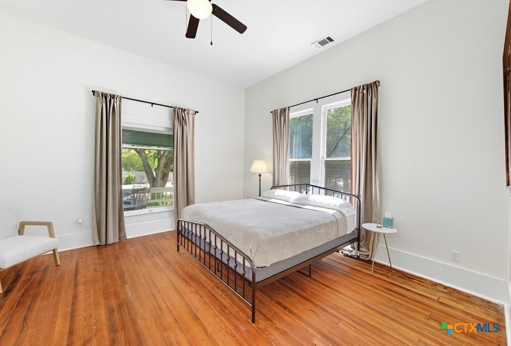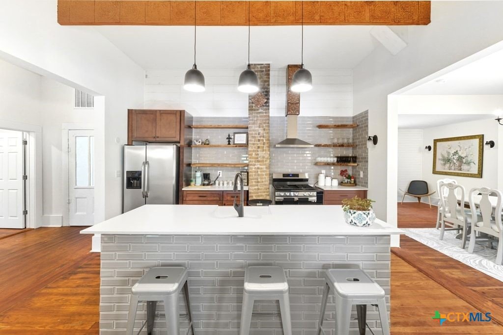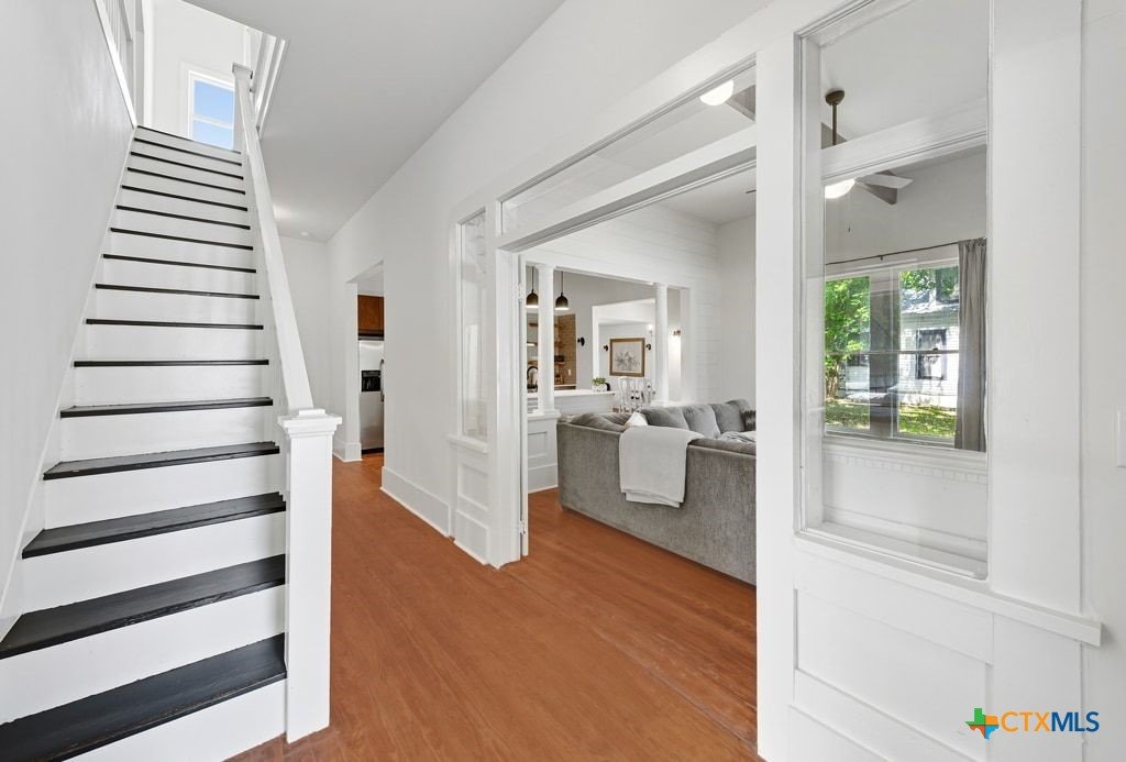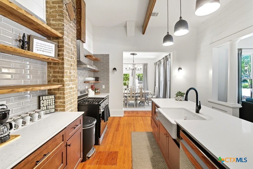 Timeless 1920s character meets thoughtful modern updates in this spacious 4BD/3.5BA home in one of San Marcos’ most established neighborhoods. Offering over 3,000 sq ft of living space on a 0.33-acre lot, this two-story Craftsman residence features original hardwood floors, high ceilings with wood beams, custom trim, and French doors throughout. The main level includes two ensuite bedrooms, while the upper floor offers two more bedrooms and a large shared bath—ideal for multi-generational living or flexible use. The remodeled kitchen includes quartz countertops, stainless appliances, a butler’s pantry, and a built-in coffee station. Outdoor areas include a large covered porch with fans and lighting, a tree-shaded backyard with raised garden beds, and space for hobby farming or entertaining. Located minutes from Texas State University, downtown San Marcos, and the San Marcos River, this property offers easy access to schools, parks, restaurants, and commuter routes. A rare opportunity to own a historic home with room to grow in the heart of San Marcos.
