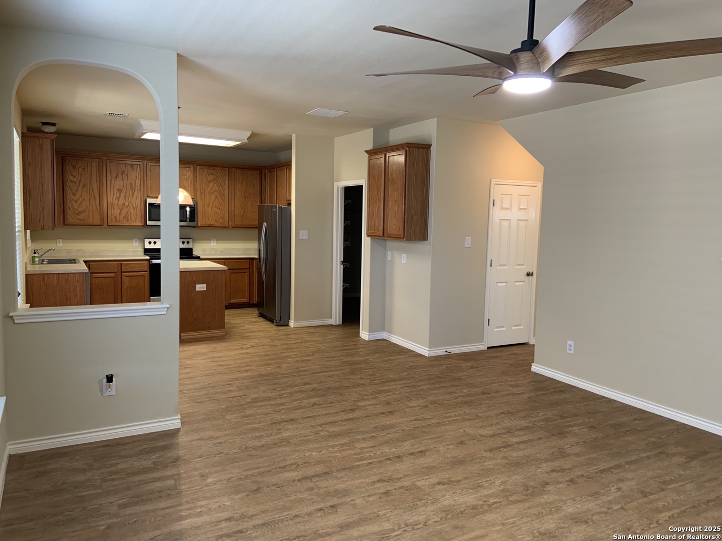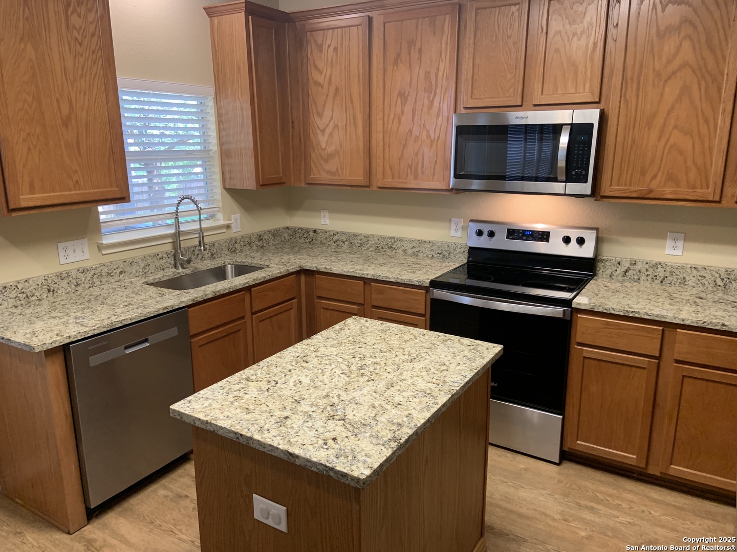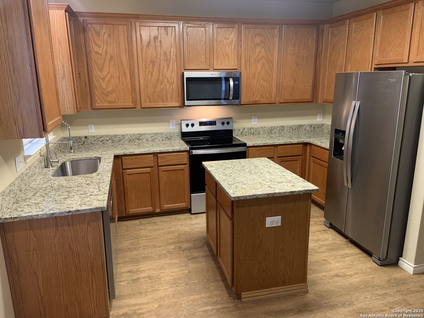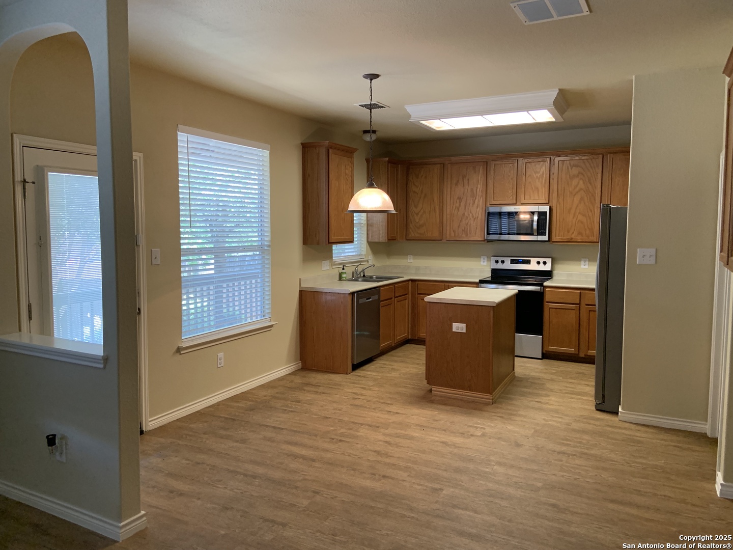 Welcome to 12227 Eden Mill-a beautifully refreshed home with thoughtful updates throughout. Enjoy an open, light-filled layout with soaring ceilings, arched entryways, and a dramatic foyer that opens to the second story. The flexible floor plan offers a spacious upstairs family room, ideal for a second living area, game room, or home office. The kitchen features NEW stainless-steel appliances, granite counters with undermount sink, 42" upper cabinets, and a center island with electric. All bathrooms boast new solid-surface countertops and updated faucets. Fresh interior and exterior paint add to the crisp, move-in-ready feel. Step outside to a covered porch and oversized open deck-perfect for entertaining. Lease includes access to HOA amenities: pool, park, playground, and pavilion-all just minutes from home. Located in a sought-after community with convenient access to NISD schools, shopping, Loop 1604, and Highway 151.