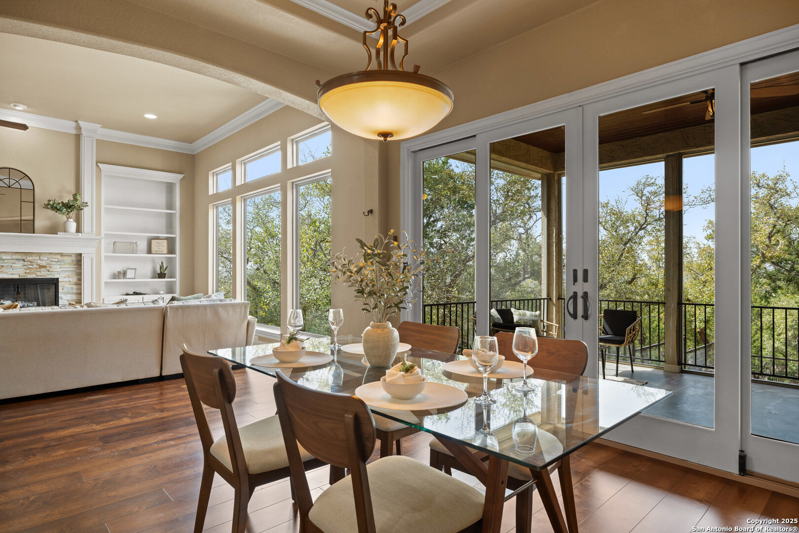 Timberwood Park is the luxurious and serene hill country community you're looking for! The drive up "Silent Hollow" is where you'll find million dollar homes and M i l l i o n Dollar V I E W S. Perched along the rolling landscape of Timberwood Park, 1223 Silent Hollow is more than a home-it's an experience. A sanctuary of sophistication, this immaculate home blends modern luxury with timeless charm, offering an unparalleled living experience. From the moment you arrive, the drive home becomes a retreat in itself, winding through the picturesque hill country, leading to this architectural masterpiece. Step inside, and you're greeted by soaring high ceilings, accentuated by stunning tray designs that add depth and grandeur to every room. Expansive picture windows frame breathtaking, tree-lined views, bringing the beauty of nature indoors. The heart of the home is a chef's dream-an exquisite gourmet kitchen featuring gas cooking, high-end appliances, and ample cabinetry. Seamlessly connected to the living space, it overlooks a warm and inviting fireplace, creating the perfect ambiance for entertaining or quiet evenings in. Each bedroom is a private retreat, complete with its own en-suite bath, ensuring comfort and privacy for all. Thoughtfully designed built-ins add character and functionality throughout the home, while the Texas-sized screened-in porch offers a seamless transition between indoor elegance and outdoor tranquility. Step outside to discover an entertainer's paradise. The fully equipped outdoor kitchen invites al fresco dining with a backdrop of mature trees and neighborhood deer. Whether hosting guests or simply savoring a quiet morning coffee, this space embodies the essence of luxury living. Every detail of this extraordinary home has been designed with a flexibility and comfort in mind. At 1223 Silent Hollow, life isn't just lived-it's elevated! ["With a non-annexation agreement in place, we have no city property taxes into 2032!" - Direct from HOA]