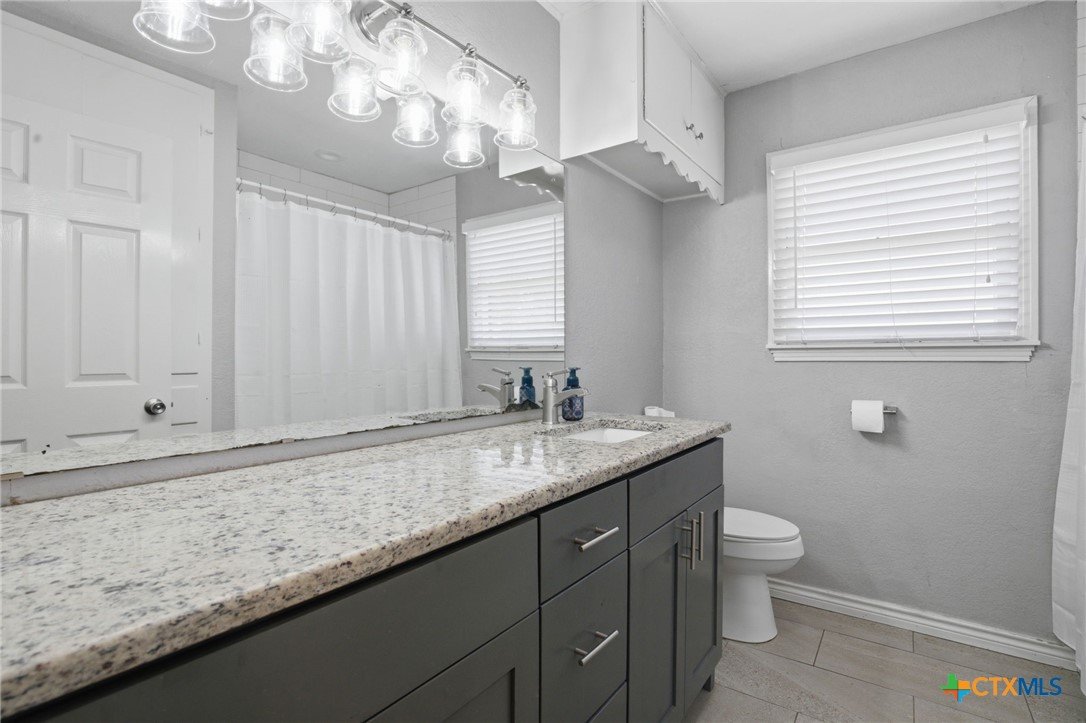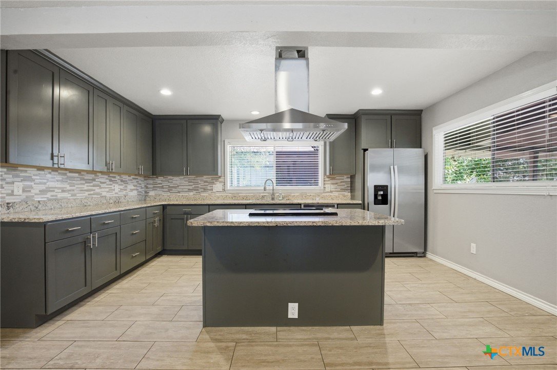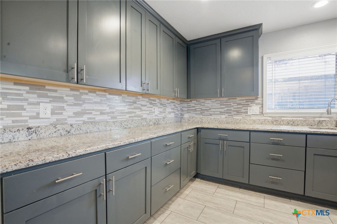 Don't miss this gem in the heart of New Braunfels! This charming 1,960 sqft home features 3 bedrooms and 2 full bathrooms, a 2 car carport, and a versatile 400 sqft covered patio and fantastic patio on a large corner lot. Classically redone to preserve its original charm, this home boasts an updated kitchen with granite counter tops, soft close custom cabinetry, stylish tile back splash with modern Whirlpool stainless steel appliances. The open living and dining area flows seamlessly! The covered patio offers endless potential for relaxation and entertaining. Additional features include a sprinkler system, updated plumbing and wiring and a fantastic outdoor storage building! 1225 Unicorn Ave is a rare find positioned minutes from H-E-B, restaurants, downtown and shopping!
