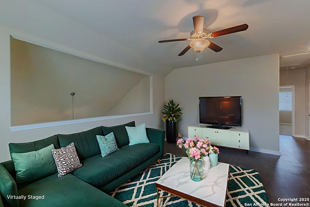 Tucked into a quiet, walkable neighborhood in New Braunfels, 1226 Hidden Cave offers the perfect blend of warmth, space, and smart design-featuring a primary suite on the main floor and a guest suite upstairs, ideal for flexible living arrangements. From the moment you walk in, you're welcomed by soaring ceilings, an abundance of natural light from double-hung windows, and updated waterproof hardwood-style flooring that adds both beauty and durability. The open-concept kitchen with a gas stove flows effortlessly into spacious living areas, complete with custom built-ins and views of the freshly landscaped backyard with private easement access. Imagine sipping your morning coffee on a neighborhood stroll, then returning home to work or relax in one of the multiple living or flex spaces tailored to your lifestyle. This home ensures comfort and convenience from day one. Enjoy peace of mind and financial perks with a 3.125 VA assumable loan (for qualified buyers) and a lender credit when using the seller's preferred lender. With .206 acres, thoughtful upgrades, and timeless curb appeal, this home invites you to settle in and stay awhile-don't miss your chance to make it yours.
