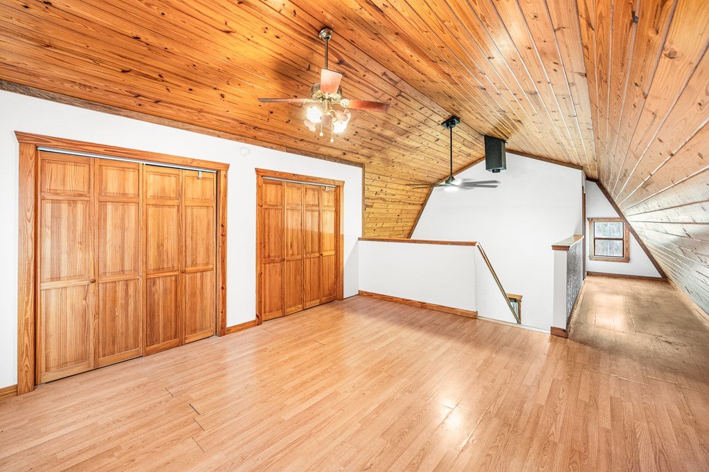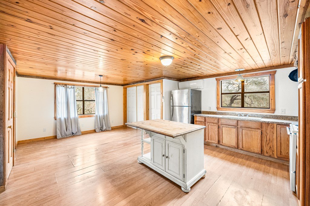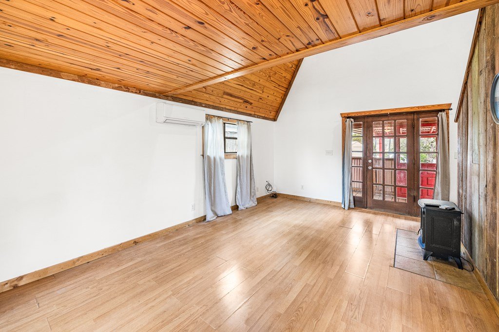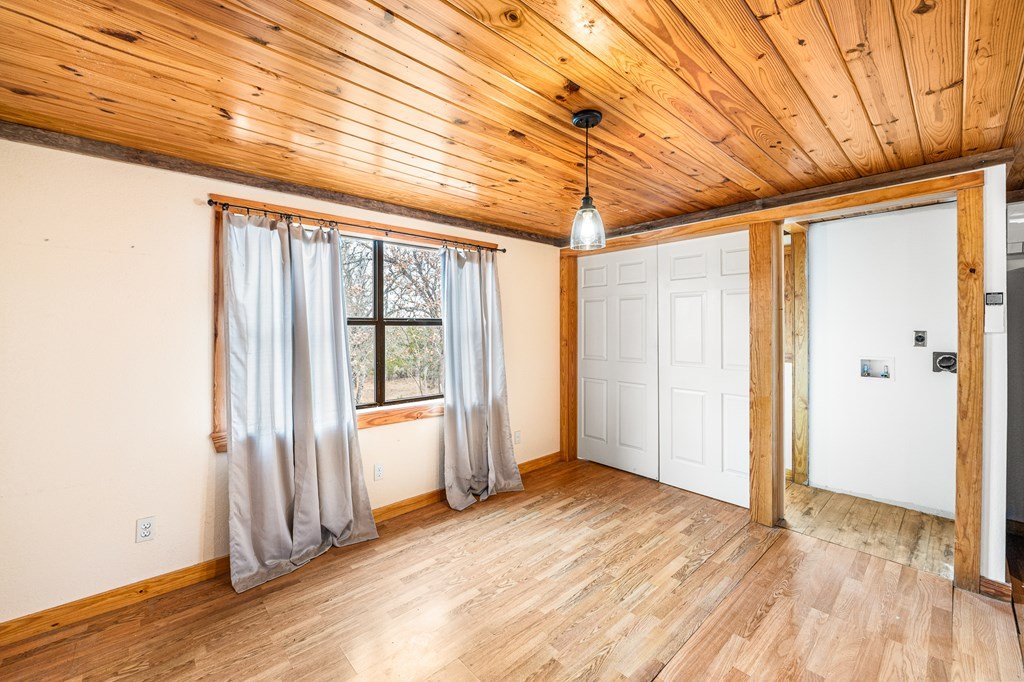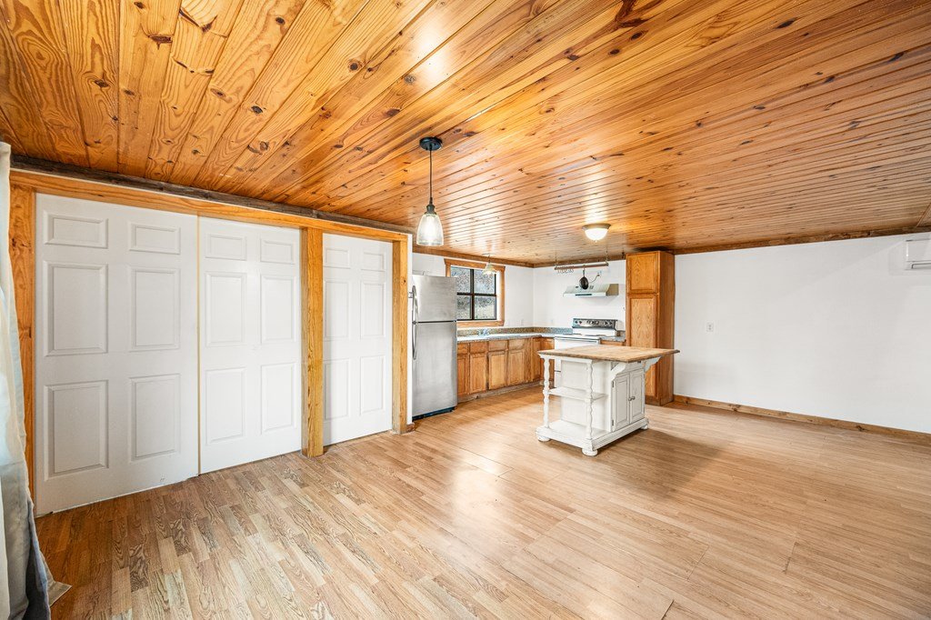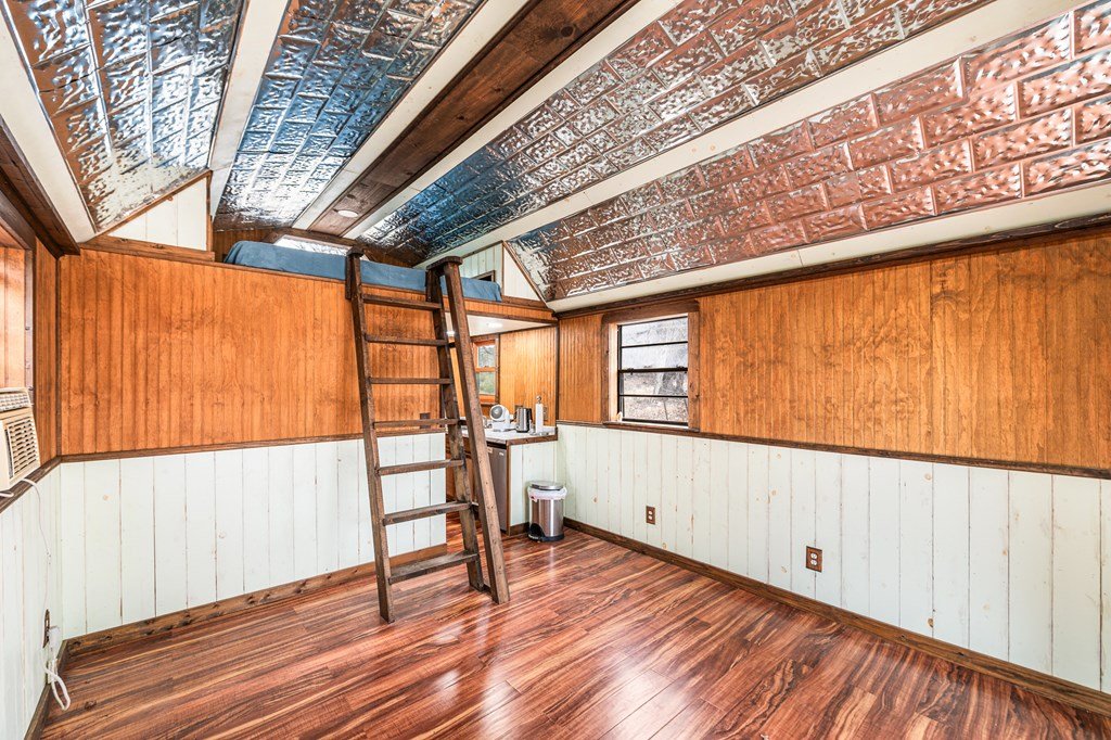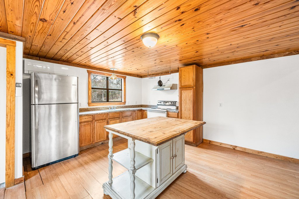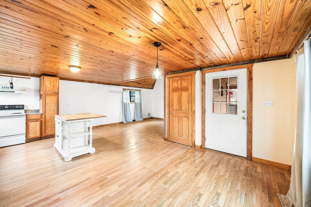 This property offers approximately nine acres of land with two one-bedroom, one-bath cabins. One of the cabins features a lovely front porch. There's also a storage shed, an old barn, and a garden. The property is rich with wildlife and offers privacy since it's set back from the road. Additionally, there is a well that is approximately 600 feet deep, and the property has no restrictions. This would be a fantastic weekend getaway, perfect for someone looking to escape the city and enjoy some peace and nature.