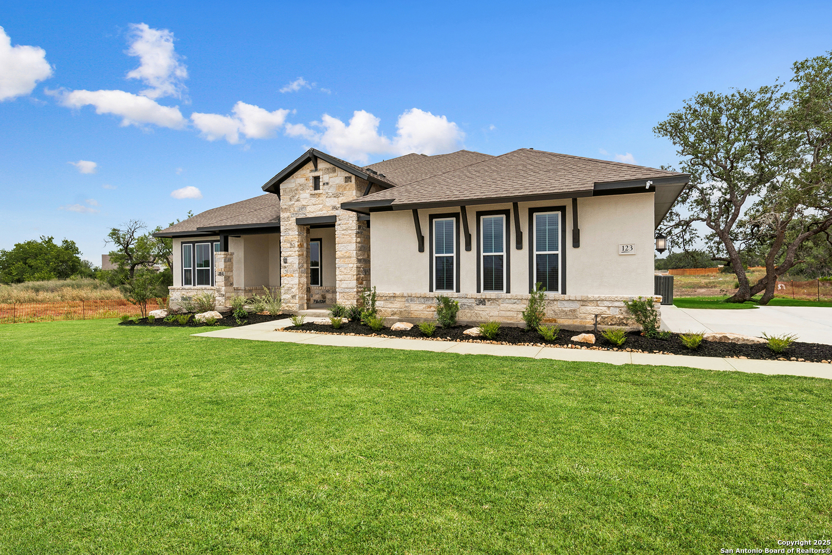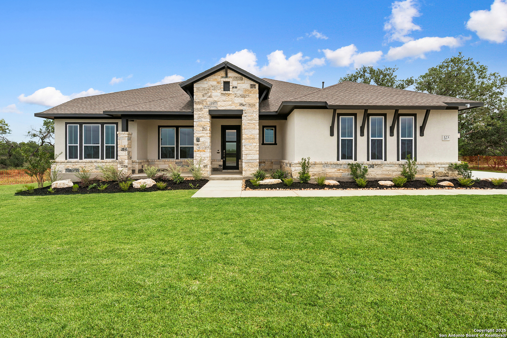 Welcome home to the beautiful 1.5-story new home now available in Megan's Landing! Birthday cakes, pristine dinners, and shared memories of holiday meal prep all begin in the tasteful kitchen, complete with a gas cooktop, double ovens, cabinets to the ceiling, spacious walk-in pantry and unique coffee/wine bar area. Each spare bedroom provides plenty of personal space and a wonderful place to grow. The Guest Suite is perfect for multi-gen and weekend guests alike, with its walk-in shower and spacious closet. The covered outdoor gathering areas offer a great way to enjoy quiet evenings and fun-filled weekends. The enclosed front study is the perfect office or private library, while the large upstairs Bonus Room with full bath creates a sensational spot for movie nights or a pool table. The Owner's Retreat presents a superb way to rest and refresh at the end of each day with a luxurious en suite bathroom. The walk-in shower in enhanced with a rainfall showerhead and the relaxing stand-alone tub provides relaxation and timeless glamour. Elegant 8' interior doors add drama and sliding glass doors in the family room allow an uninterrupted view of the backyard. Create lifelong memories together in the open-concept living spaces and make yourself at home in Megan's Landing!