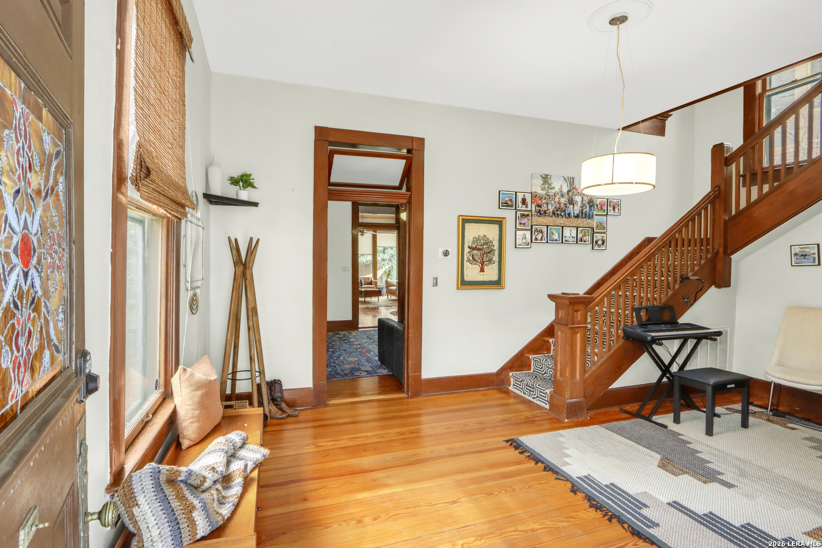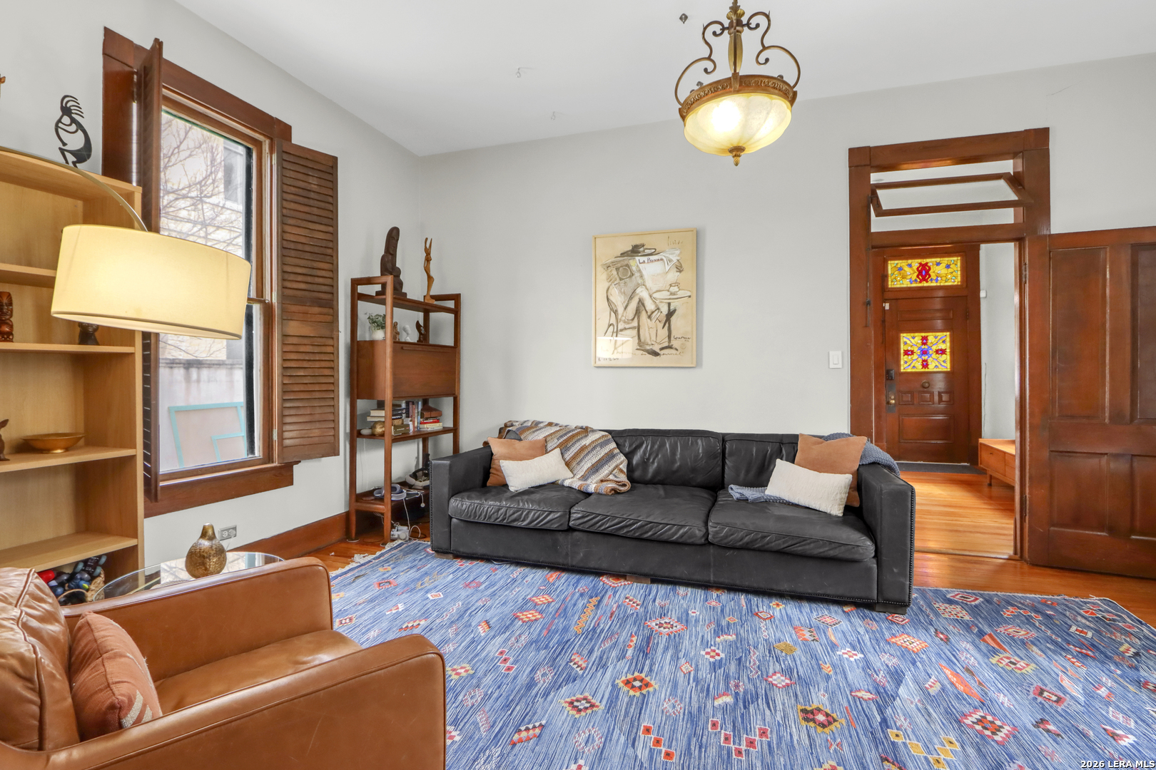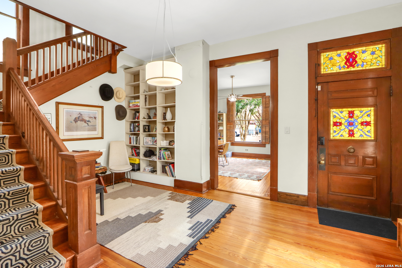 Built in 1905 for a relative of King William, resident Hugo Griesenbeck, who lived just to the right, this striking Victorian holds a meaningful place in the neighborhood's story. It's even said to sit beside the oldest home in the district. The original millwork is captivating-intricate, purposeful, and remarkably intact. Rich hardwood floors extend throughout, anchoring the interior in character and heritage. Modest in scale from the street, the home opens into airy ceilings, well-proportioned rooms, and a personality that feels both vibrant and welcoming. The entry sets the tone immediately, offering a gracious introduction each time guests arrive. The front foyer, complete with staircase and built-in shelving, carries the presence of a classic study; distinguished yet comfortable. It's a first impression that feels both refined and timeless. At the rear of the home, the family room is lined with windows that invite in soft daylight and frame views of the backyard. It's a space that naturally encourages you to linger. Nearby, you'll find a full bath with shower and a laundry room that smartly serves double duty as a pantry. Just beyond the back steps, curated landscaping, a paver patio, established trees, and a pergola create an outdoor setting ready to become whatever you envision. Upstairs offers three bedrooms. One featuring an ensuite bath and private balcony, another with its own balcony retreat. Two full baths serve the second level, including one with the timeless clawfoot tub so often cherished in historic residences. Off-street parking accommodates two vehicles in the driveway, with additional room available behind the side gate extending into the backyard; an uncommon convenience for homes of this era. Here, downtown living truly means walkability, with restaurants, cafes, and everyday destinations just steps away. This is more than a Victorian showpiece. It's a tangible chapter of San Antonio's past-offering connection, charm, and a story ready for its next steward.