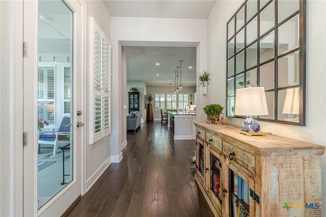 This home really sets itself apart with total comfort and peace present from the moment you walk in the door! The outside of this home provides excellent outdoor living with it's two generous covered porch areas - with the sunroom located uniquely at side of the home, facing the open park/greenbelt area across the street and the oversized back covered patio with retractable screens. Truly a home that expands your best living options with these creative relaxation spaces. The large island kitchen with beautiful black granite counters make this a classic look and serves as the hub of the home on this floor plan; the family room and dining room creating a large expansive spot for friends and family to gather. The dining room has a beautiful dry bar perfect for the times you are entertaining. The guest bedroom/bathroom sits at the opposite end of the home from the main bedroom for maximum privacy. Note the glass double door study offset from the front entry hall - making this a great flex space to use as a study, den or 3rd bedroom. The main bedroom suite offers a large closet with custom built ins throughout the space. The gorgeous main bathroom with large seamless shower gives a true classic vibe to complete the main bedroom space. This home checks all the boxes and offers numerous extras. Call for your private showing!