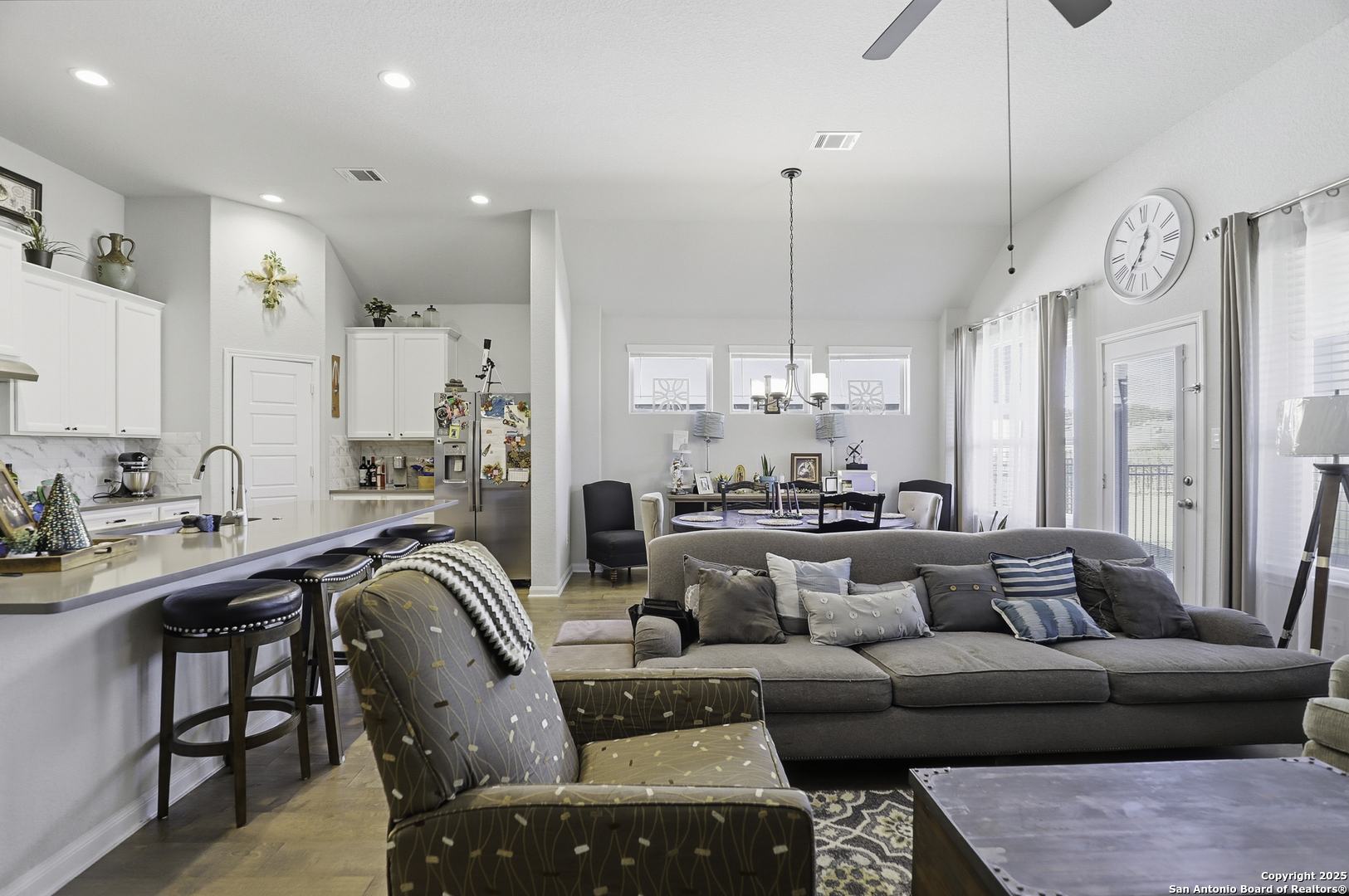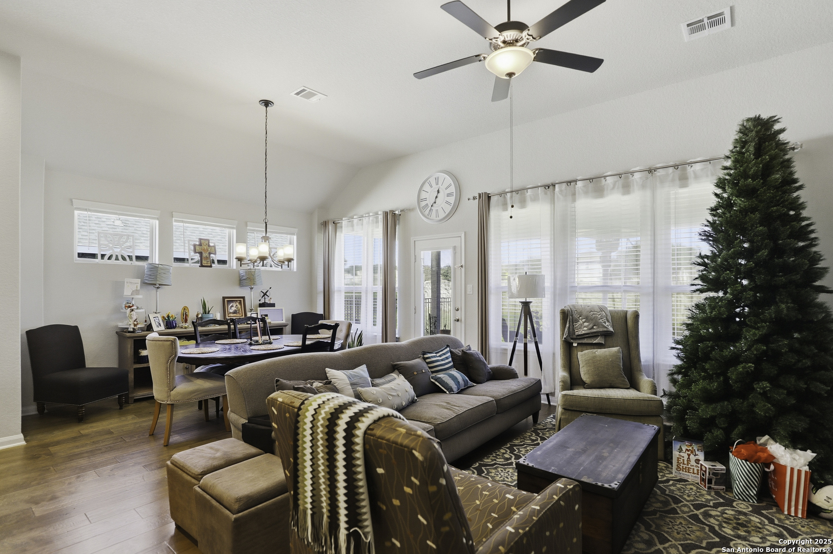 Step into refined Texas Hill Country living in this beautifully maintained home, located in Esperanza's newest and most desirable community in Boerne. This 4-bedroom, 3-bathroom residence includes a study and a spacious game room, featuring high ceilings and an open floor plan that creates an inviting, comfortable atmosphere. The living room flows seamlessly into the open kitchen and breakfast area, making it perfect for everyday living and entertaining. Residents enjoy exceptional amenities, including a modern gym, lazy river, community pool, scenic walking trails, parks, and sports courts. Families also benefit from being within walking distance of the neighborhood elementary school. This home offers unmatched convenience: HEB Plus is just 7 minutes away, and downtown Boerne is only 5 minutes from your doorstep, providing quick access to restaurants, boutiques, and local events. Experience the best of Esperanza living-schedule your showing today.
