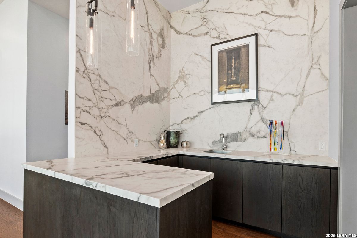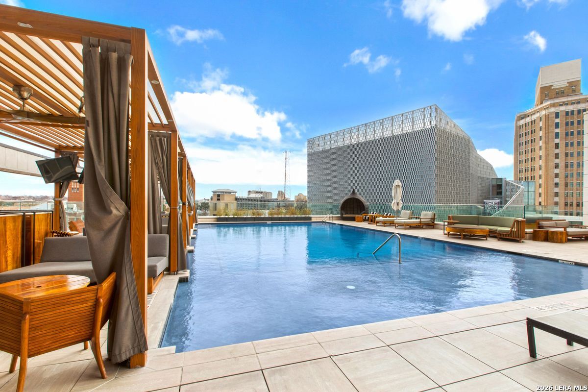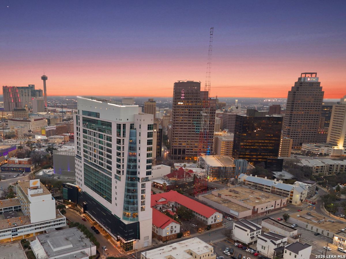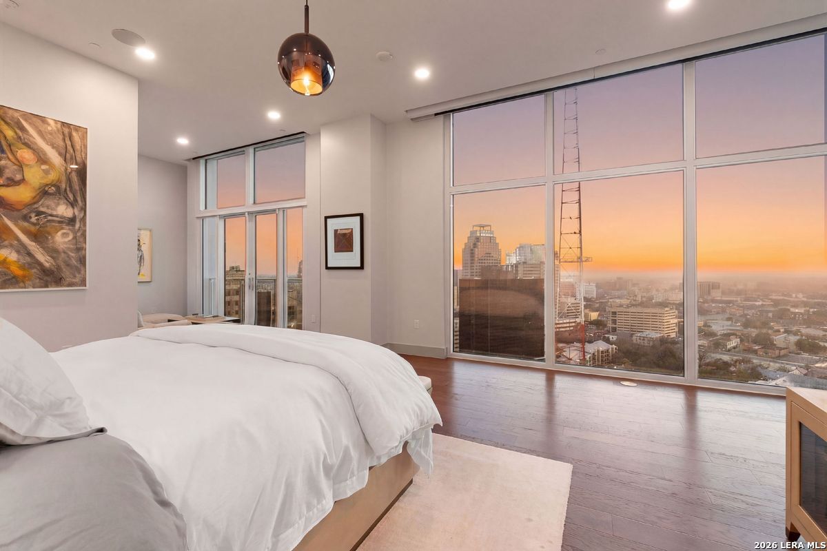 Rising above the city on the 18th and 19th floors of The Arts Residences at the Thompson Hotel, this remarkable penthouse delivers a level of scale, design, and exclusivity rarely encountered in San Antonio. Spanning approximately 5,676 square feet, the residence offers a sophisticated interpretation of modern penthouse living, with striking architecture, refined finishes, and sweeping skyline views. Floor-to-ceiling glass walls frame the city, filling the home with natural light and showcasing breathtaking views of the skyline. Expansive living and entertaining spaces unfold beneath soaring ceilings, creating a sense of openness and quiet grandeur that is both impressive and inviting. The chef's kitchen serves as both a functional workspace and a design centerpiece. Outfitted with sleek Italian Pedini cabinetry and a full suite of precision-crafted Gaggenau appliances, the space is anchored by an oversized island designed for both intimate gatherings and elegant entertaining. The owner's suite is a true retreat, thoughtfully positioned to maximize privacy and views. A gracious sitting area provides a quiet escape above the city, while dual spa-like bathrooms elevate the experience with a sense of indulgence typically reserved for luxury resorts. The residence offers three generously proportioned bedrooms with ensuite bathrooms, two powder bathrooms, a private office, and a dedicated media room designed for cinematic evenings at home. Each space has been carefully designed to strike a balance between comfort and elevated style. A particularly rare offering within a luxury high-rise, the penthouse includes its own private enclosed three-car garage, providing an exceptional level of privacy and convenience rarely available in urban living. Ownership also grants privileged access to the full collection of five-star services and amenities at the Thompson Hotel. Residents enjoy 24-hour concierge and valet service, in-residence dining, a resort-style rooftop pool with cabanas, and a world-class spa complete with steam and sauna, with the option for private in-home treatments. Moments from the residence, the city's cultural heartbeat awaits, including performances at the acclaimed Tobin Center for the Performing Arts and vibrant dining along the iconic San Antonio River Walk. Residents can enjoy acclaimed dining or sunset cocktails overlooking the skyline at The Moon's Daughters. Bold in scale yet refined in every detail, this penthouse represents a rare opportunity to own one of the most distinguished residences in the city, where luxury living meets world-class hospitality in one of downtown's most coveted addresses.