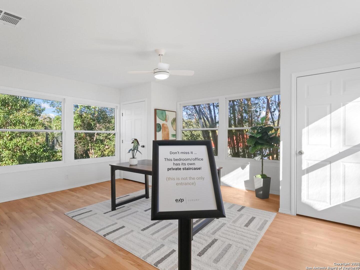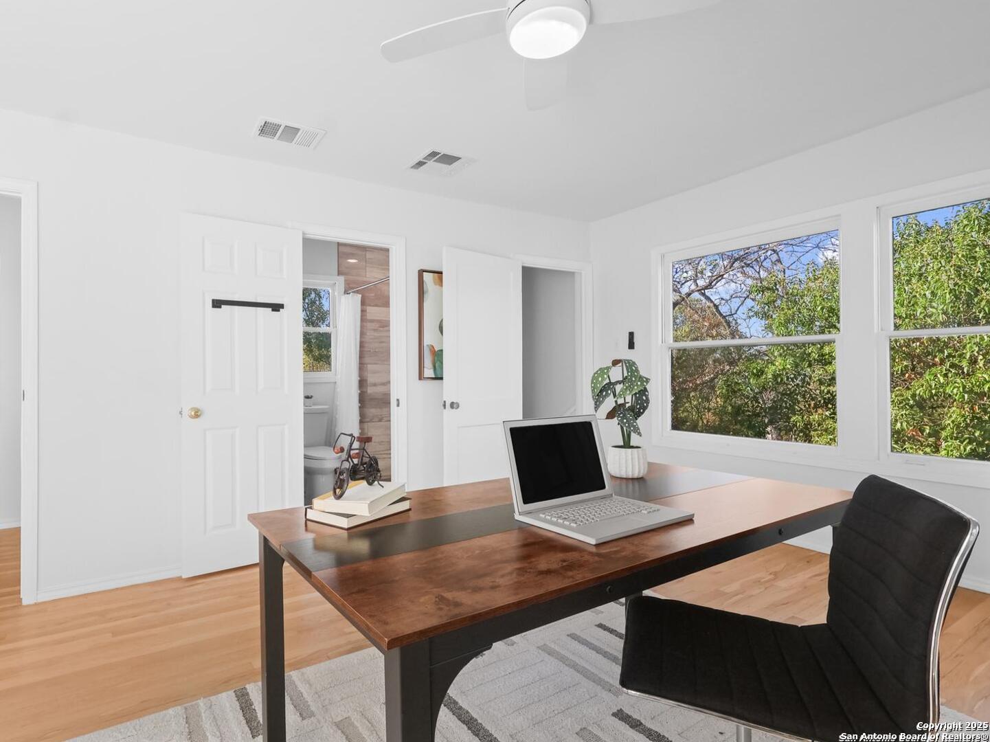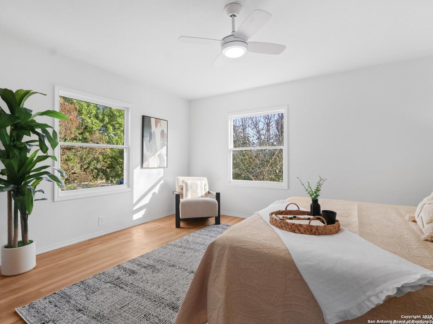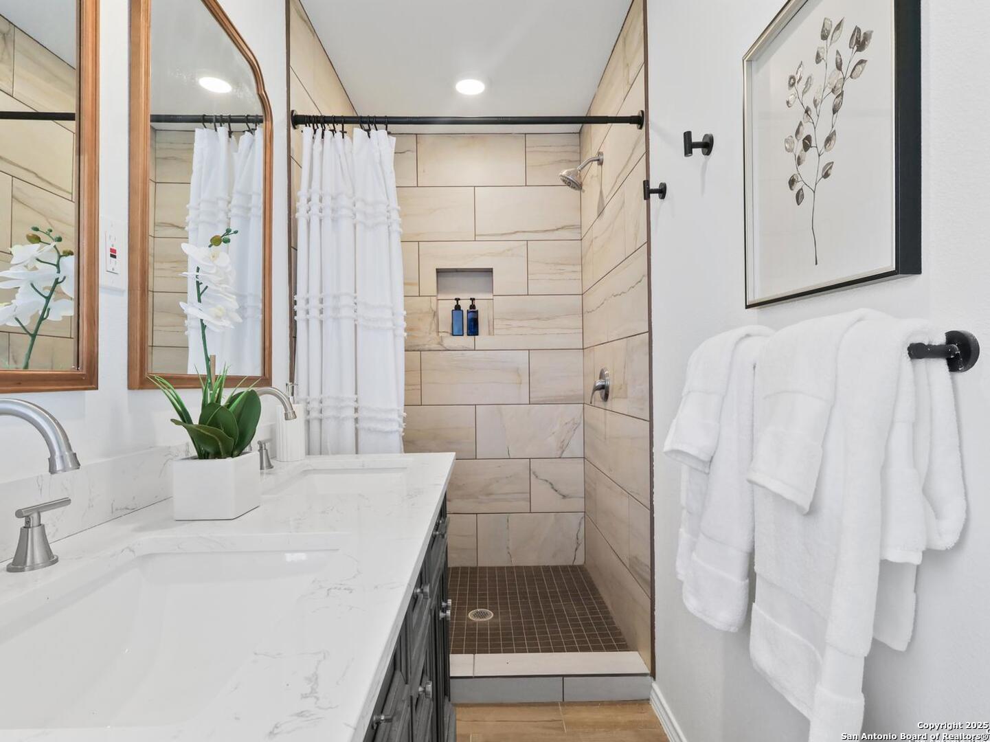 Discover the charm of Olmos Park Terrace in this beautifully updated home at 123 W. Mandalay. Blending classic 1930s character with modern comfort, this residence features original hardwood floors on both levels, abundant windows that fill every room with natural light, and a thoughtful layout with two large living spaces plus a separate formal dining room. Each of the three extra-large bedrooms is en suite with totally renovated bathrooms. The third bedroom is so very versatile, with its own private staircase - perfect for guests, multigenerational living, or a private office retreat. Downstairs, the remodeled kitchen brings contemporary ease to this timeless home. Behind the scenes, the work has already been done: two new high-efficiency HVAC units and recent foundation leveling provide peace of mind. Set on a generous lot with a bamboo-lined fence, the property delivers exceptional privacy in the heart of the city. Living in Olmos Park Terrace offers a highly walkable, tree-lined lifestyle with quick access to local cafes, parks, cultural venues, and some of San Antonio's most beloved dining districts. It's a close-knit neighborhood that blends quiet residential streets with unbeatable urban convenience - an ideal setting for those who value character, community, and connectivity.