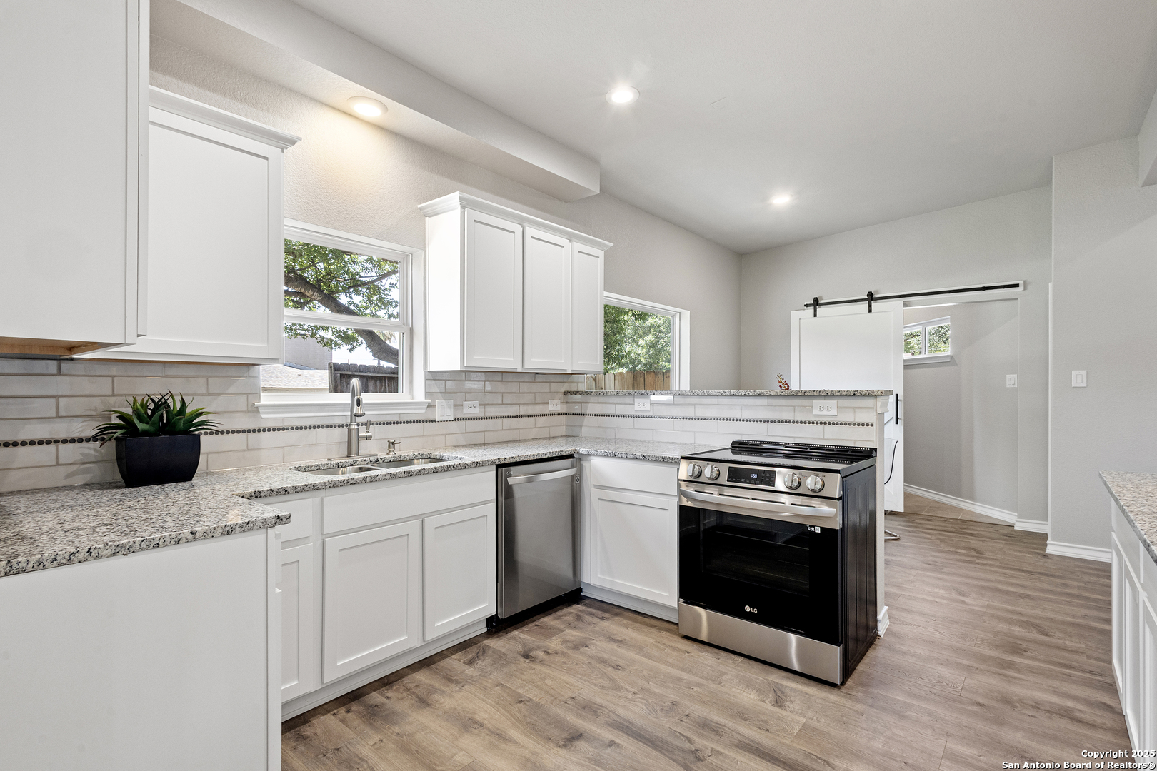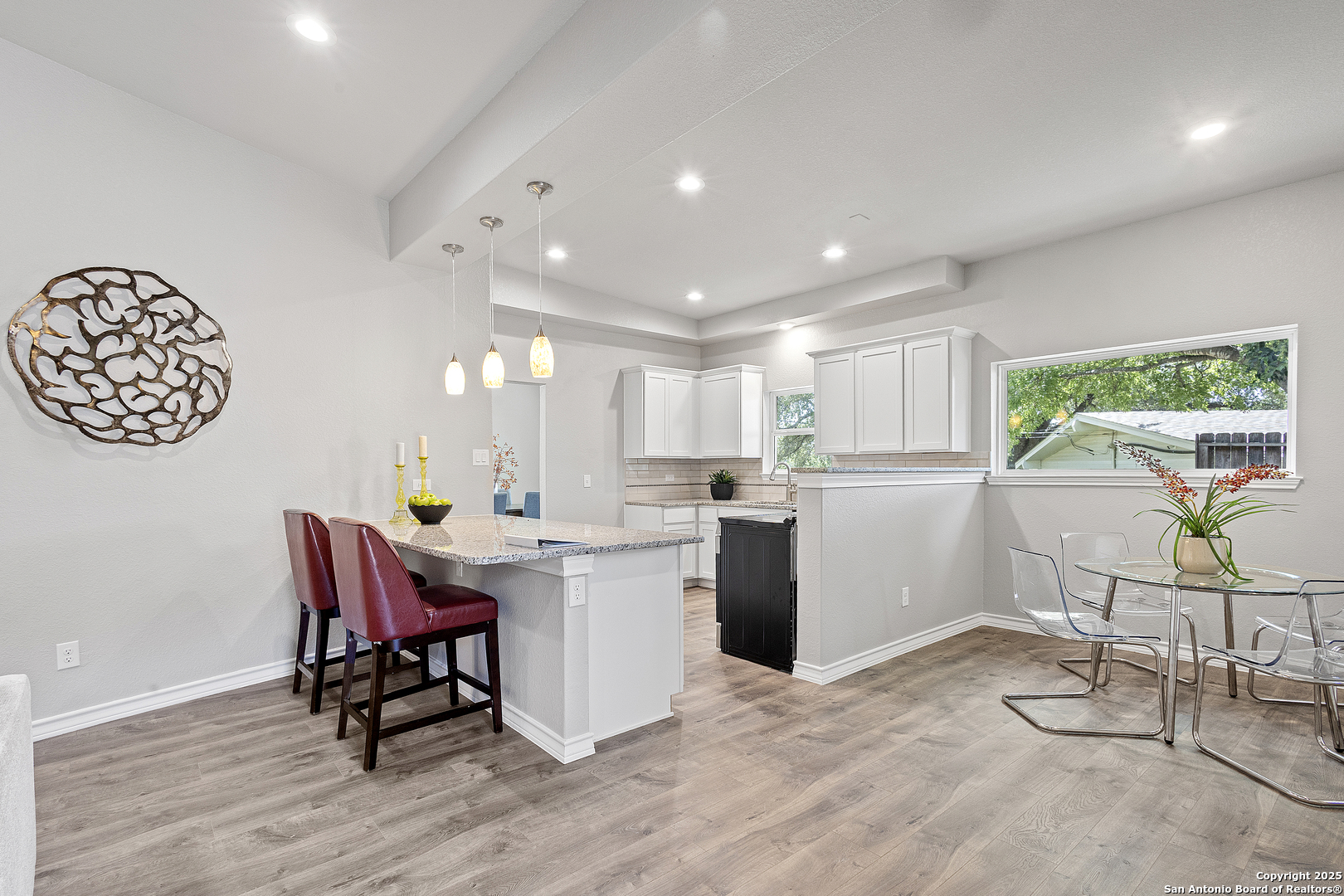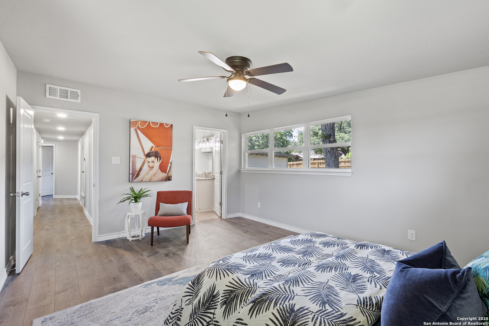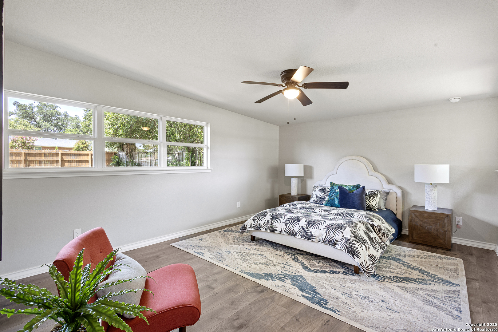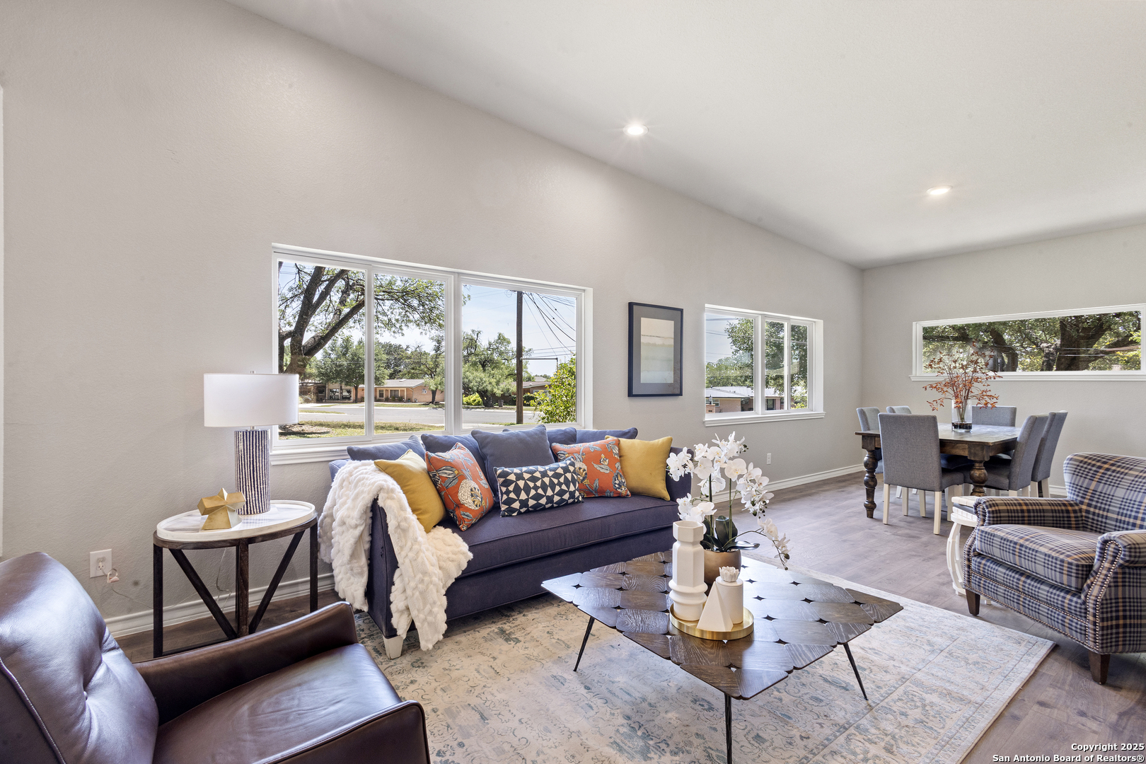 Welcome to this beautifully renovated 4-bedroom, 2-bathroom mid-century ranch-style home located in the highly sought-after Castle Hills community. This turnkey property seamlessly blends timeless charm with modern upgrades. Inside, you'll find generously sized bedrooms, a gourmet kitchen perfect for culinary enthusiasts, stylish laminate flooring throughout, and expansive living areas ideal for both everyday living and entertaining guests. The exterior is equally impressive, boasting mature trees, a two-car garage