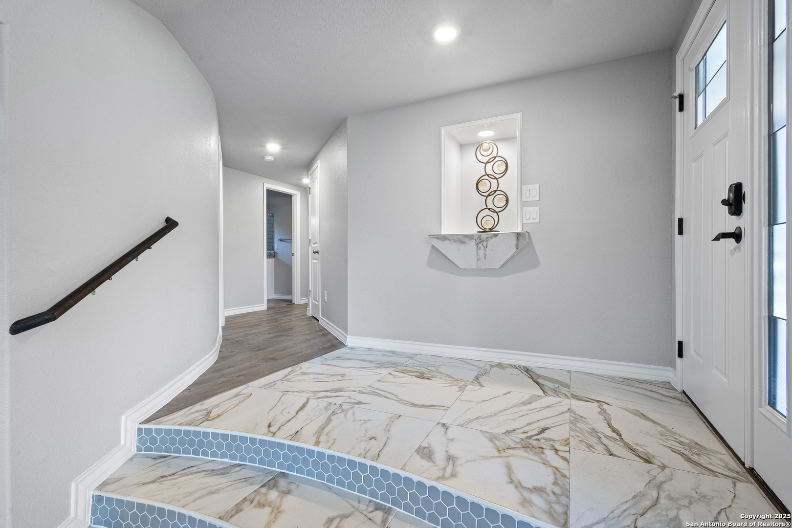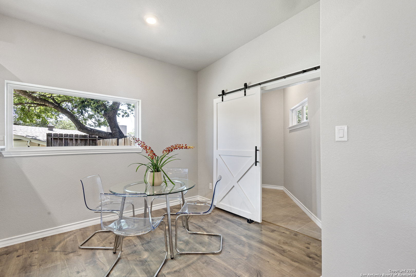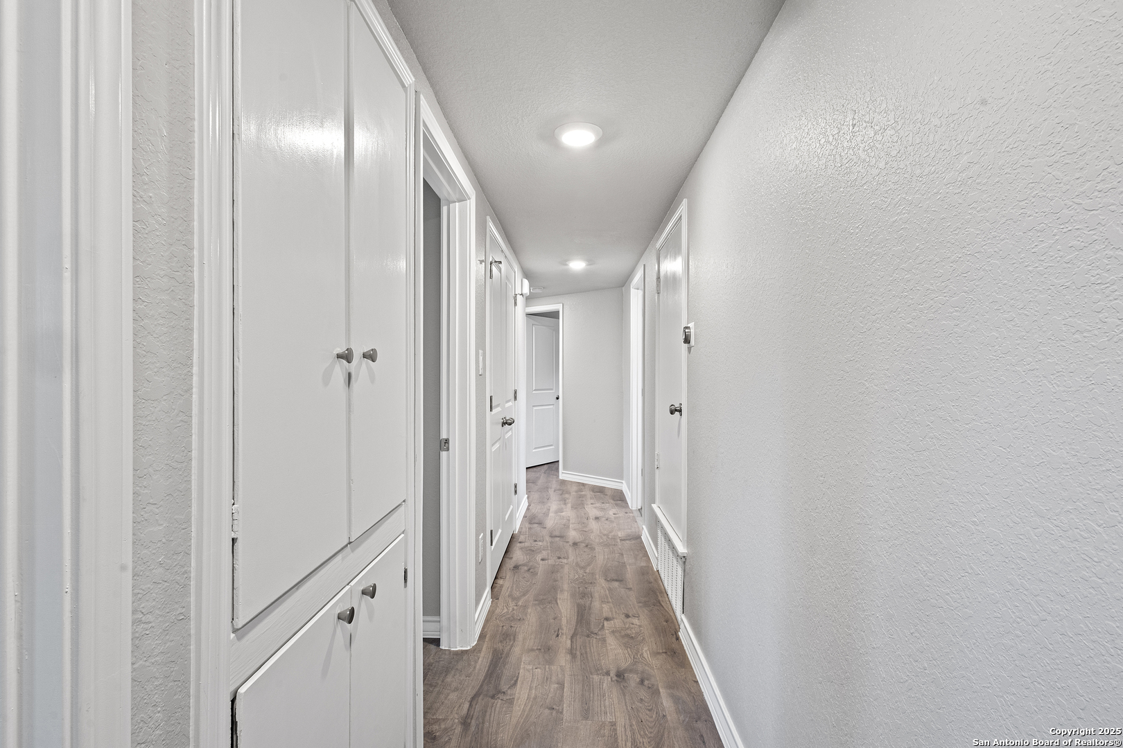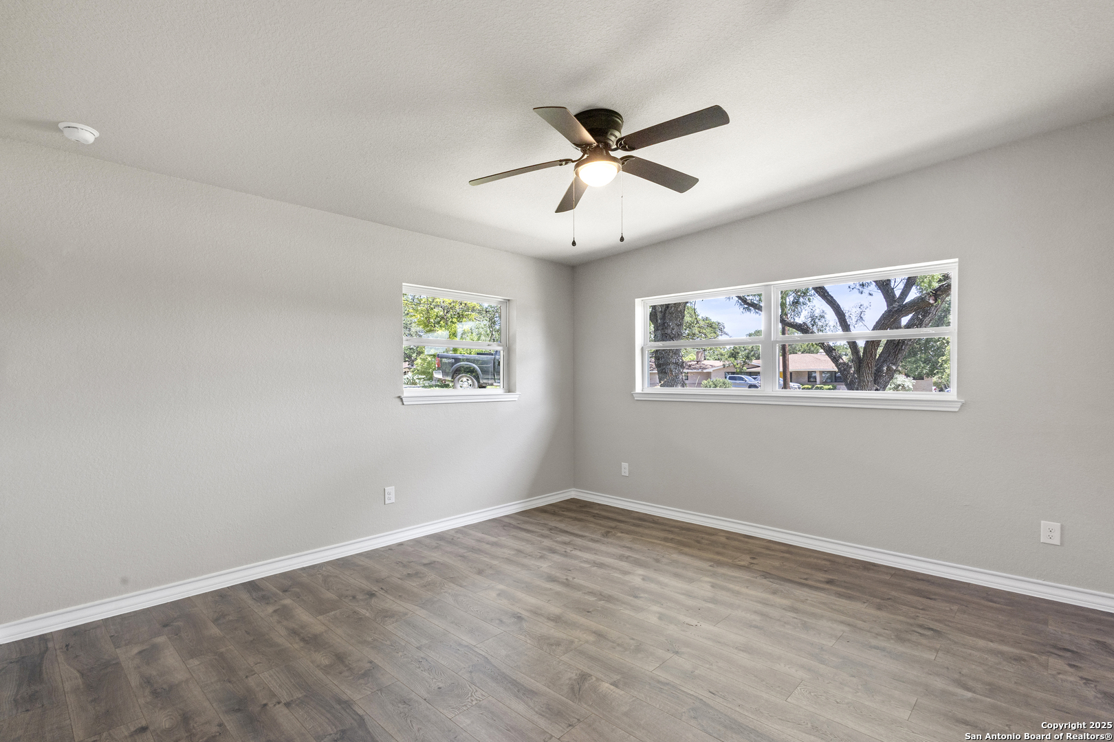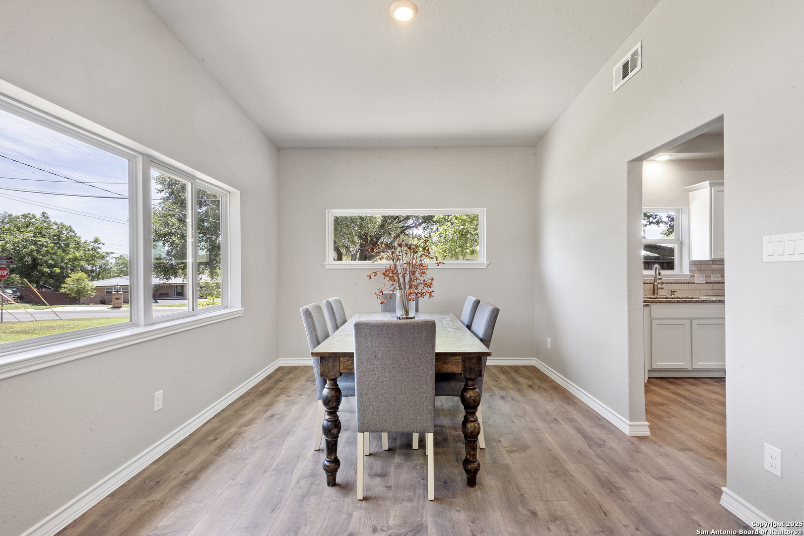 Welcome to this beautifully renovated 4-bedroom, 2-bathroom mid-century ranch-style home located in the highly sought-after Castle Hills community. This turnkey property seamlessly blends timeless charm with modern upgrades. Inside, you'll find generously sized bedrooms, a gourmet kitchen perfect for culinary enthusiasts, stylish laminate flooring throughout, and expansive living areas ideal for both everyday living and entertaining guests. The exterior is equally impressive, boasting mature trees, a two-car garage
