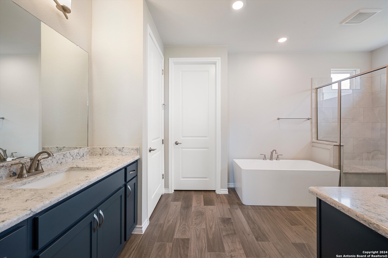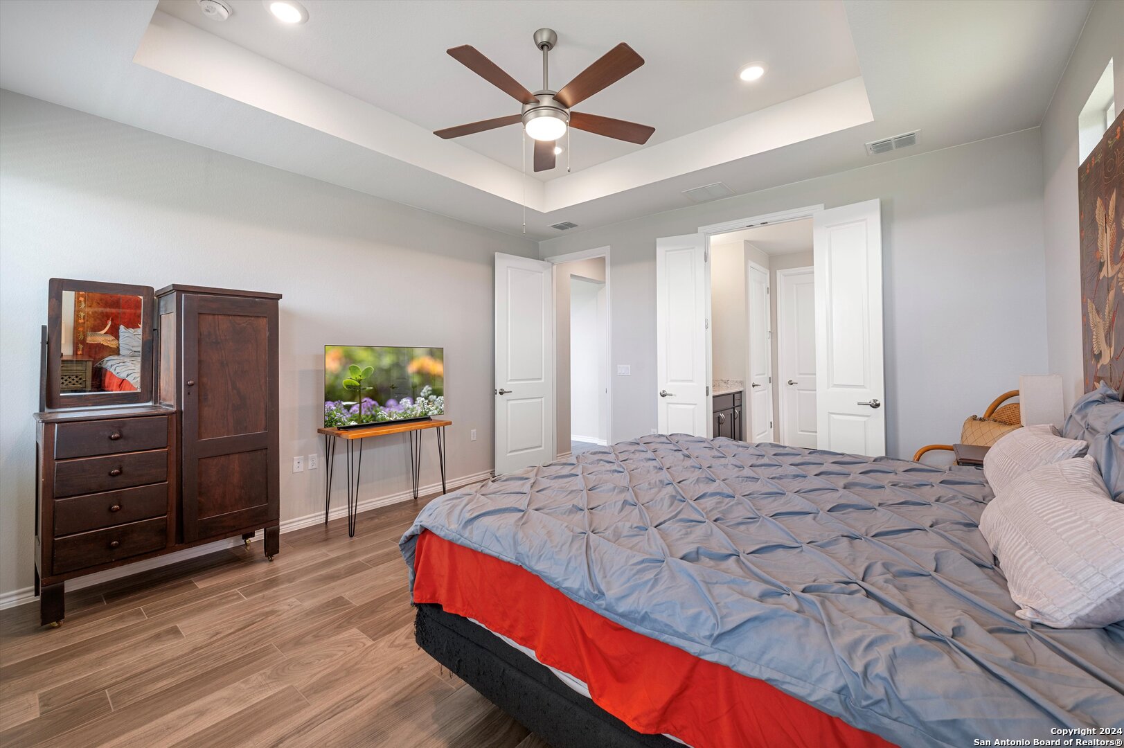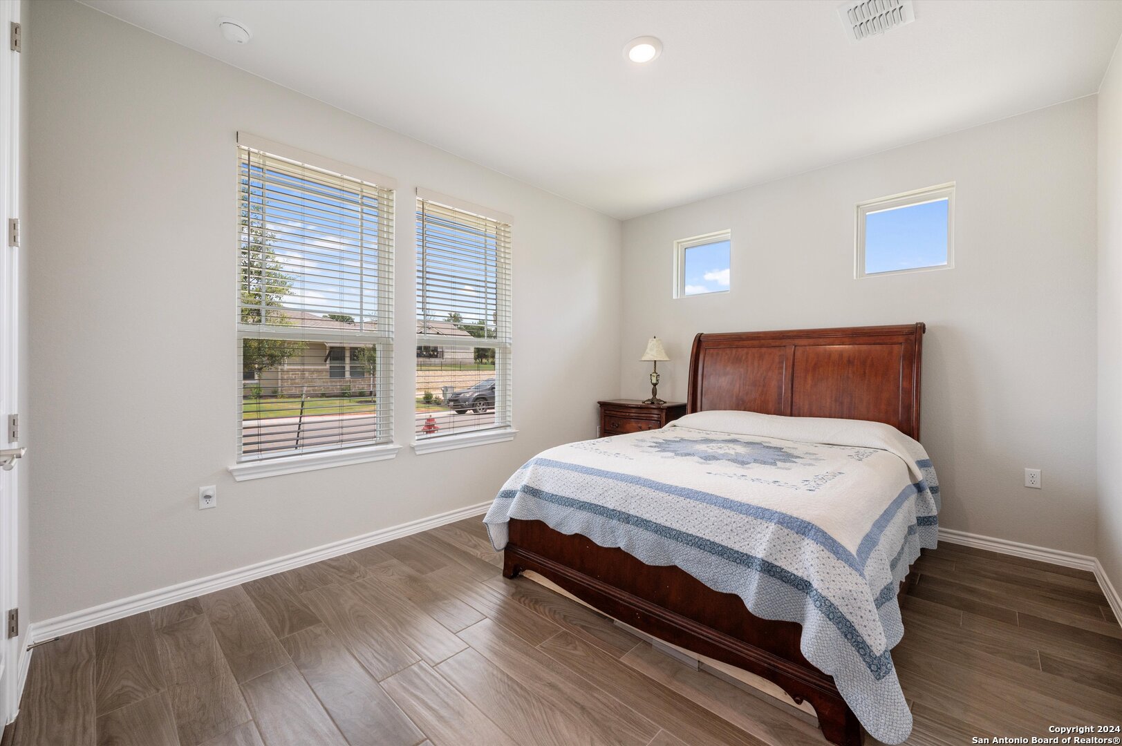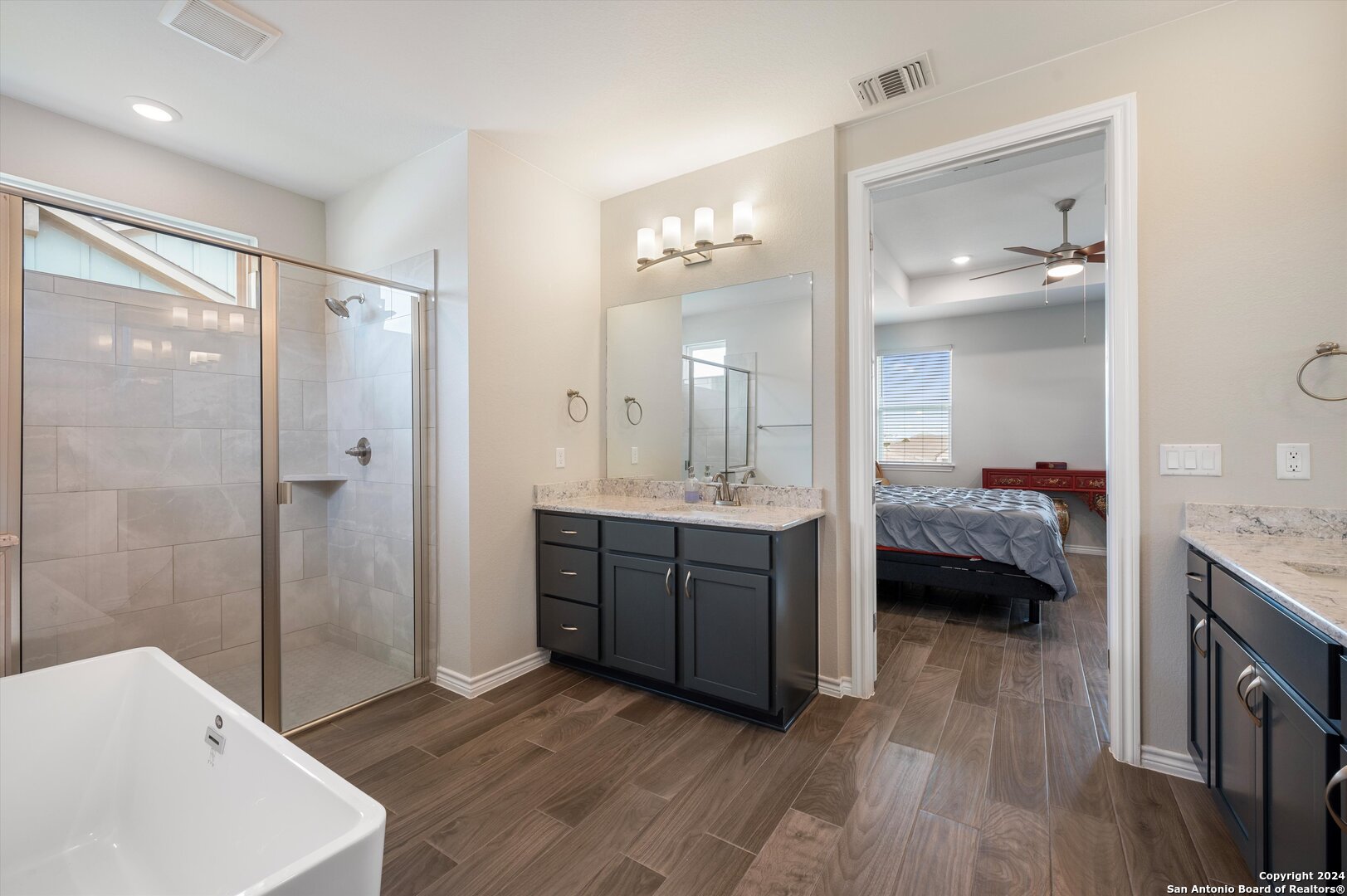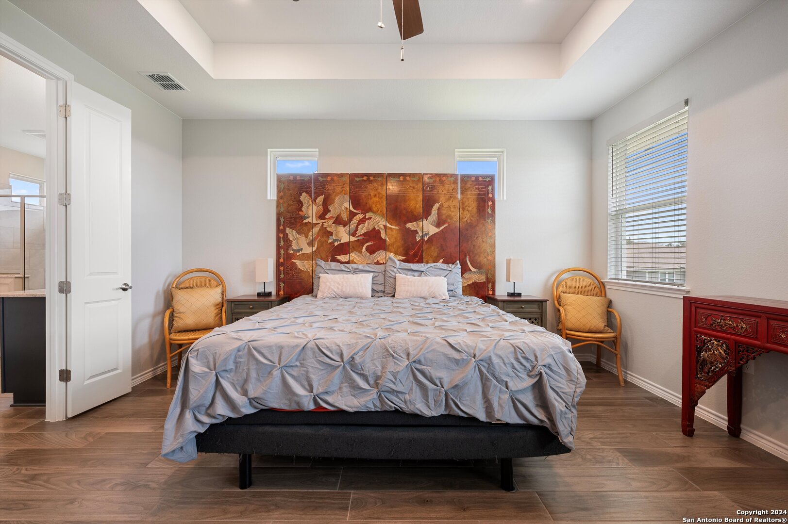 Welcome to this beautiful 2-bedroom, 2-bathroom Cottage with den/study in the highly desirable Kissing Tree community, designed exclusively for residents aged 55 and older. Boasting 1787 square feet of thoughtfully crafted living space, this home offers a blend of elegance,functionality, and modern upgrades that cater to a sophisticated lifestyle. As you step inside, you'll be greeted by an airy, open-concept living space with high ceilings and abundant natural light. The heart of the home is the large and upgraded kitchen, which features top-of-the-line appliances including a built-in oven, microwave, gas cooktop, refrigerator, and a convenient RO water filtration system. The countertops and spacious kitchen island have been tastefully upgraded to luxurious Quartz, providing both style and durability for all your culinary adventures. As you explore further, you'll notice the attention to detail in every corner, from the whole-home wood-look tile flooring to the 8-foot doors, to the tray ceilings in the primary bedroom and living room that add a touch of grandeur. The primary bathroom is a sanctuary of relaxation with separate vanities, a generously sized walk-in shower with a mud-set tile floor, and a stand-alone tub for soaking away the days stresses. Off the dining room, the covered patio beckons you to unwind and entertain, with a gas stub connection provided for creating your outdoor grilling haven. Enjoy the serene backdrop of greenspace behind the home, ensuring privacy and tranquility. Living in Kissing Tree offers more than a beautiful home; is a lifestyle upgrade. Enjoy peace of mind with 24/7 security staff and gated entrances. The amenities are second to none with multiple pools, a state-of-the-art workout facility, 10+ pickleball courts, a challenging golf course, scenic walking trails, a full-service restaurant, a vibrant entertainment area, and engaging activities to keep you entertained and connected to your community. Immerse yourself in the vibrant community of Kissing Tree, where every day offers new opportunities for relaxation, recreation, and social connections. Don't miss out on the chance to make this exceptional property your own and experience the best that 55+ living has to offer.