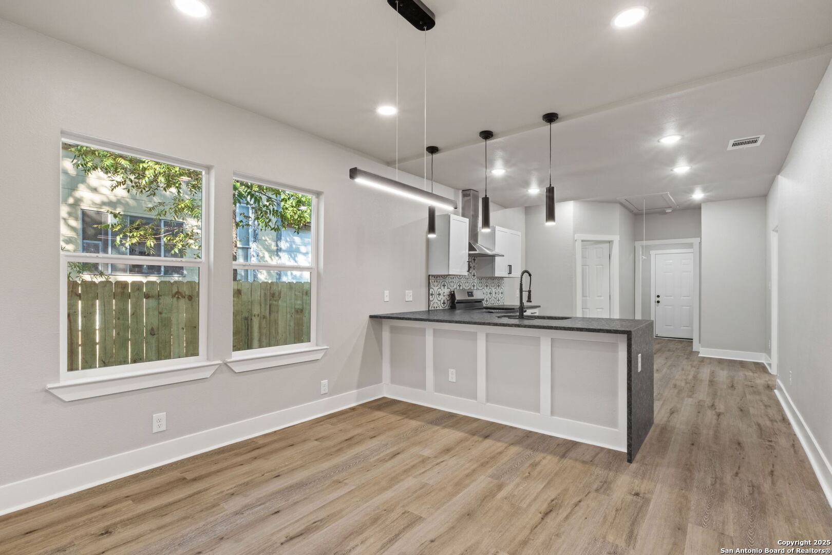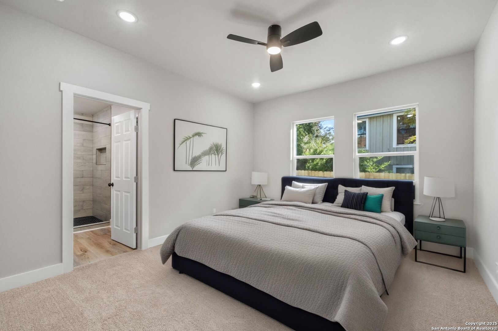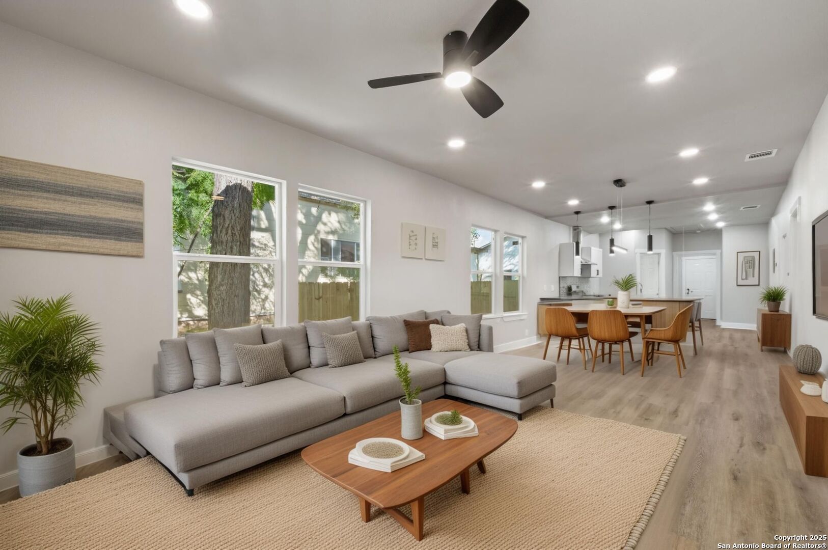 Step into the charm of San Antonio living in this beautifully updated historic one-story home that perfectly balances timeless character with modern comfort. With 3 bedrooms, 2 full baths, and 1,488 sq. ft. of thoughtfully designed space, this home welcomes you with a warm, open layout ideal for both everyday living and entertaining. Inside, you'll find recessed lighting, modern fixtures, and a seamless flow between the living, dining, and kitchen areas. The kitchen shines with a stylish backsplash, bright cabinetry, a walk-in pantry, and newer appliances. The primary suite offers a tranquil retreat with a generous walk-in closet and private ensuite bath. Enjoy outdoor living from the large covered front patio, the perfect spot for morning coffee or evening conversation, and a backyard with a new privacy fence offering plenty of space to garden, entertain, or let pets play. The off-street parking pad also provides everyday convenience. With updates including a newer water heater, modern finishes, and central AC, this home combines classic appeal with contemporary comfort. Conveniently located just off I-35, you're minutes from The Pearl, Downtown San Antonio, and Fort Sam Houston, with quick access to local dining, shops, and entertainment. Whether you're drawn by the history, the location, or the lifestyle, this property is the perfect place to call home in the heart of San Antonio.