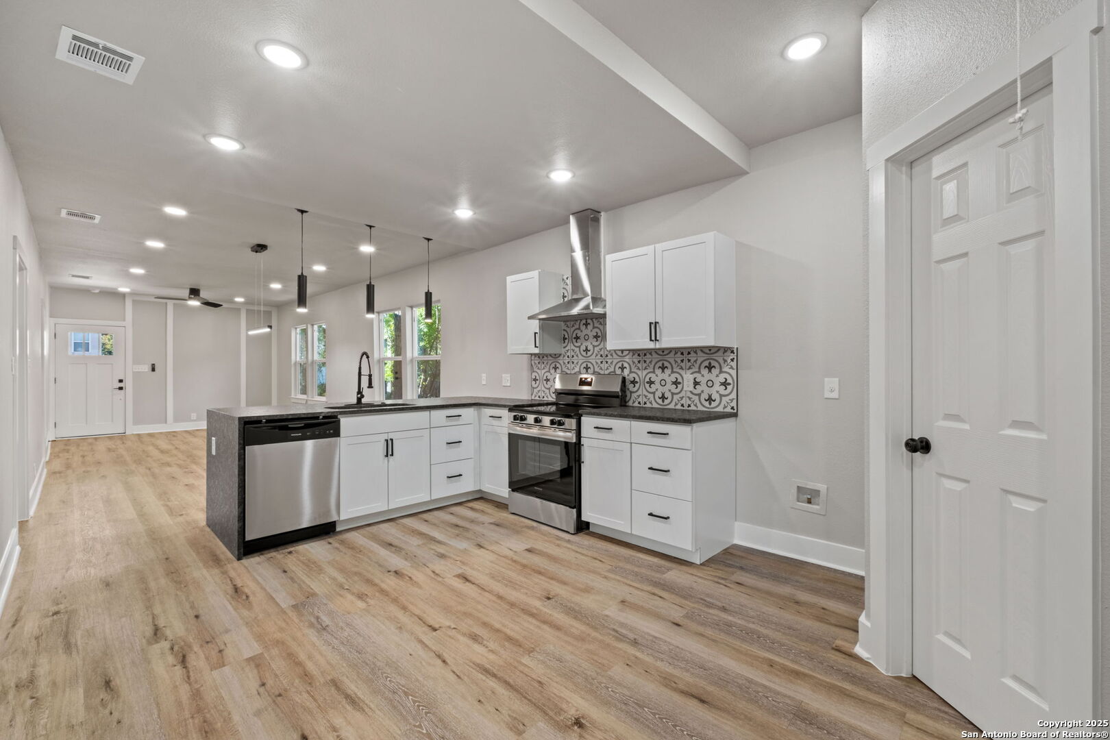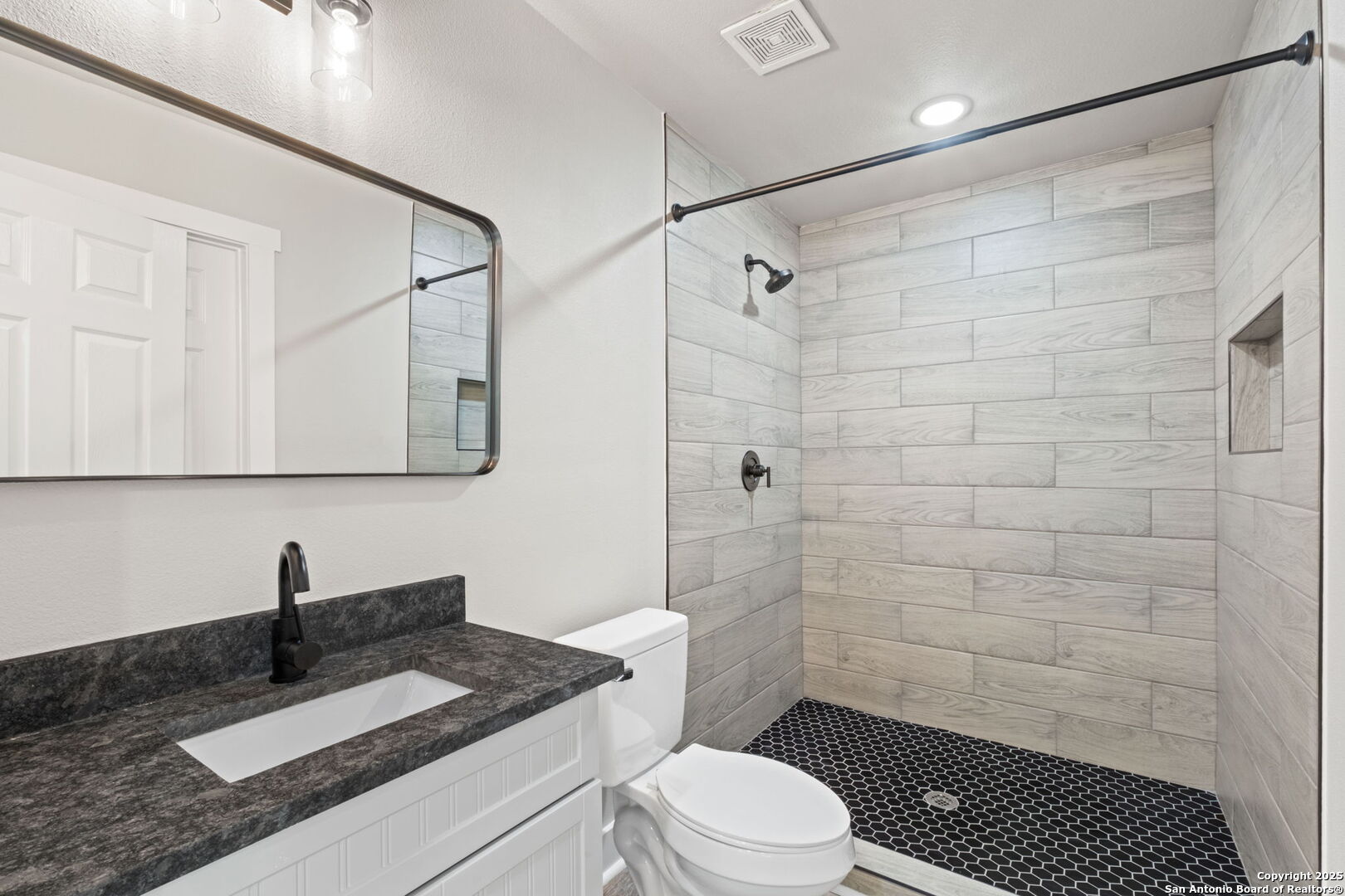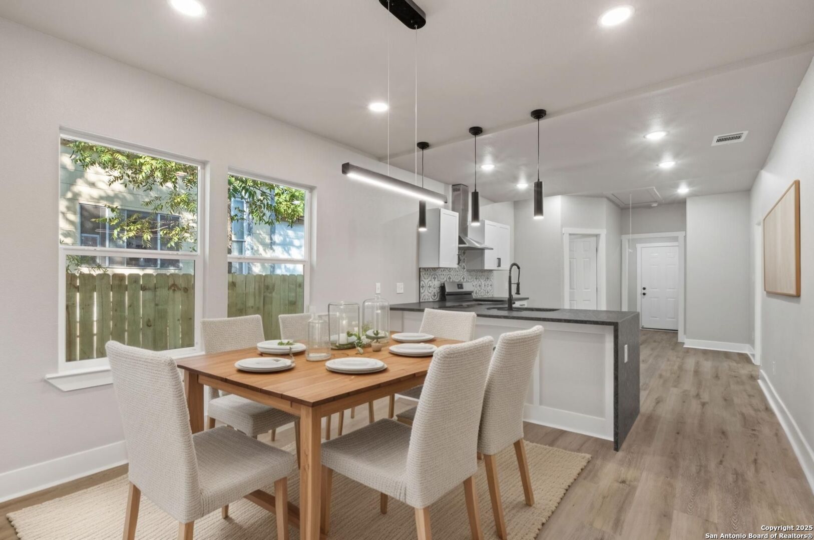 Step into the charm of San Antonio living in this beautifully updated historic one-story home that perfectly balances timeless character with modern comfort. With 3 bedrooms, 2 full baths, and 1,488 sq. ft. of thoughtfully designed space, this home welcomes you with a warm, open layout ideal for both everyday living and entertaining. Inside, you'll find recessed lighting, modern fixtures, and a seamless flow between the living, dining, and kitchen areas. The kitchen shines with a stylish backsplash, bright cabinetry, a walk-in pantry, and newer appliances. The primary suite offers a tranquil retreat with a generous walk-in closet and private ensuite bath. Enjoy outdoor living from the large covered front patio, the perfect spot for morning coffee or evening conversation, and a backyard with a new privacy fence offering plenty of space to garden, entertain, or let pets play. The off-street parking pad also provides everyday convenience. With updates including a newer water heater, modern finishes, and central AC, this home combines classic appeal with contemporary comfort. Conveniently located just off I-35, you're minutes from The Pearl, Downtown San Antonio, and Fort Sam Houston, with quick access to local dining, shops, and entertainment. Whether you're drawn by the history, the location, or the lifestyle, this property is the perfect place to call home in the heart of San Antonio.