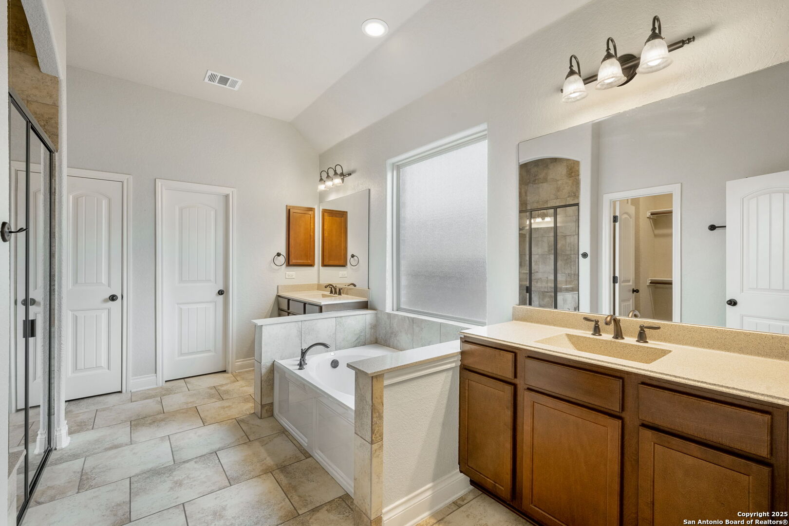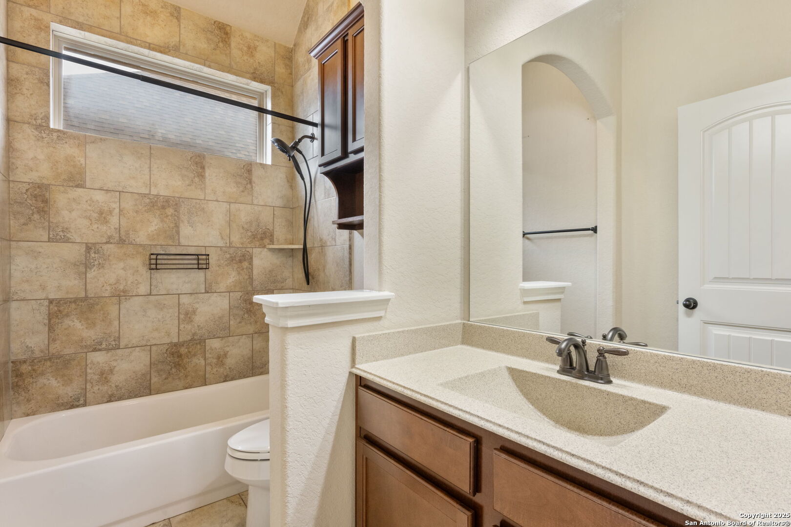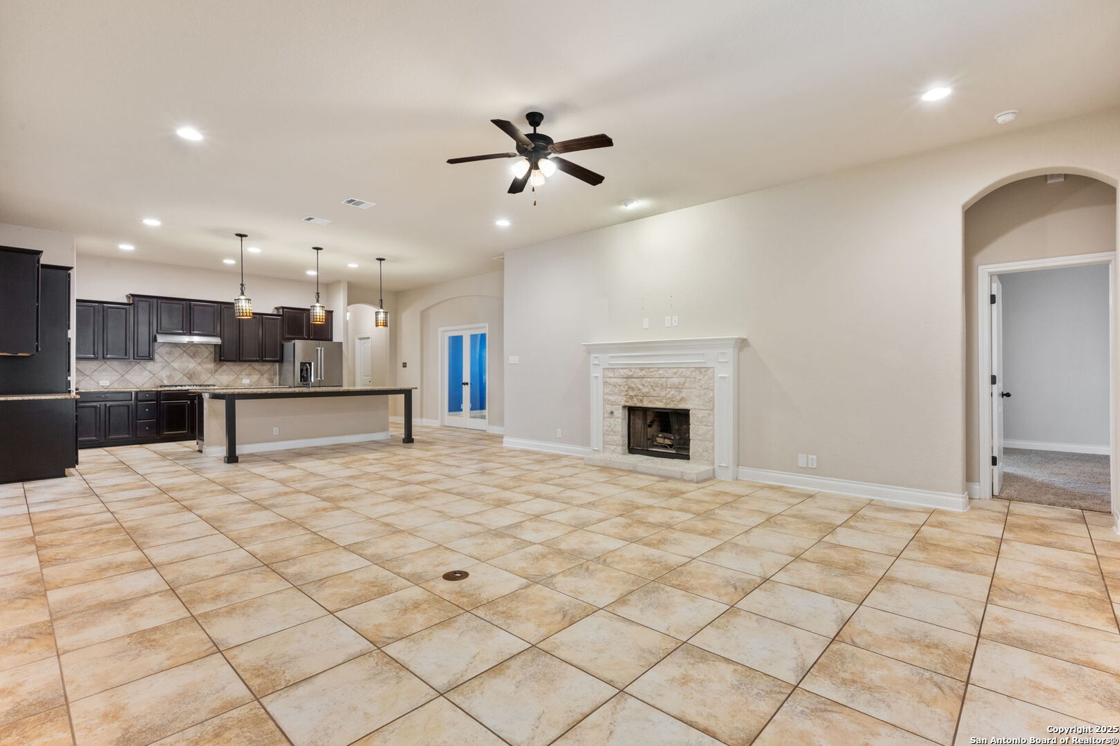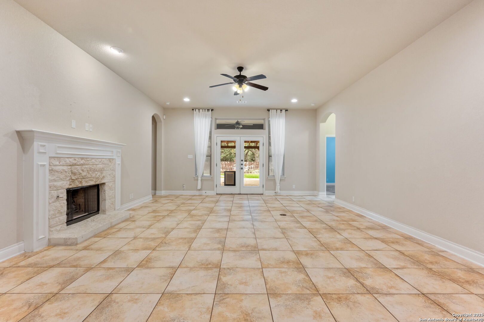 Charming one-story home on a Greenbelt, nestled in the desirable Estates at Stone Crossing in New Braunfels! With 4 beds, 3 baths, +/- 2,653 sqft, this home offers a perfect blend of comfort and style. Step inside to a cozy living room featuring a wood-burning fireplace, seamlessly flowing into the spacious kitchen. The kitchen boasts granite countertops, stainless steel appliances, ample cabinetry, and a large island. The primary bedroom is a private retreat with a separate his and her closets with built-in dressers and shelving, separate vanity, a garden tub, and a separate shower. Outside, enjoy a private backyard with a covered patio and a full outdoor kitchen, complete with a gas grill and ice maker that is perfect for gatherings! New Braunfels ISD. Welcome home!