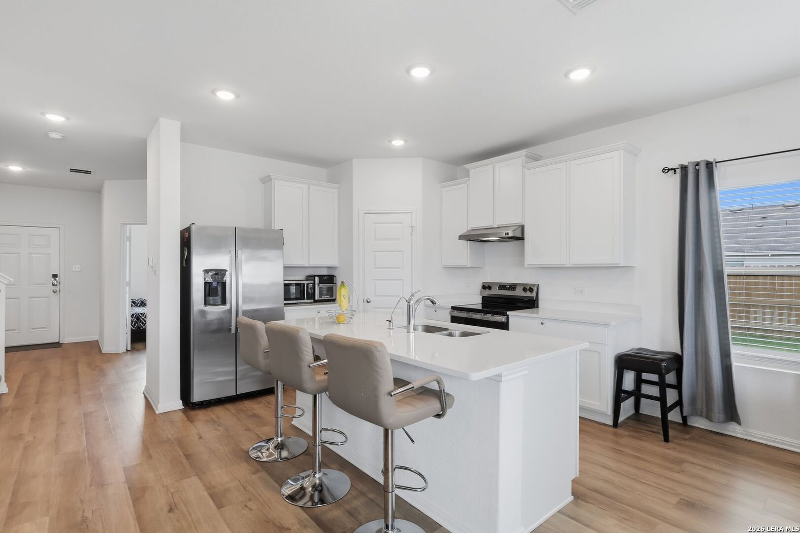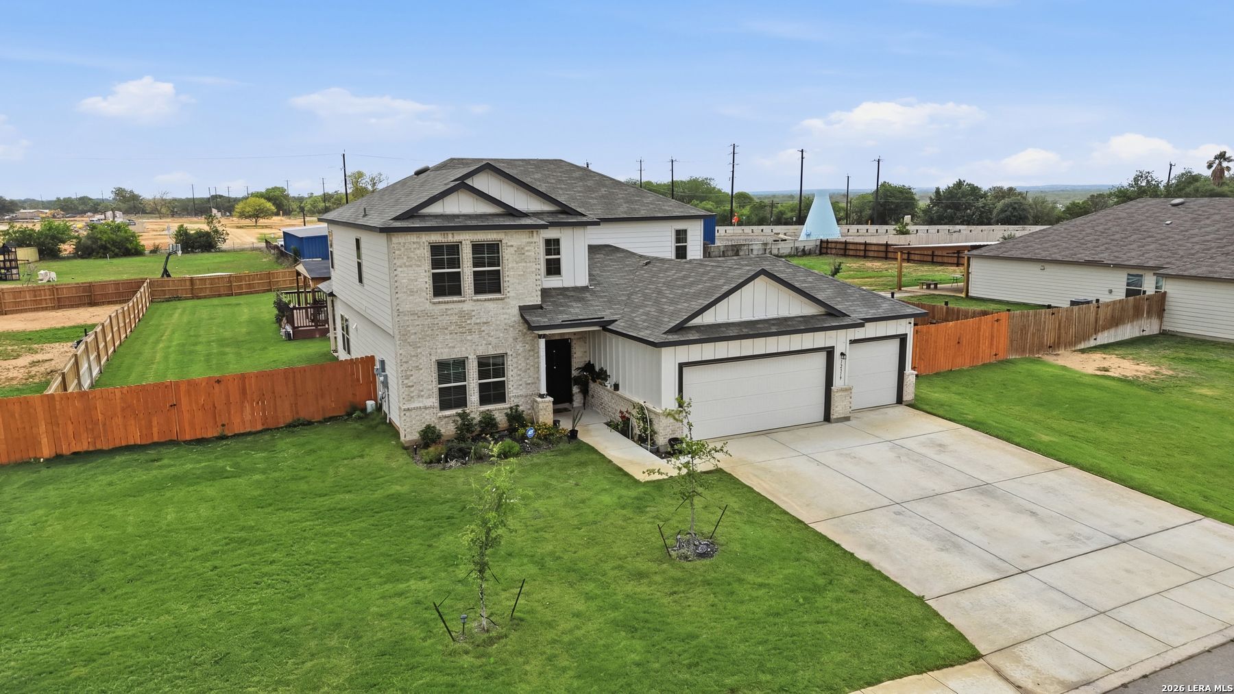 Why settle when you can have more space, more functionality, and over half an acre, all in a home that's just one year old? This beautifully maintained 4-bedroom, 2.5-bath home in Atascosa is designed for real life, offering a primary suite and dedicated office on the main level for both comfort and convenience. The open-concept layout creates an easy flow between the kitchen, dining, and living areas, with a spacious island, modern appliances, and ample cabinetry at the heart of it all-perfect for busy mornings and gathering with family and friends. Upstairs, a large game room provides the ideal flex space for movie nights, playtime, or a second living area, along with secondary bedrooms that offer privacy and versatility. Step outside and experience what truly sets this home apart-just over half an acre of fully fenced land gives you room to breathe, play, and grow. The impressive 25x30 outdoor pavilion is ready for everything from weekend barbecues to birthday celebrations and relaxed Texas evenings under the stars. With approximately 2,601 square feet, a covered patio, and a two-car garage, this home offers the benefits of newer construction with thoughtful upgrades already in place. Move-in ready and made for its next chapter.