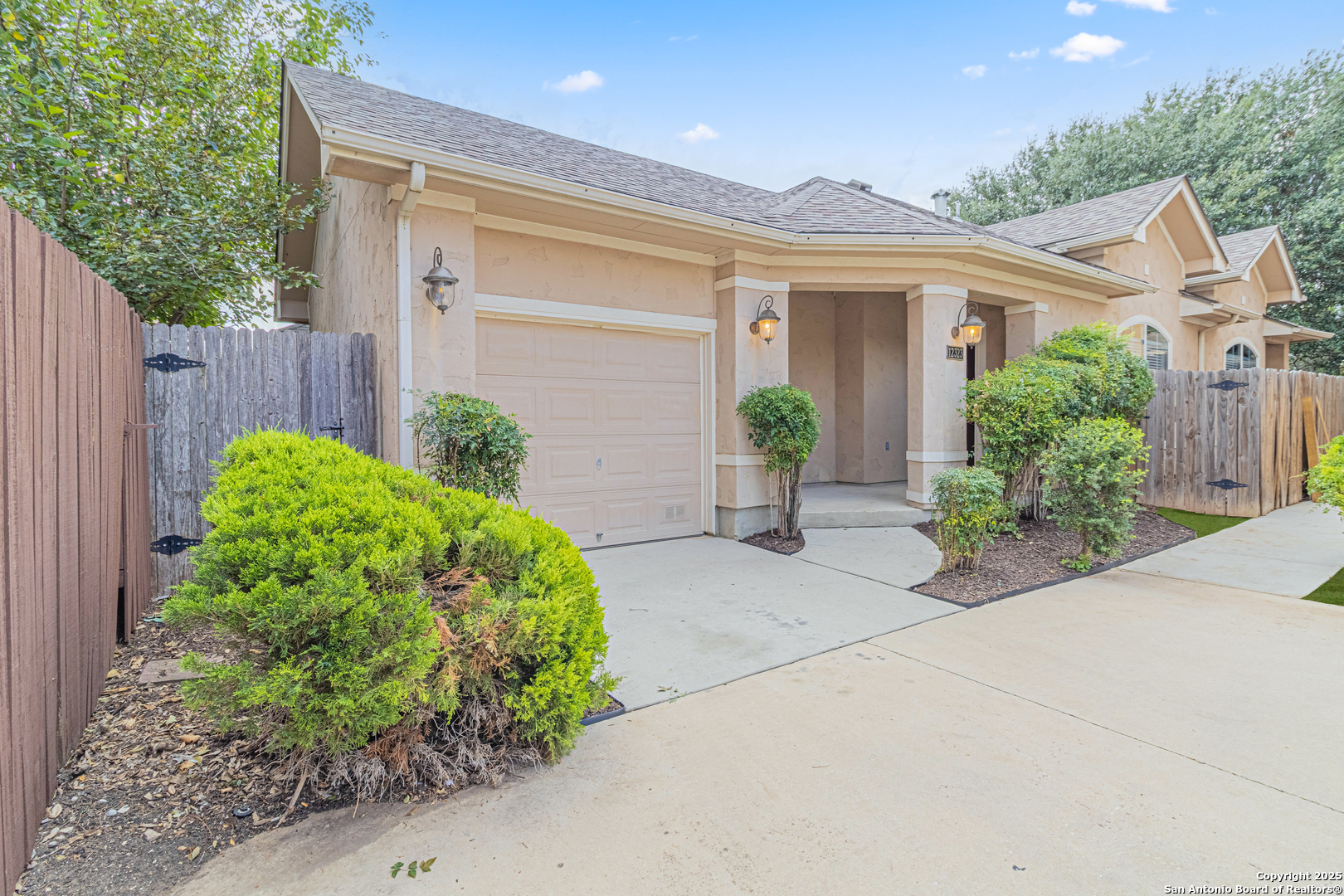 Tucked away in a gated community, this generous single-story home combines modern comfort, convenience, and style. Ideally situated near the Medical Center, UTSA, La Cantera, and The Rim, it offers easy access to top-tier shopping, dinning, and entertainment-perfect for an active lifestyle. The open-concept interior showcases sleek ceramic tile and wood laminate flooring throughout, while brand-new carpet in the bedrooms adds a touch of a cozy warmth. The primary suite a private escape with a walk-in closet, walk-in shower and dual vanities, Outside a spacious patio, which creates an inviting setting for relaxation or entertaining. Nature lovers will appreciate close access to Bamberger Nature Park and Leon Creek Greenway, featuring trails for biking, running, along with a dog-friendly area. HOA dues cover front yard maintenance, offering a low maintenance lifestyle inside and out. This home features brand new carpet in both bedrooms. Fridge, Washer, and Dryer do convey with property.