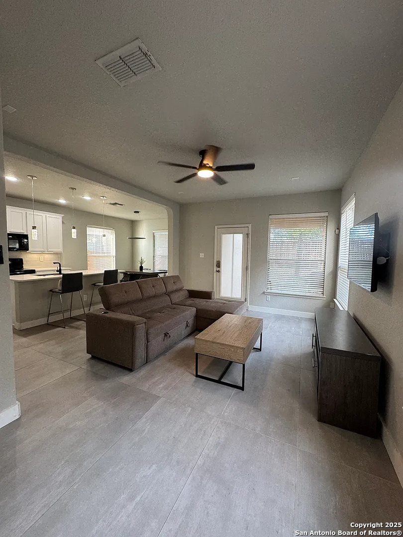 This fully furnished residence offers a recently renovated kitchen. The first level features tile flooring, providing a clean and contemporary feel, while the second level is comfortably carpeted. The property is located within a secure gated community, enhancing privacy and peace of mind for residents. Gate access to Bamber Nature Park trails. For those college students, UTSA is 6 minutes away.