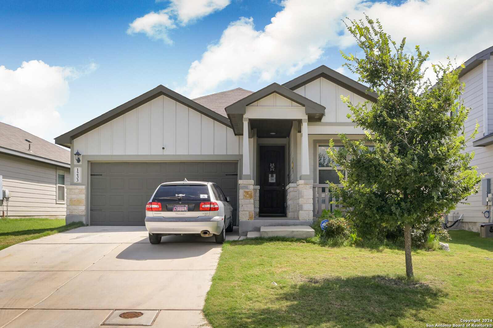 Discover this great home in the thriving community of Meyer's Landing near Creekside Crossing! This exquisite Meritage home, built in 2020, offers modern comfort and convenience with a touch of luxury. Featuring four spacious bedrooms and a versatile flex room, this home provides plenty of adaptable space perfect for a home office, playroom, or gym. The primary bedroom offers a unique desert-themed oasis. Built with cutting-edge energy-efficient features, this home keeps utility costs low while ensuring maximum comfort. The thoughtfully designed Hughes floor plan offers optimal living space and functionality. Located close to shopping, H-E-B, and within the highly-regarded Comal ISD, this home combines style, comfort, and convenience in a rapidly growing area. Don't miss the opportunity to own this exceptional home-schedule a viewing today!