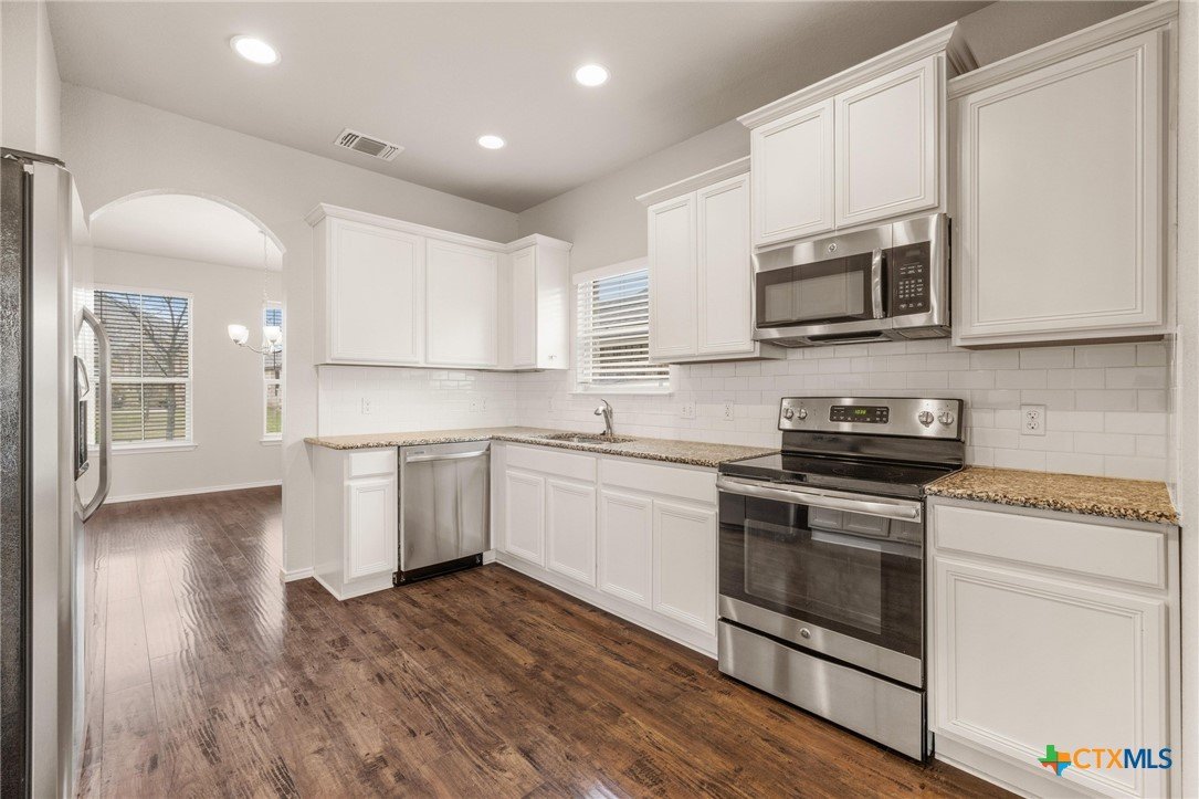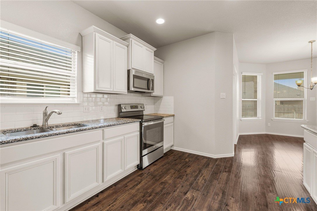 Welcome to this beautifully maintained and move-in ready 4-bedroom, 2.5-bathroom home in the highly desired Lake Pointe community. With over 2,000 square feet of living space, this home offers room to spread out and enjoy, plus a long list of recent upgrades. You’ll love the fresh interior paint and brand-new carpet, giving the entire home a clean and modern feel. The kitchen features granite countertops, stainless steel appliances, a walk-in pantry, and an open layout that flows into the dining and living areas—perfect for everyday living or entertaining. Upstairs, you’ll find all four bedrooms and a spacious primary suite with a double vanity, separate shower, garden tub, and a large walk-in closet. This home also features a less-than-one-year-old architectural shingle roof, offering peace of mind and great curb appeal. Enjoy outdoor time on the covered back patio or the upstairs balcony, and take advantage of the fully fenced backyard—ideal for kids, pets, or weekend relaxing. Located in Belton ISD and just minutes from Tarver Elementary, North Belton Middle School, and Lake Belton High School, this home is also part of a community that offers a pool, clubhouse, playground, and more. With its great layout, fresh updates, and fantastic location, this home has everything you’re looking for.