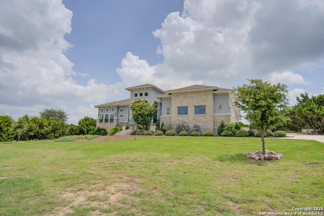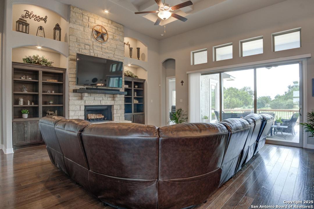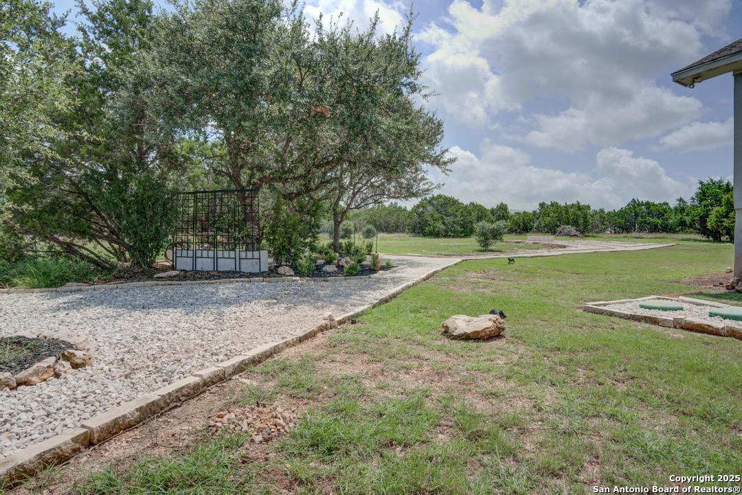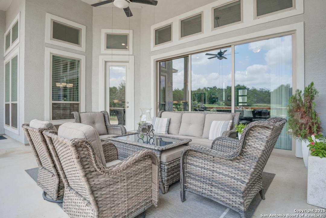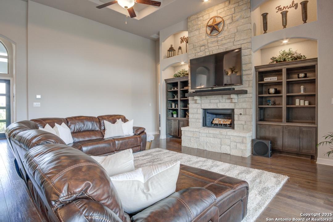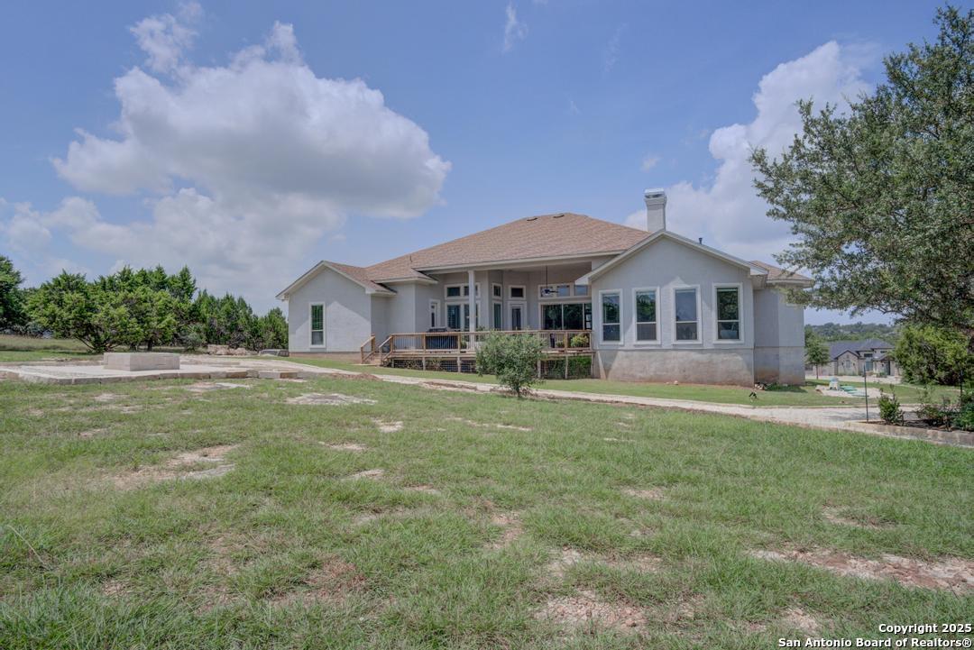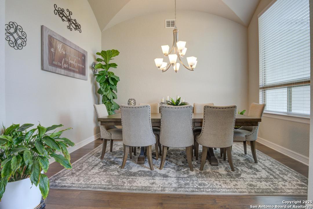 This gorgeous custom home sits on over an acre in the highly desired neighborhood of Vintage Oaks at the Vineyard! It is obvious this home has tons of tender loving care poured into it's quality custom features. The front entry opens into a large private dining room and study with beautiful hardwood floors, high coffered ceilings and open floor plan. The living area has tons of natural light with a floor to ceiling stone fireplace and custom cabinets that make for the perfect centerpiece. The gourmet kitchen is a chef's dream with beautiful matching stonework, gas cooking, dual ovens, farmhouse sink, marble countertops with tons of space, island, large wrap around bar, walk in pantry, plenty of custom cabinets with lighting under and above for the perfect setting. The primary suite is huge with high tray ceilings, plenty of natural light and a private exit to the perfect outdoor space. The primary bedroom also includes a resort style ensuite with a large soaking tub, huge walk in dual showers and a large walk in closet with ample space. There is a private guest suite with full bath, two more bedrooms and full bathrooms on the opposite side of the home for privacy. This truly is the perfect floor plan! The interior space opens up to a large covered patio with an extended deck for the perfect spot to admire the sunrise over your morning coffee or watch the deer and wildlife. The back yard is large and private with low maintenance zero scaping, a firepit and a serene prayer/meditation garden. The neighborhood clubhouse, park and pool is more than you could ask for! This home truly is the perfect place to create memories that will last a lifetime! Don't miss out. Schedule your showing ASAP!