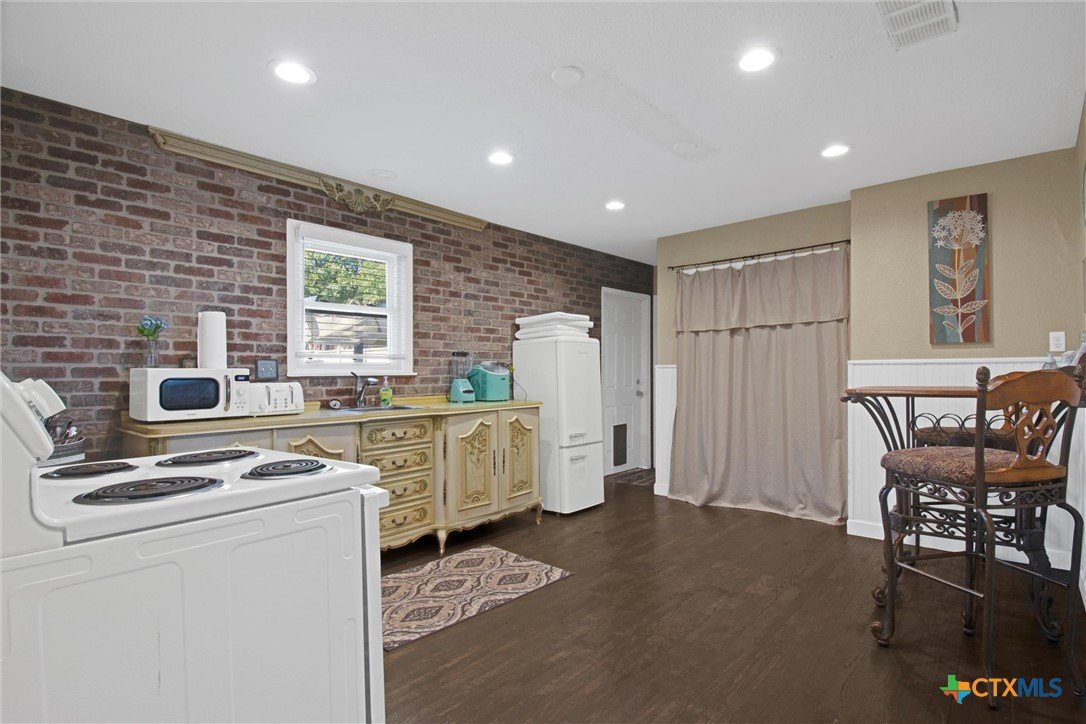 Investors — this one’s ready to go! The Nook is a proven income-producing short-term rental offering strong occupancy and guest satisfaction. This 2-bedroom, 2-bath home blends 1950s charm with modern updates and comes fully furnished and turnkey — just step in and start earning. Property Highlights: Established Airbnb with consistent bookings and positive reviews Roof (2021) and Hvac system (2025) recently replaced Fully furnished with most appliances, & décor included 2 spacious bedrooms (each with queen beds + trundle in guest room) 2 full baths, washer/dryer on site Retro-style kitchen with coffee station and appliances Covered patio & pergola with gas grill Large fenced backyard — pet-friendly and guest-approved Covered parking for two vehicles Prime Location: Walking distance to H-E-B, Walgreens, and local dining. Easy access to IH-35 for quick trips to Austin or San Antonio. Additional Feature: The neighbors next door are exceptionally quiet — no noise complaints here!!!! This property delivers reliable cash flow, low maintenance, and a great location — ideal for both short-term and mid-term rental investors.