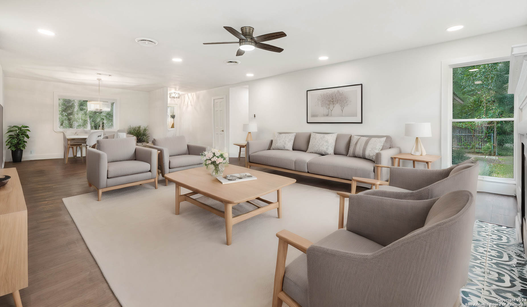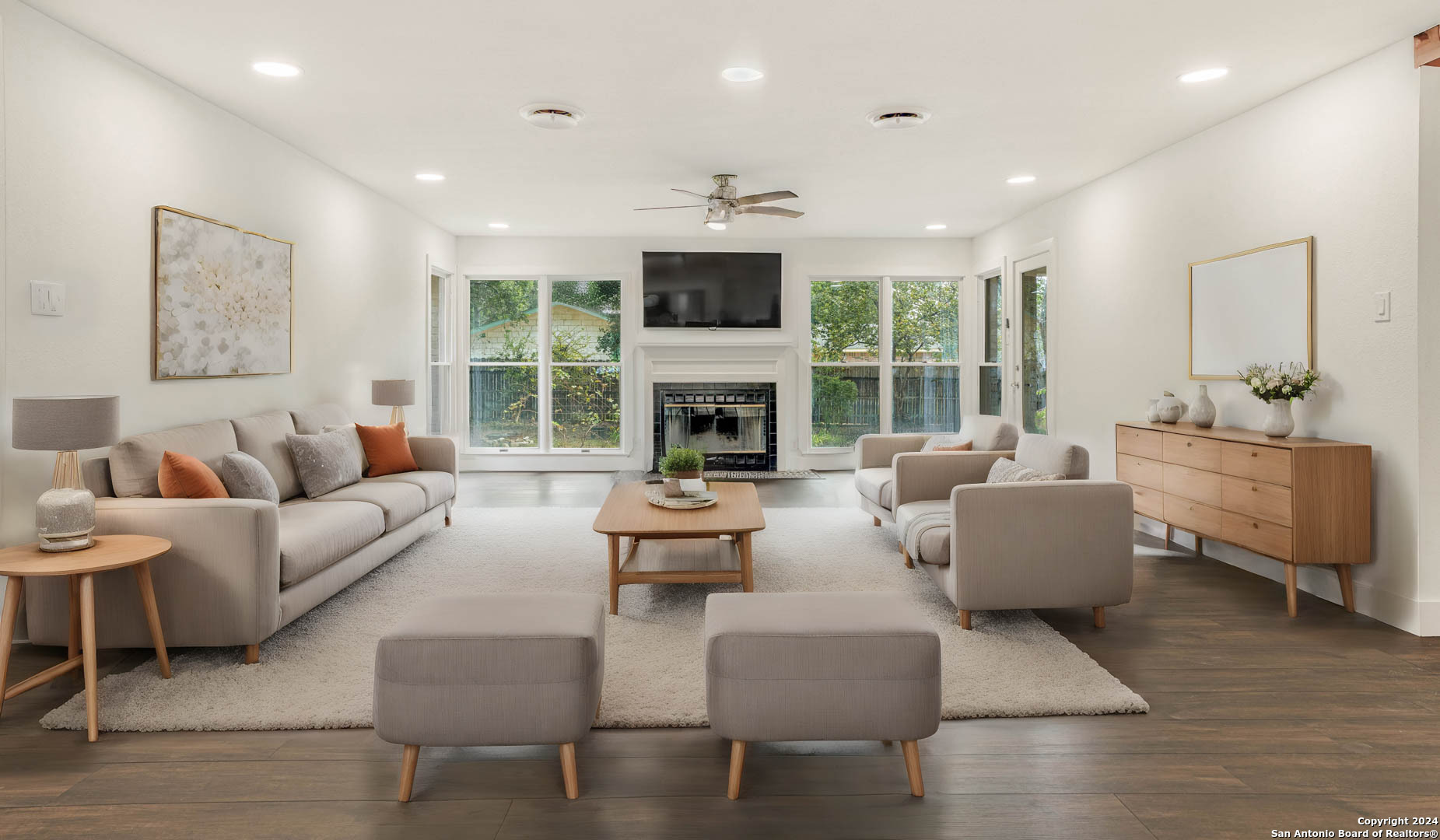 OPEN HOUSE 2/8/2025 11-2PM*****RATE BUY DOWN AVAILABLE UP TO 10K*****Welcome to your DREAM HOME situated steps away from the famous Guadalupe river float! This three bedroom, two bathroom beauty, has been fully renovated with high end designer finishes throughout. Stepping inside, you will be drawn to the beautiful fireplace surrounded by picture windows that look out onto your oversized backyard. The perfect spot to cozy up by the fire on those chilly Texas nights. The family room seamlessly flows into the gorgeous dining room that