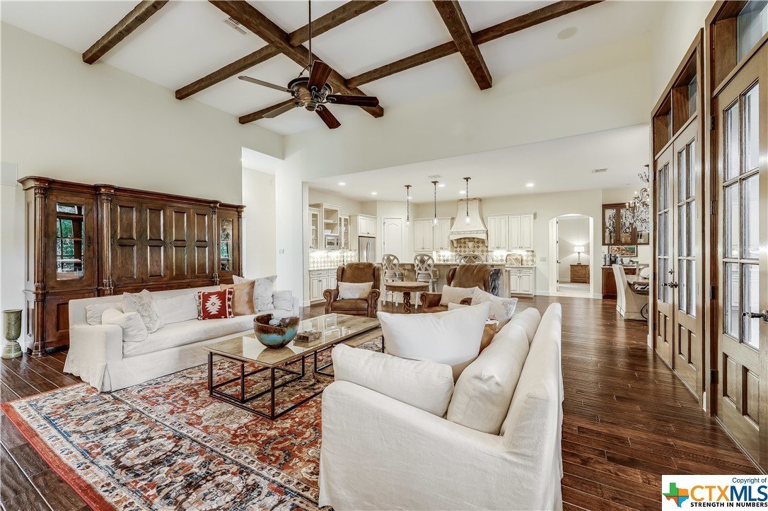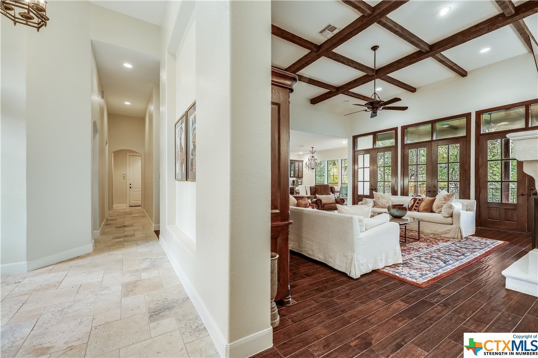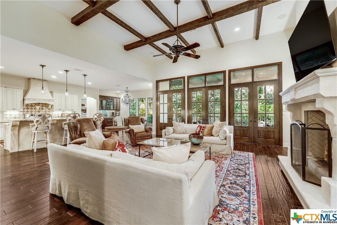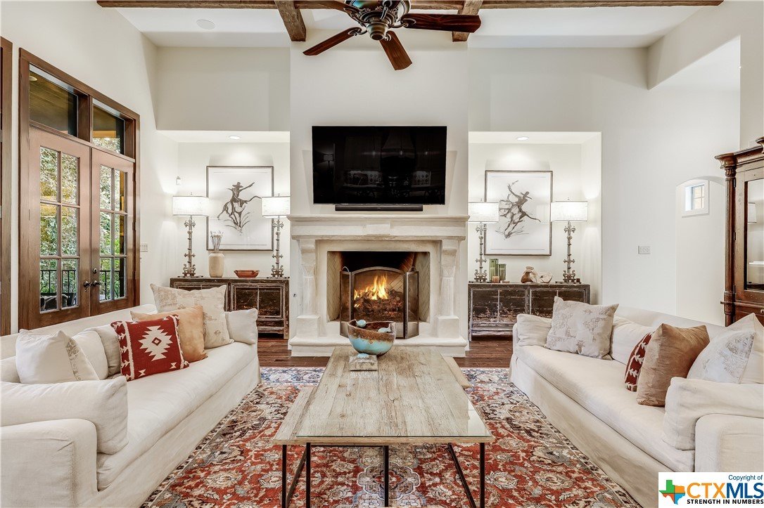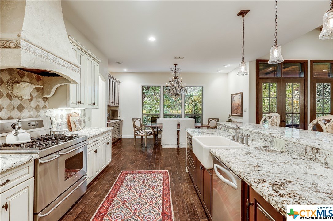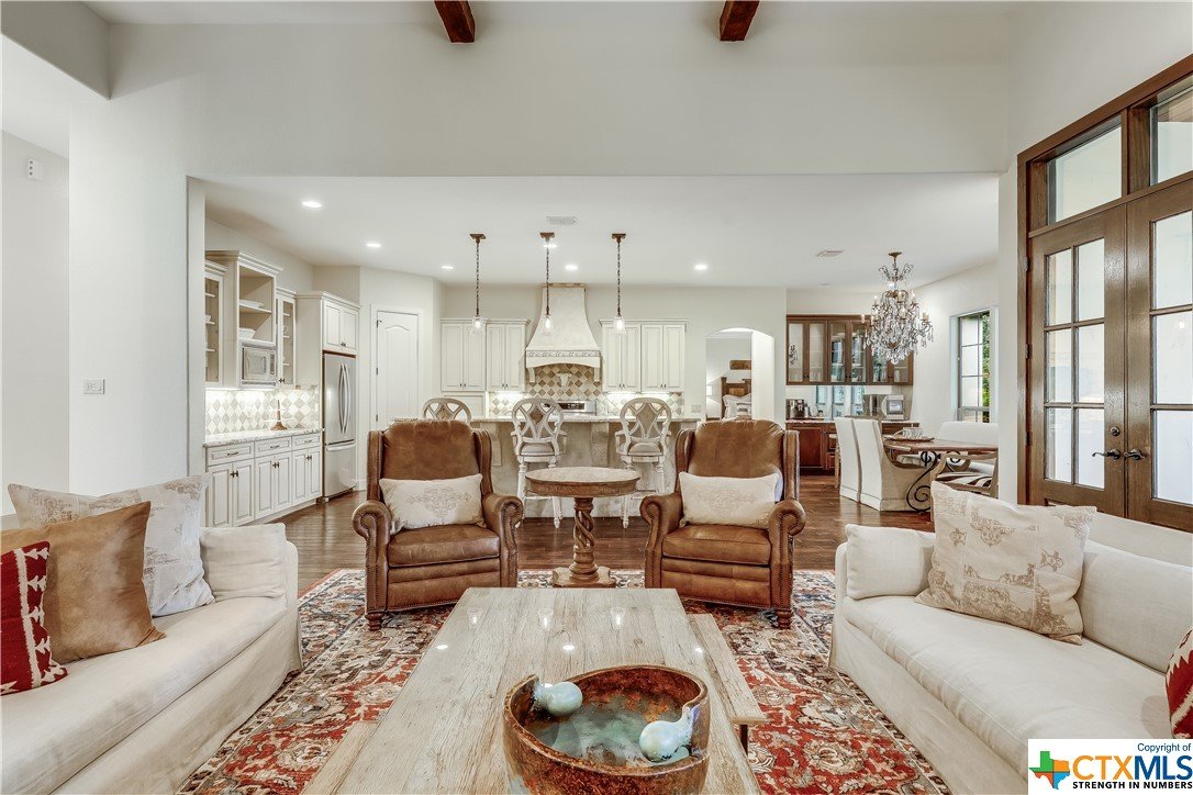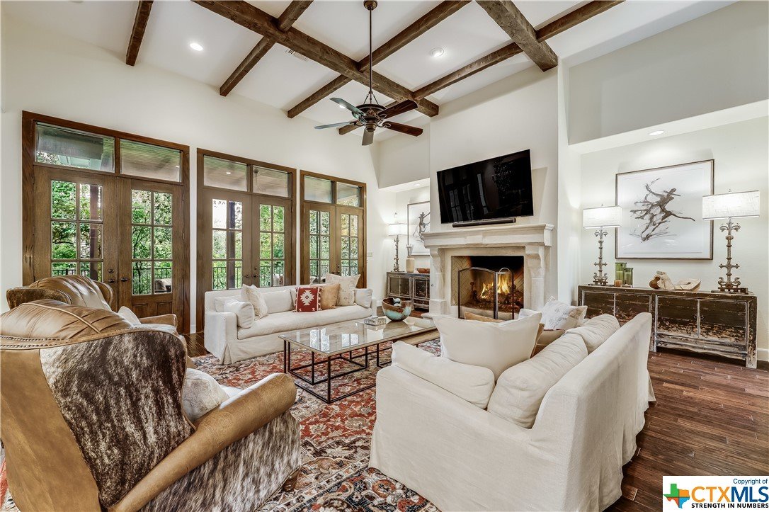 Experience luxury living in New Braunfels’ best kept secret & indulge in a lifestyle where every day feels like a vacation. This property provides a rare combination of luxury, harmoniously blended with nature & tucked among incredible trees. Find solace by immersing yourself in the tranquil surroundings & enchanting views. The home offers the allure of Mediterranean design & Texas charm. An exquisite custom home on a premier lot that abounds w/ impeccable design & craftsmanship. Illuminated w/ custom lighting & soaring ceilings makes the open concept living an expected luxury. Coffered wood ceilings elevate the aesthetics in the family room & the ambience of a captivating stone fireplace beckons Old World charm. The kitchen is a culinary dream, fully equipped w/ professional grade appliances, custom cabinetry, built-in amenities, expansive island, and open to family & dining areas. Wine grotto bar w/ wine fridge, ice maker. Lavish primary suite, spa bath, magnificent walk-in closet. Generator. Tankless water heaters. Huge walk-in attic. Spa. Private river access. Minutes from downtown NB, Gruene & IH 35. Click on PHOTOS for more details. See FEATURES SHEET in attachments. Virtual Tour links for PROPERTY WEBSITE.