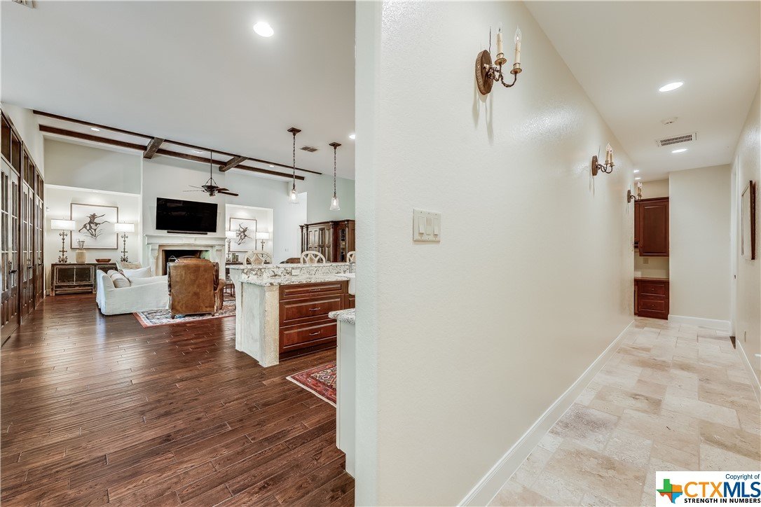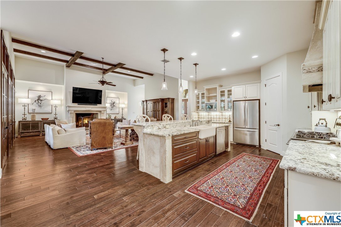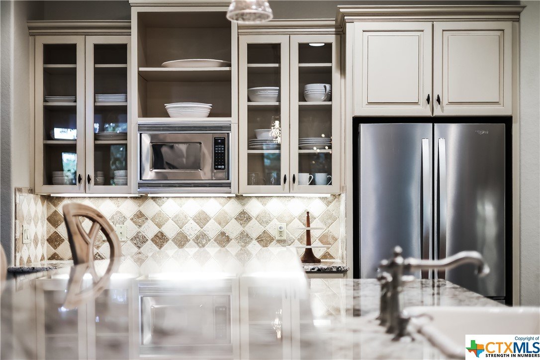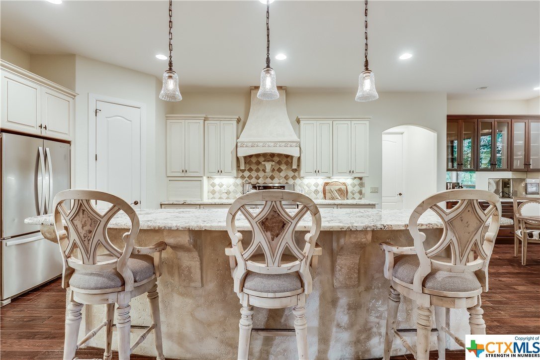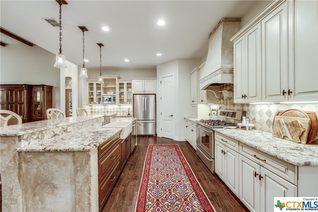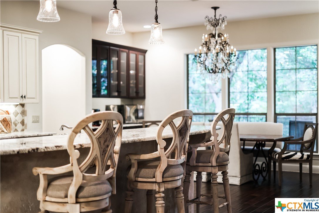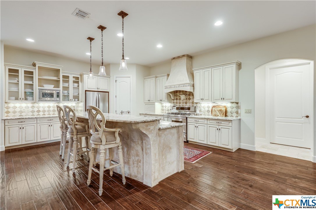Experience luxury living in New Braunfels’ best kept secret & indulge in a lifestyle where every day feels like a vacation. This property provides a rare combination of luxury, harmoniously blended with nature & tucked among incredible trees. Find solace by immersing yourself in the tranquil surroundings & enchanting views. The home offers the allure of Mediterranean design & Texas charm. An exquisite custom home on a premier lot that abounds w/ impeccable design & craftsmanship. Illuminated w/ custom lighting & soaring ceilings makes the open concept living an expected luxury. Coffered wood ceilings elevate the aesthetics in the family room & the ambience of a captivating stone fireplace beckons Old World charm. The kitchen is a culinary dream, fully equipped w/ professional grade appliances, custom cabinetry, built-in amenities, expansive island, and open to family & dining areas. Wine grotto bar w/ wine fridge, ice maker. Lavish primary suite, spa bath, magnificent walk-in closet. Generator. Tankless water heaters. Huge walk-in attic. Spa. Private river access. Minutes from downtown NB, Gruene & IH 35. Click on PHOTOS for more details. See FEATURES SHEET in attachments. Virtual Tour links for PROPERTY WEBSITE.